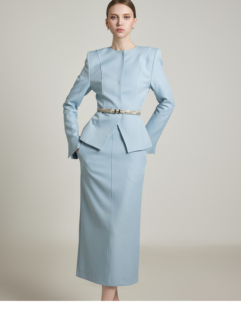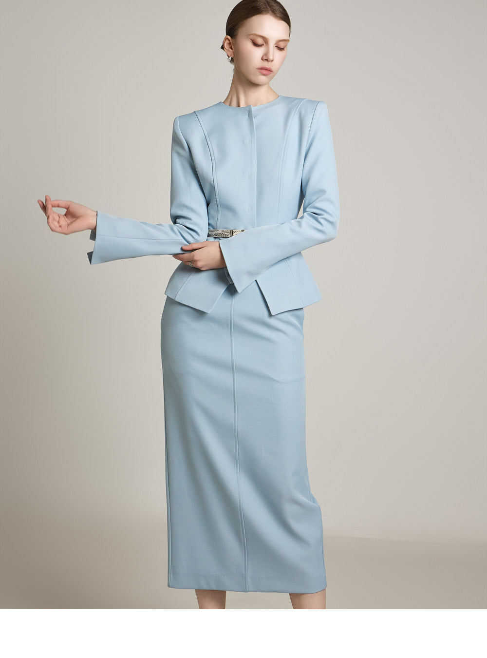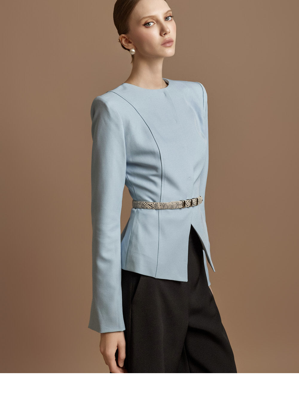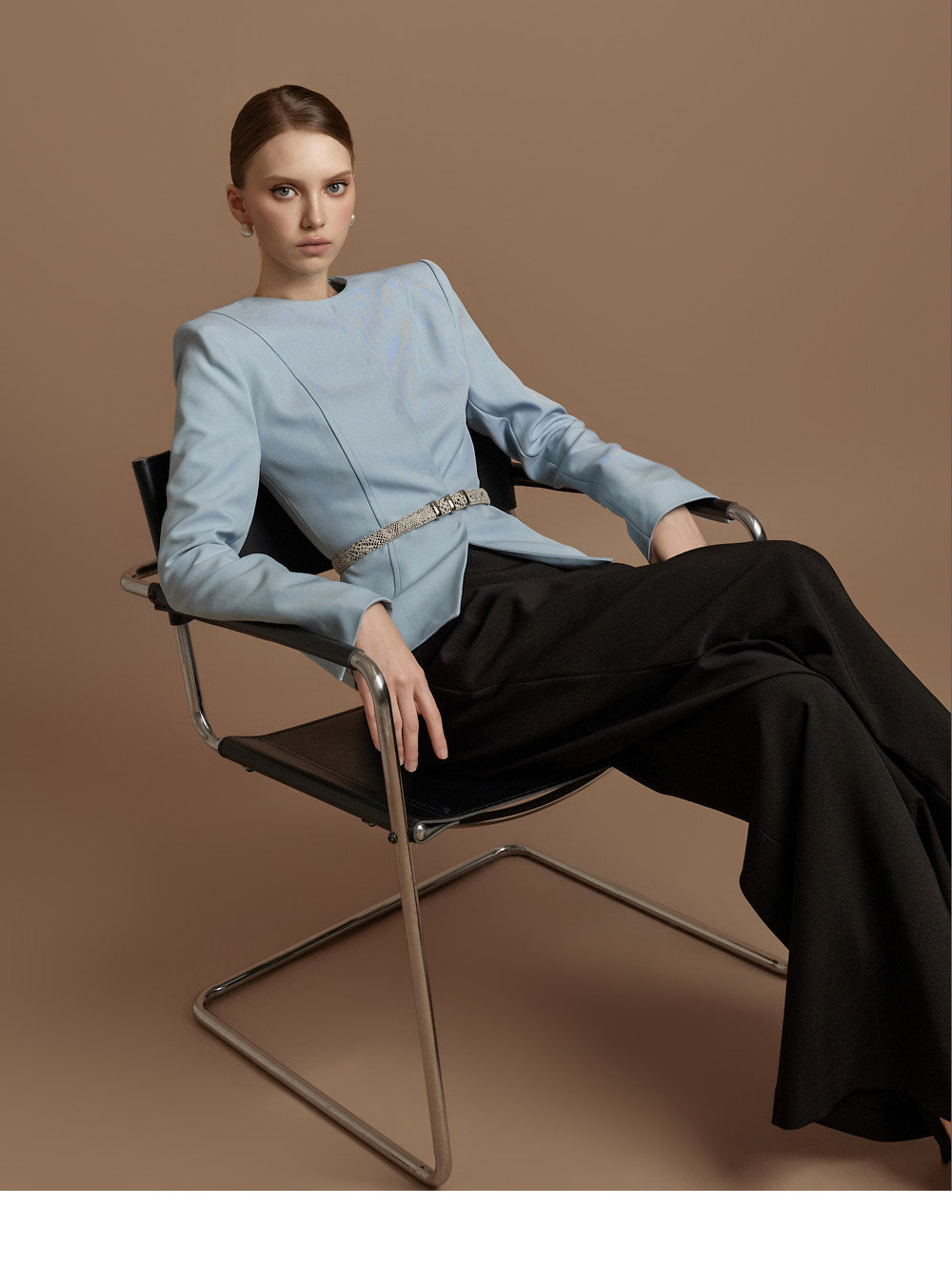 ノーカラーデザインが柔らかく洗練されたフェイスラインを演出し、