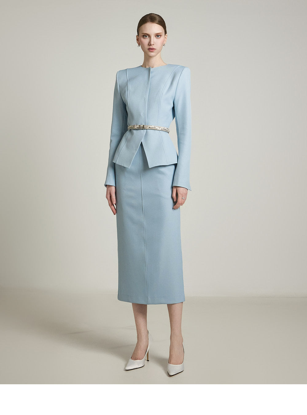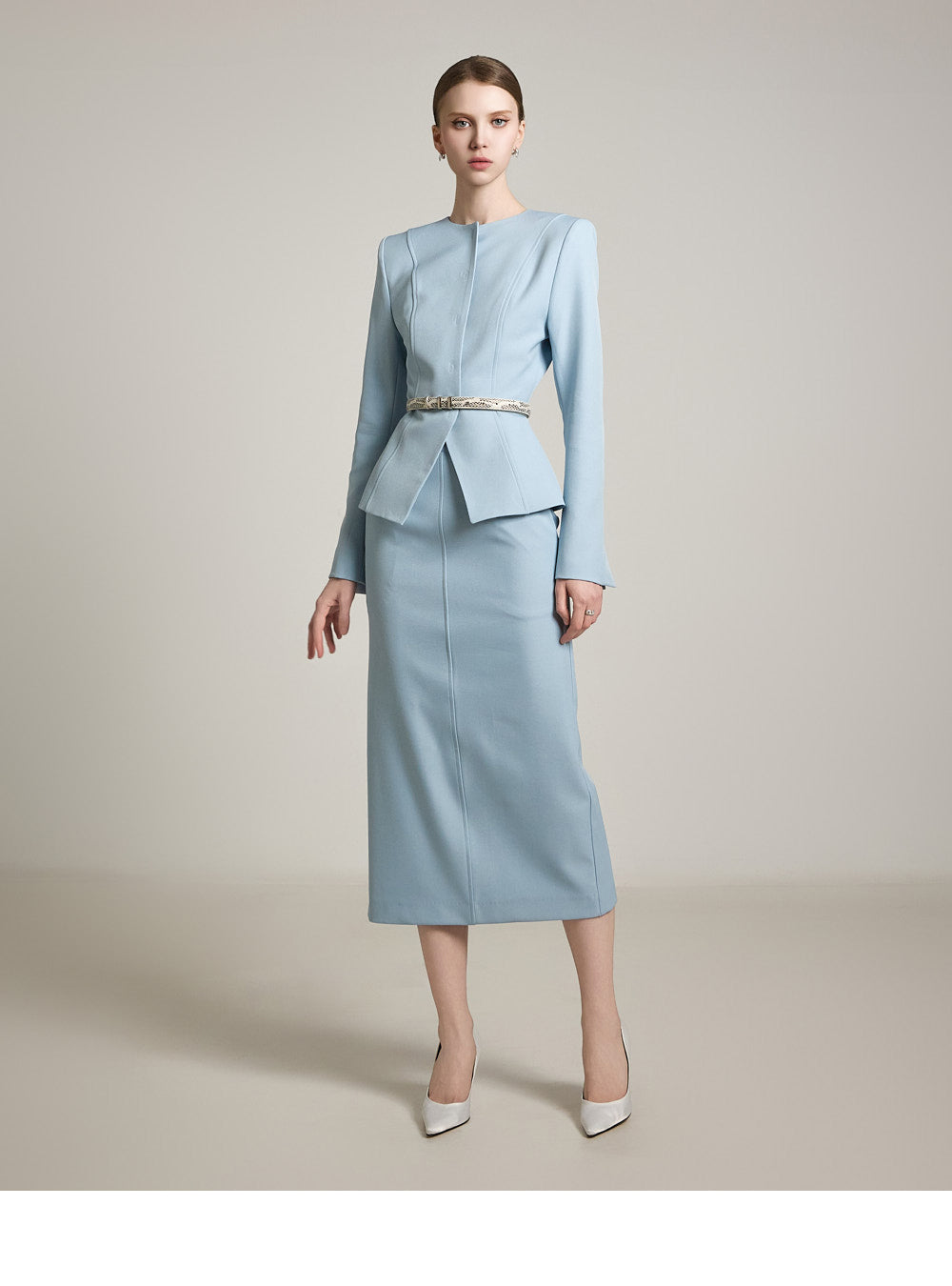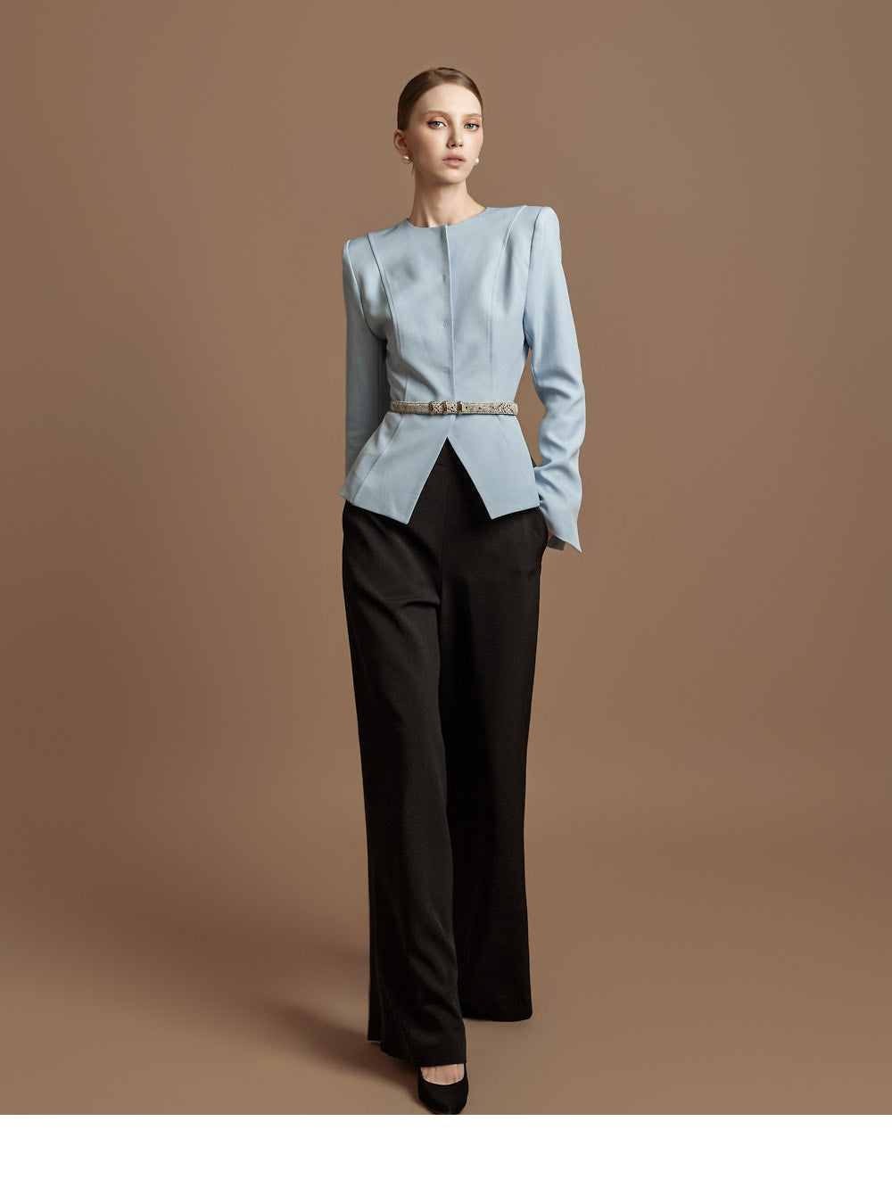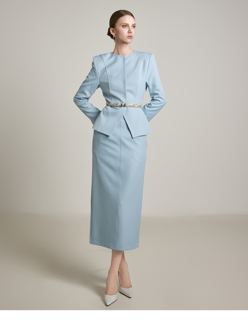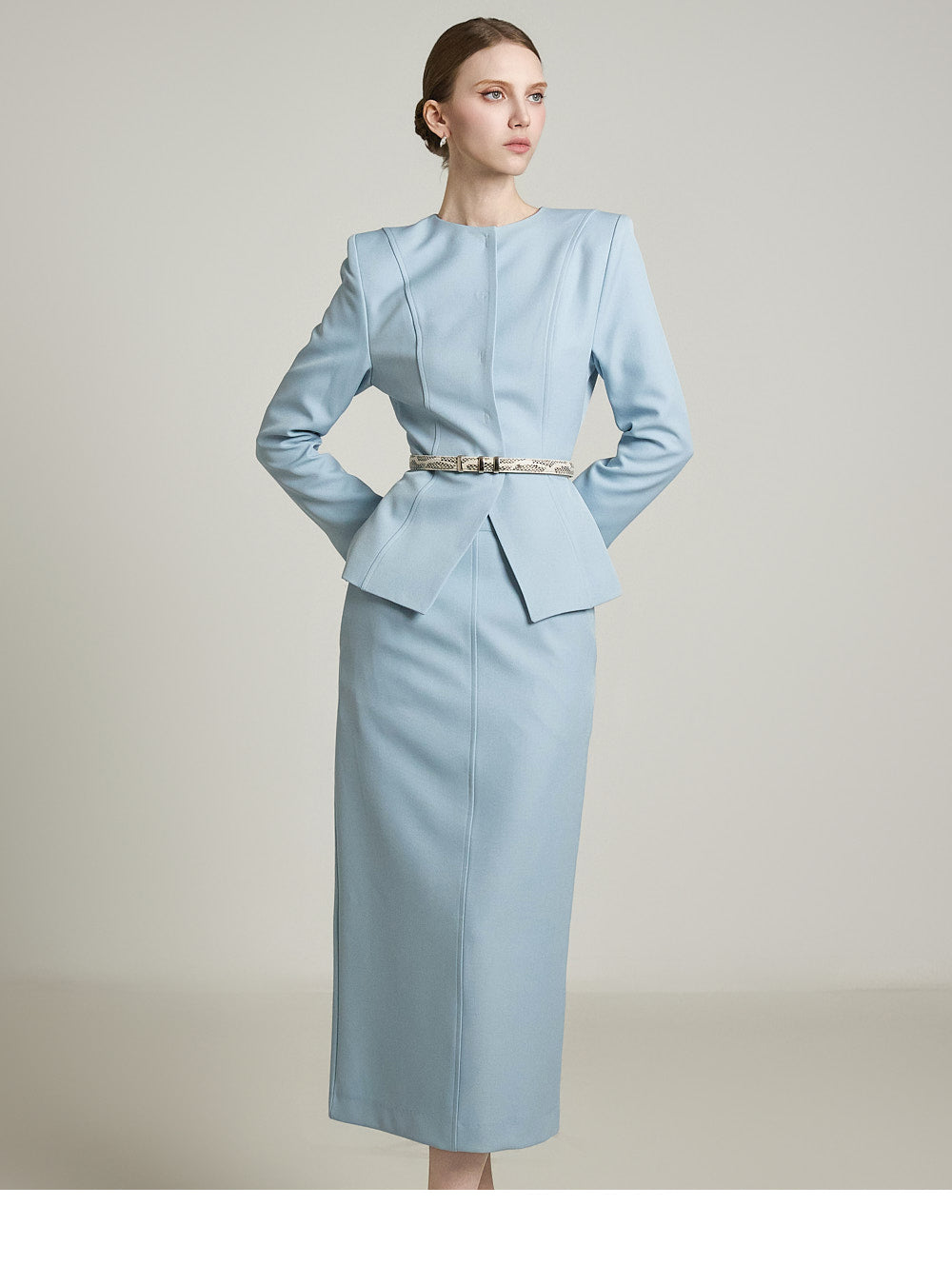 ノーカラーデザインが柔らかく洗練されたフェイスラインを演出し、