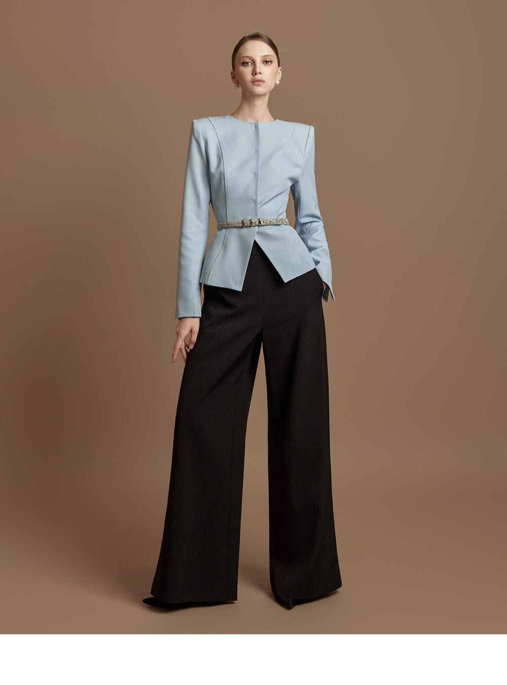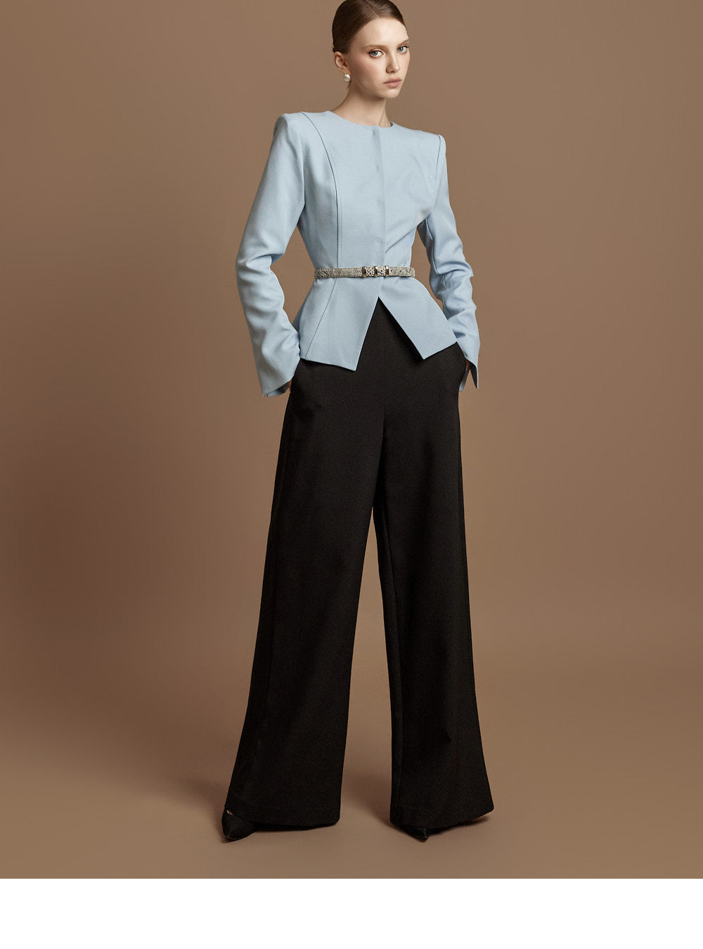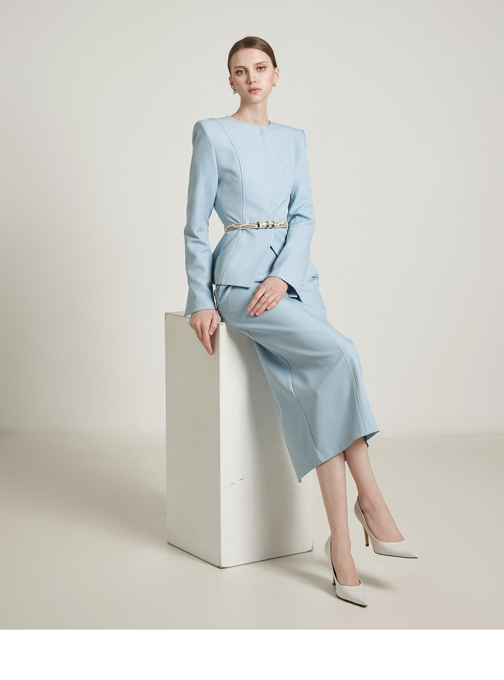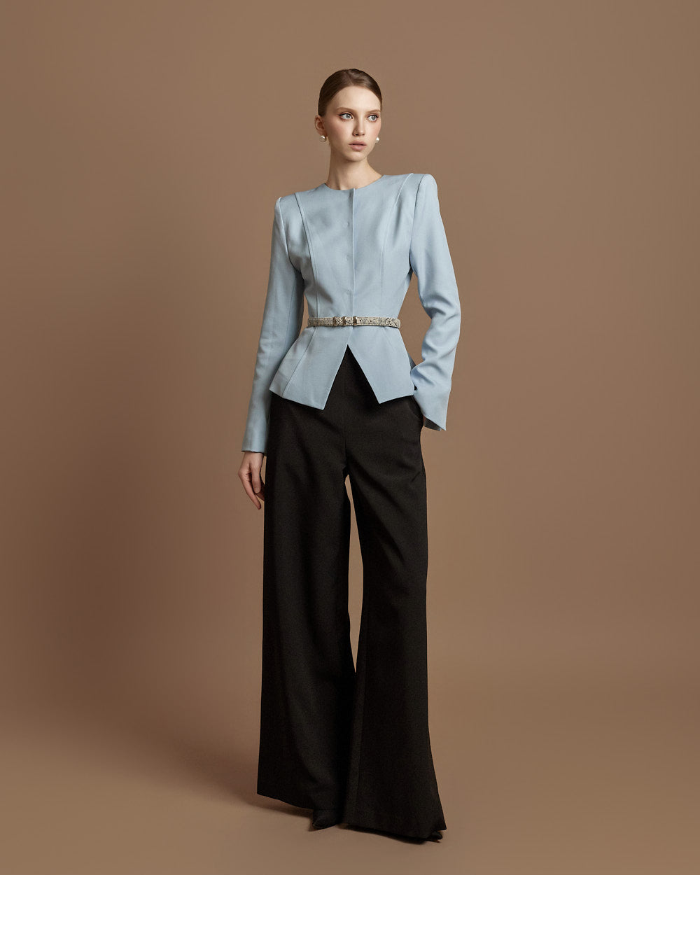 ノーカラーデザインが柔らかく洗練されたフェイスラインを演出し、
