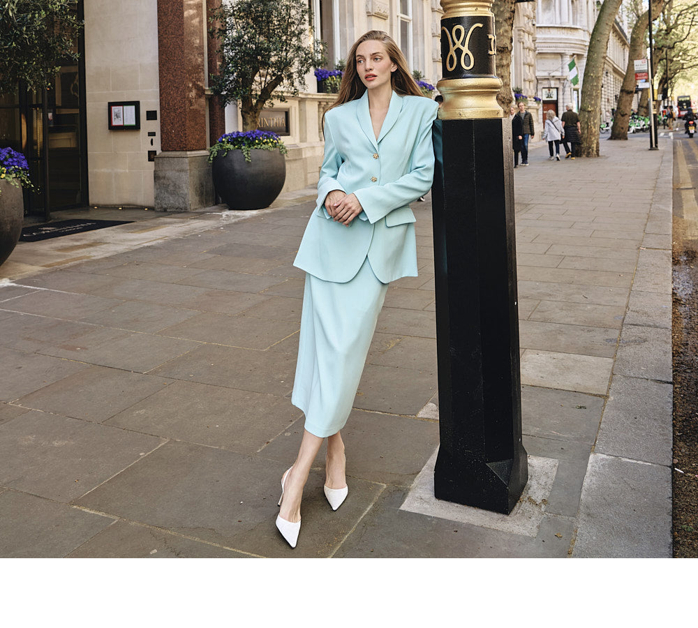くっきりとしたウエストラインが女性らしい印象を与えます。
