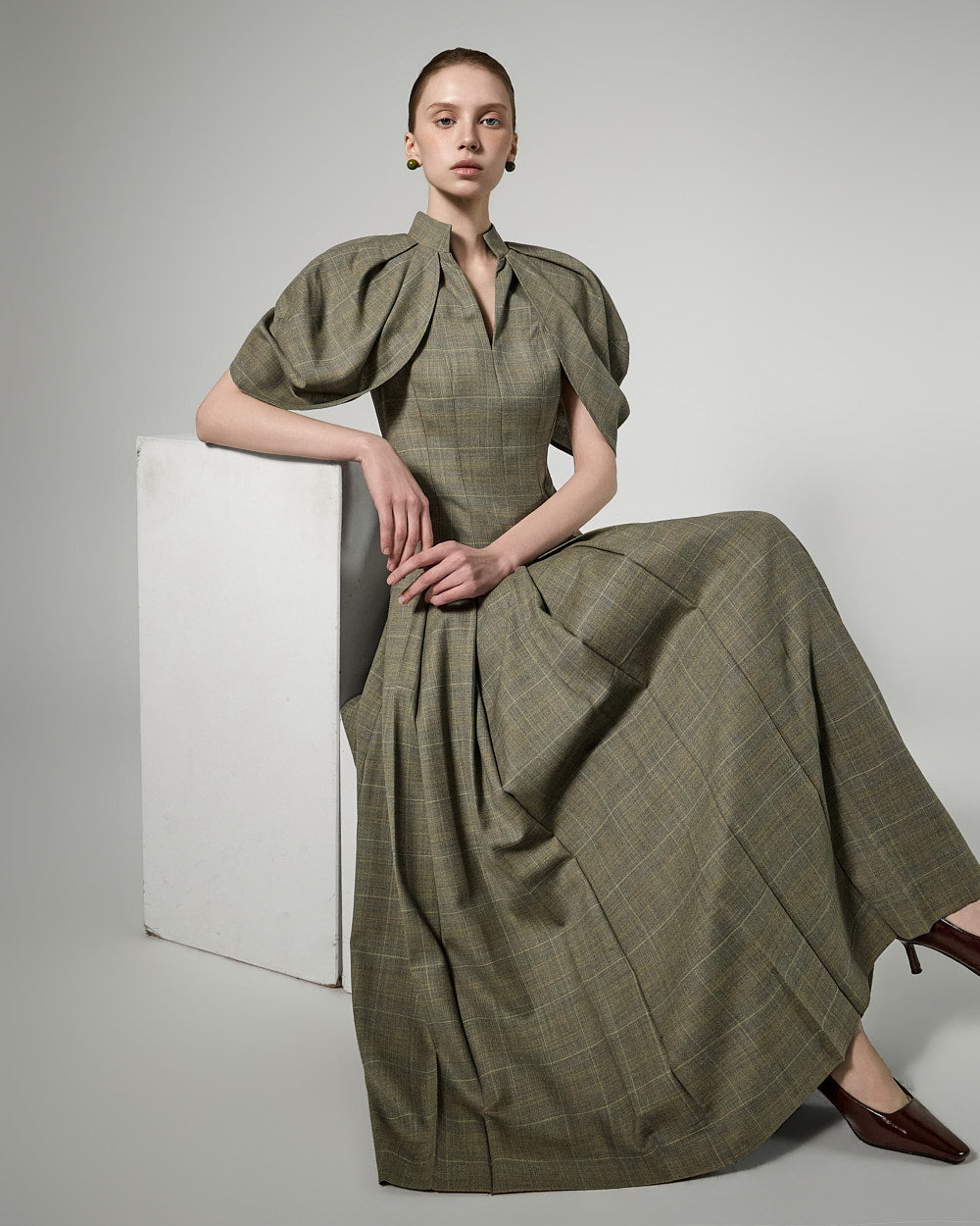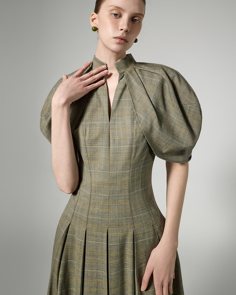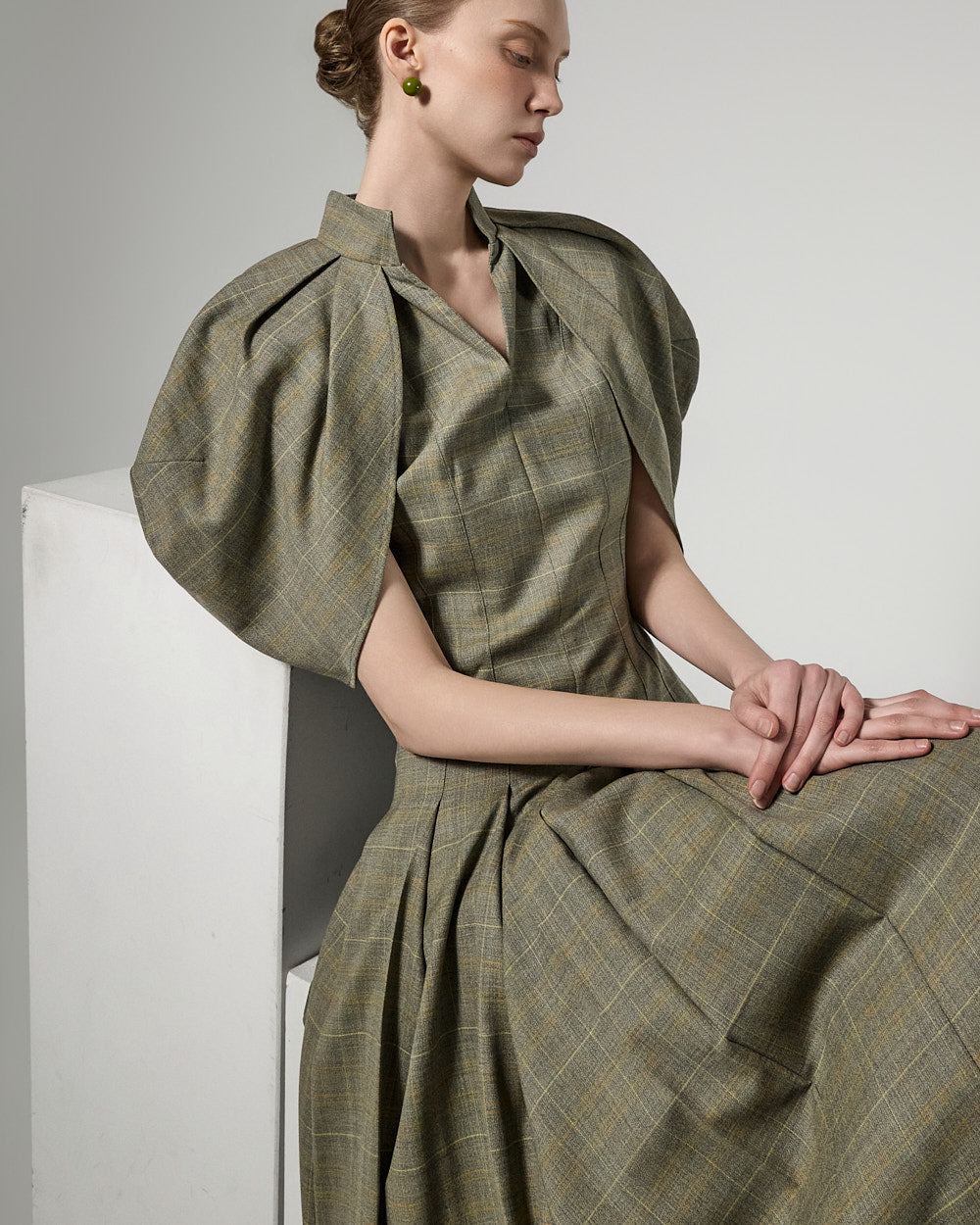 ボリュームのある袖のデザインがユニークな印象を与え、