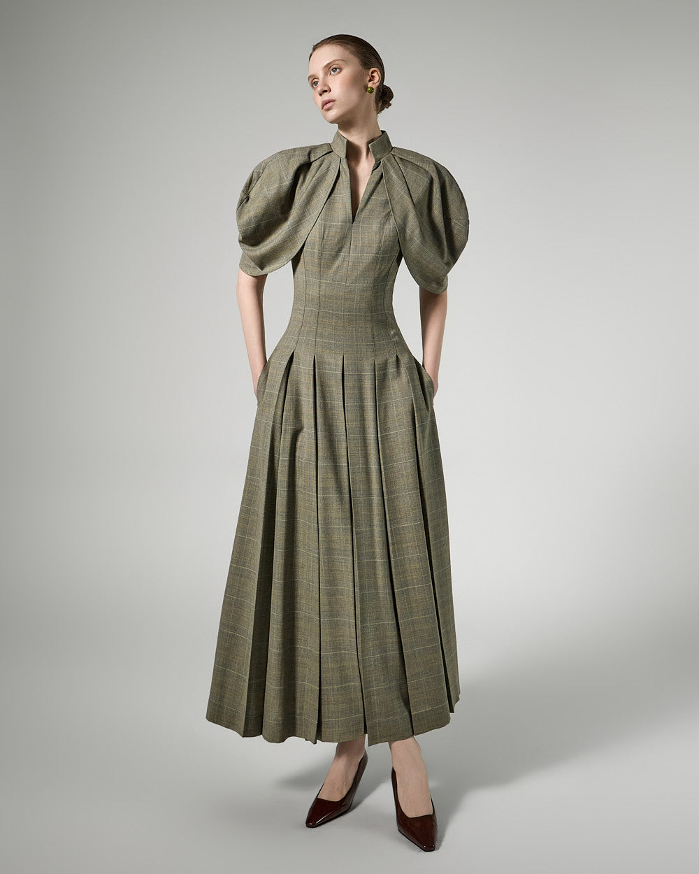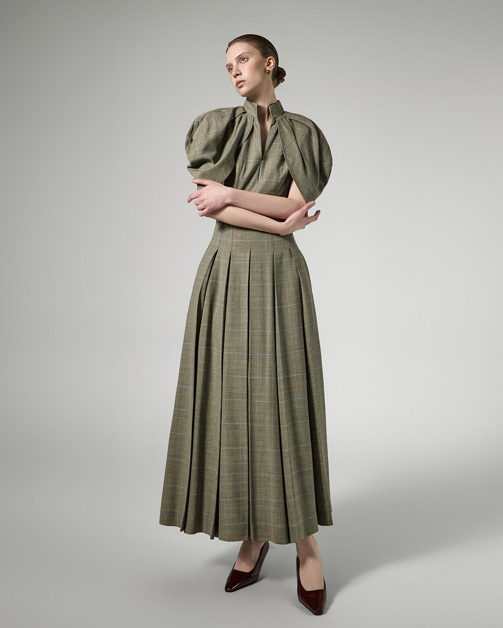 マキシ丈のプリーツ裾が体型をしっかりカバーします。