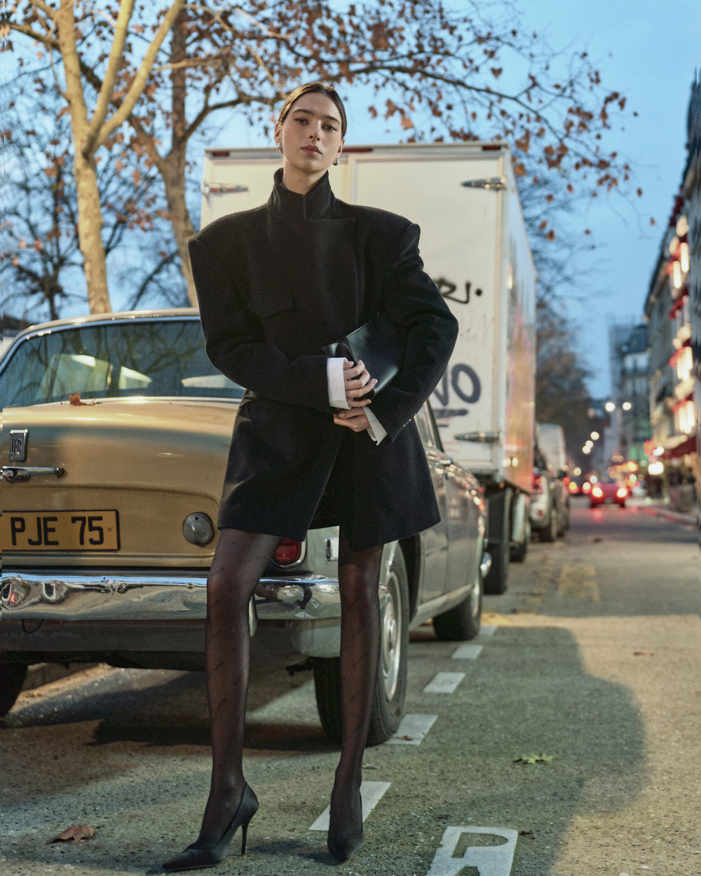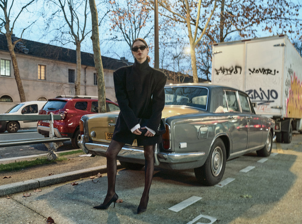 ボディラインに沿ったスリムフィットが女性らしい雰囲気を演出します。