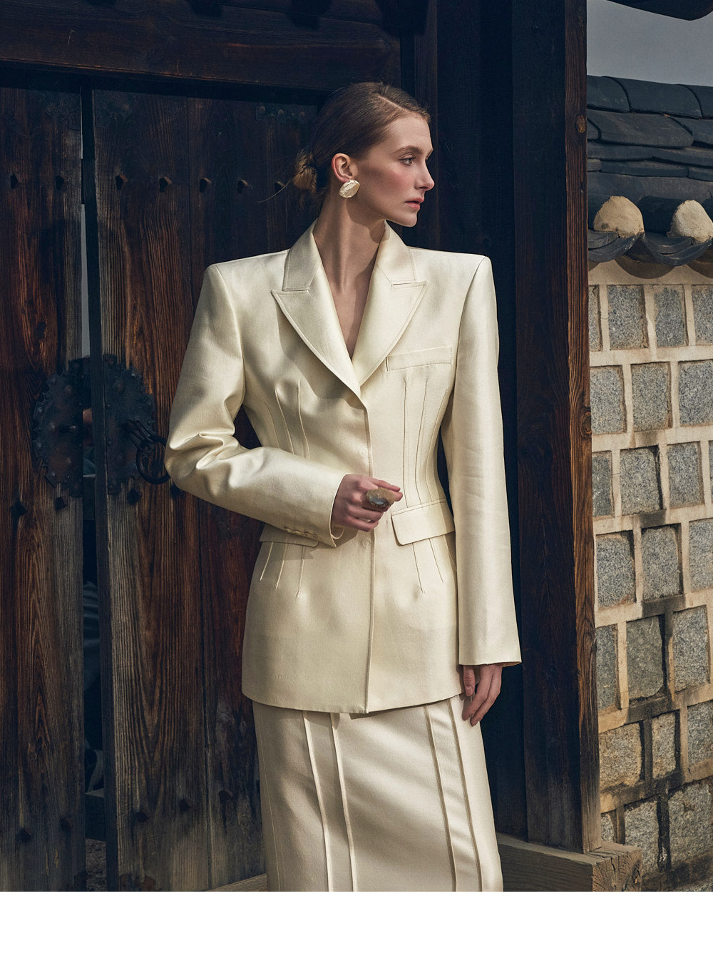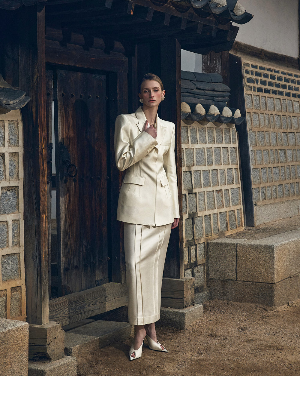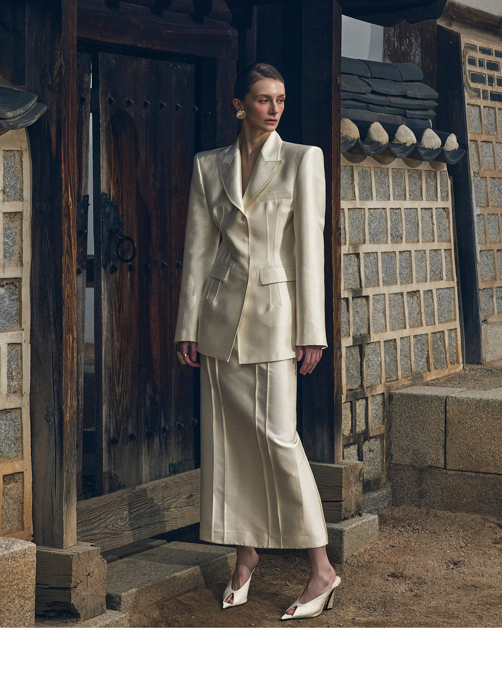 衿元のネックラインがフェイスラインを柔らかく上品に演出します。