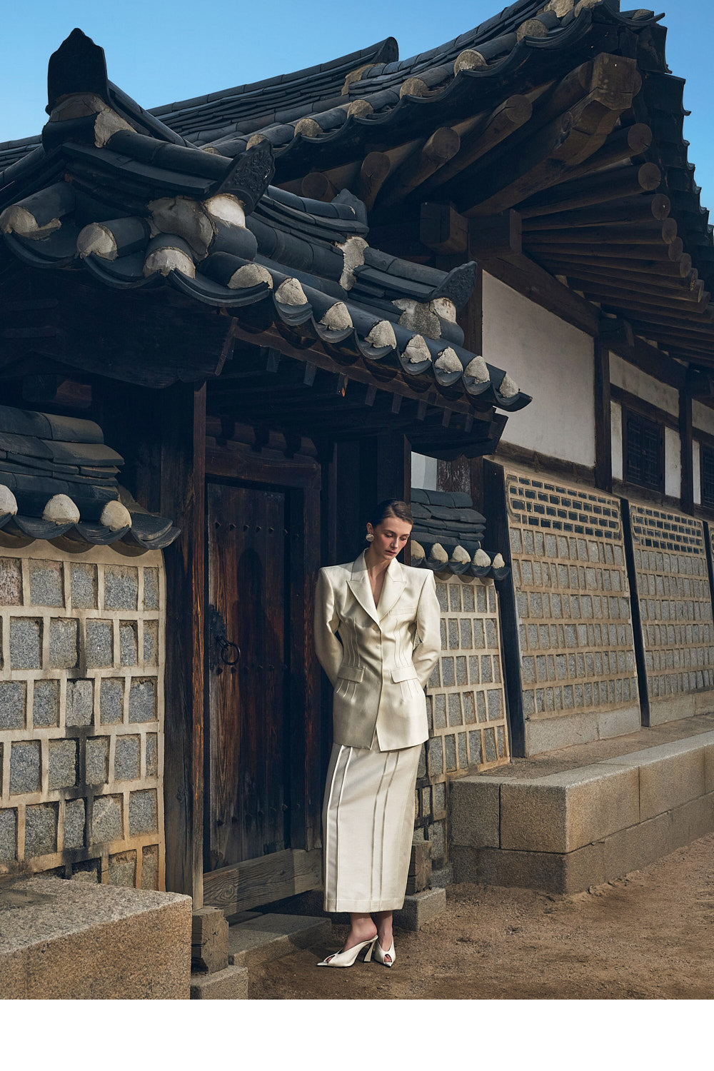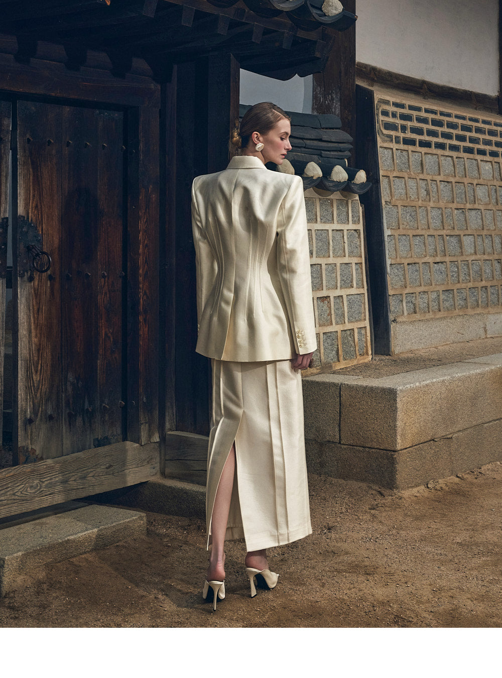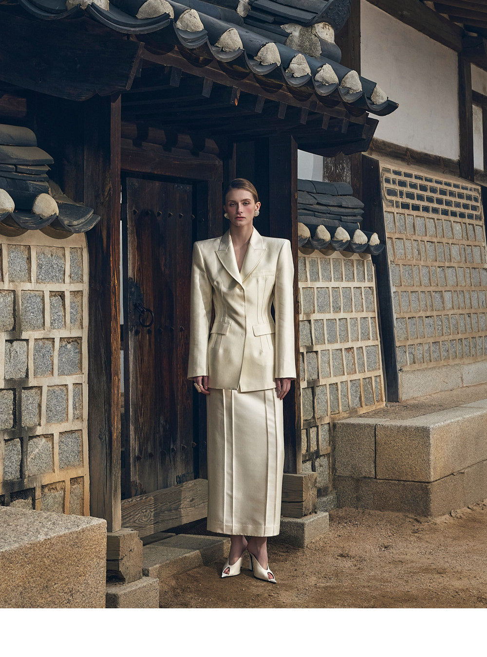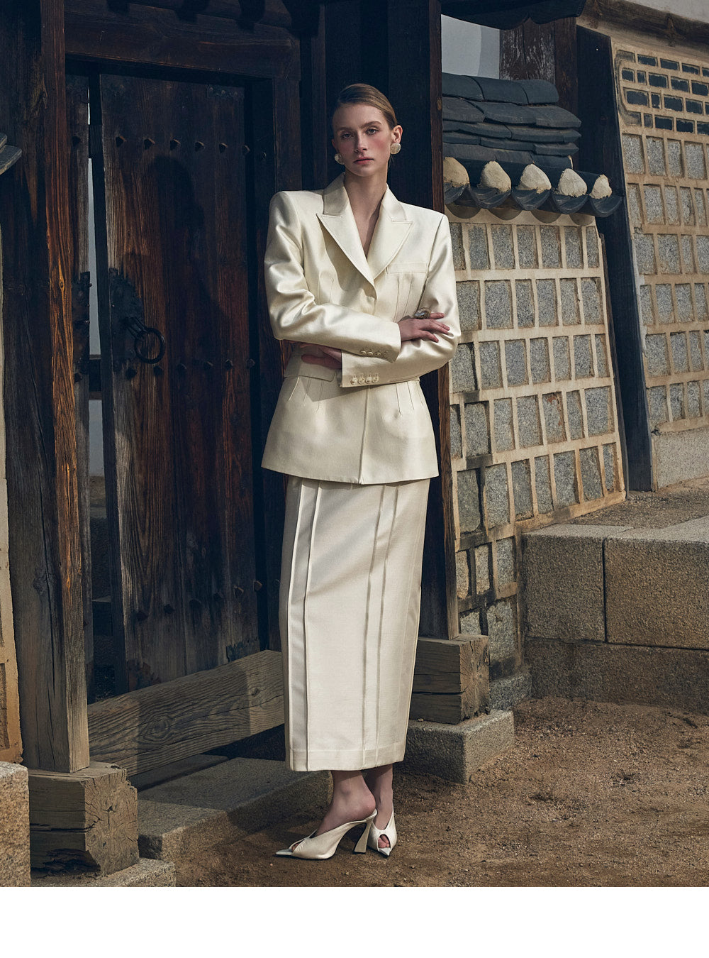 衿元のネックラインがフェイスラインを柔らかく上品に演出します。