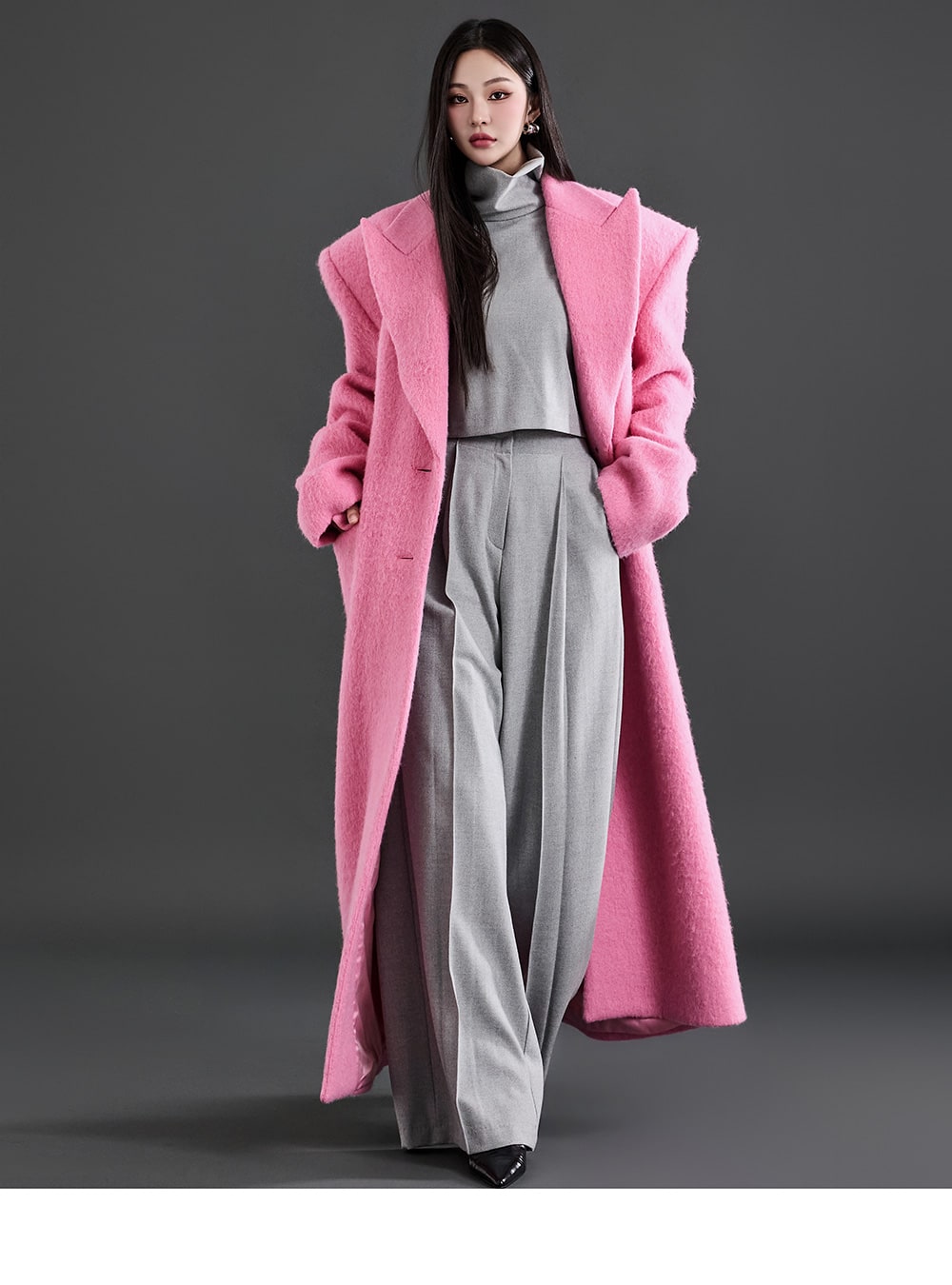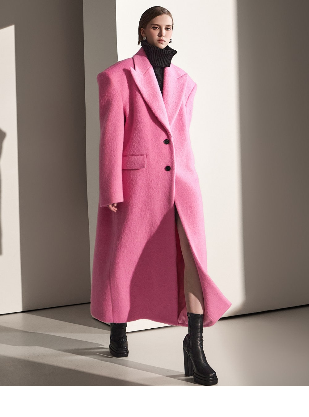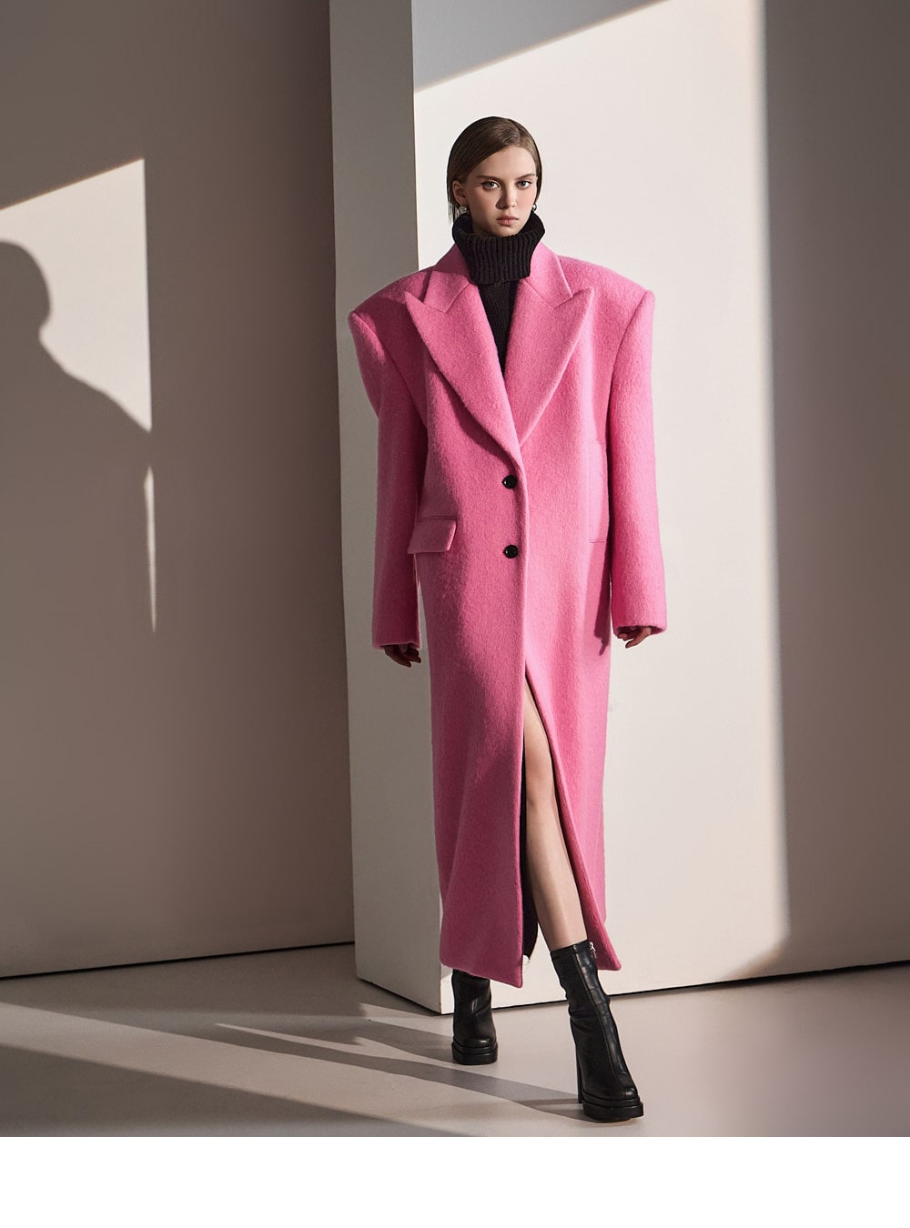 スタイリッシュなムード漂う上品なマキシコートが登場。
