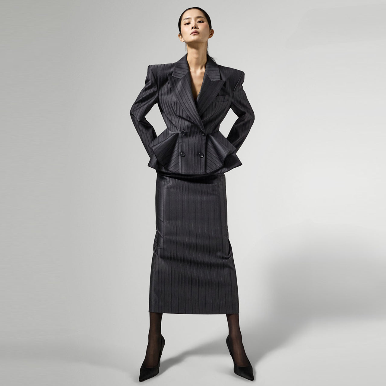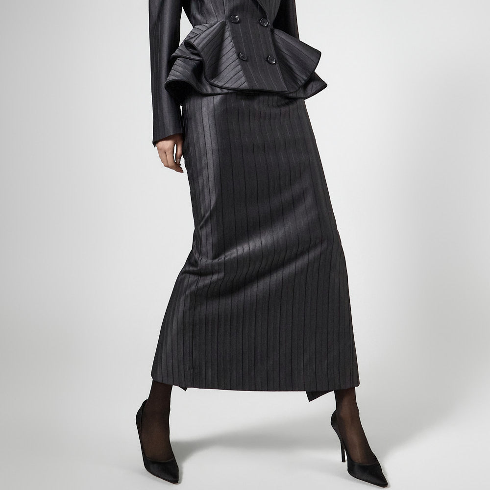 モードな雰囲気を漂わせるスタイリッシュなロングスカートです。