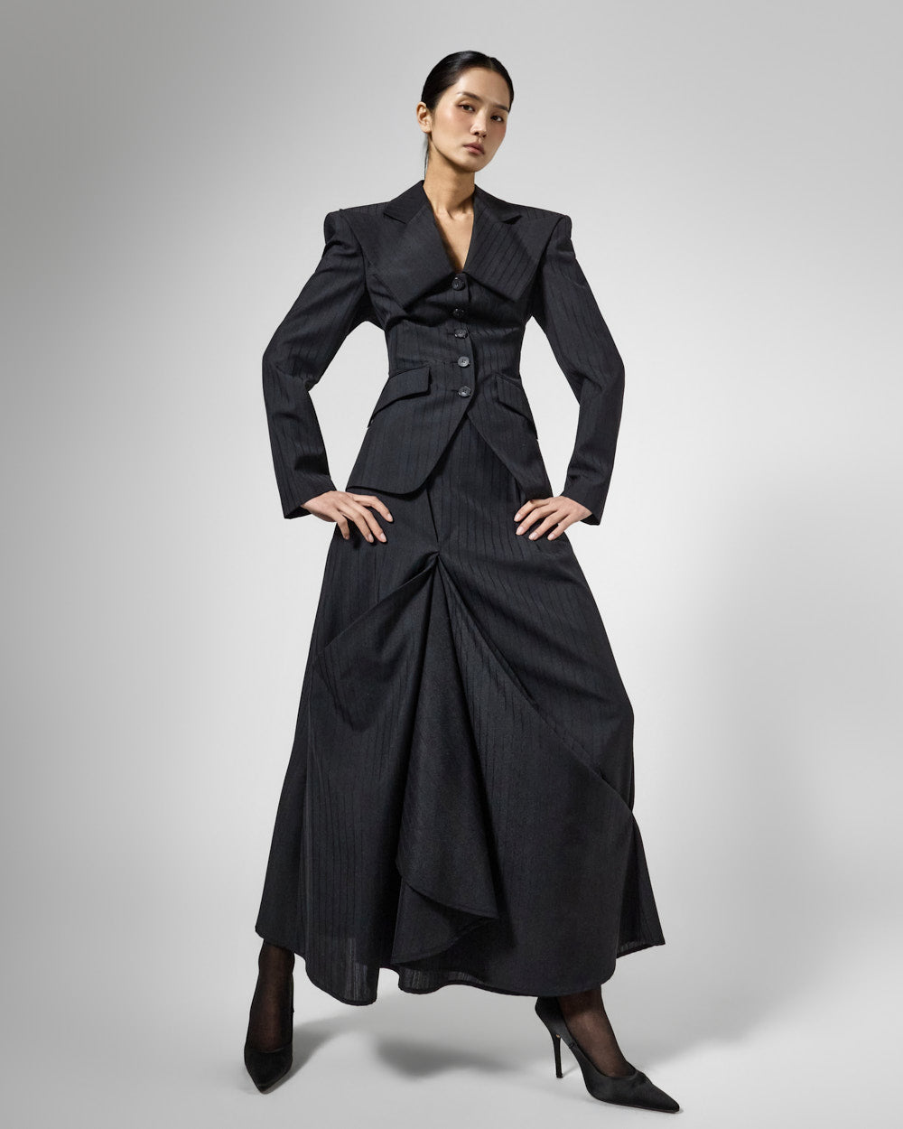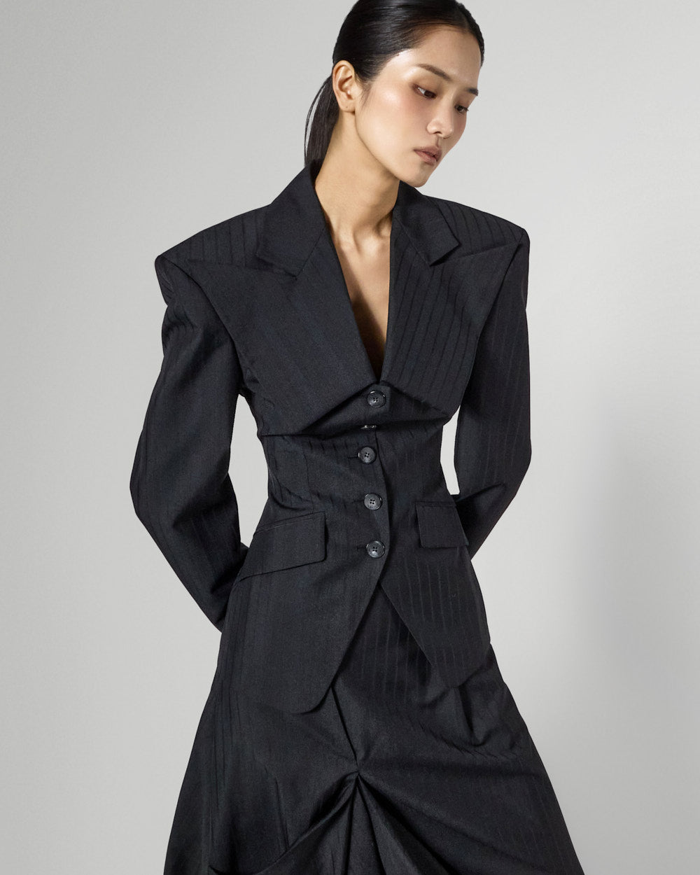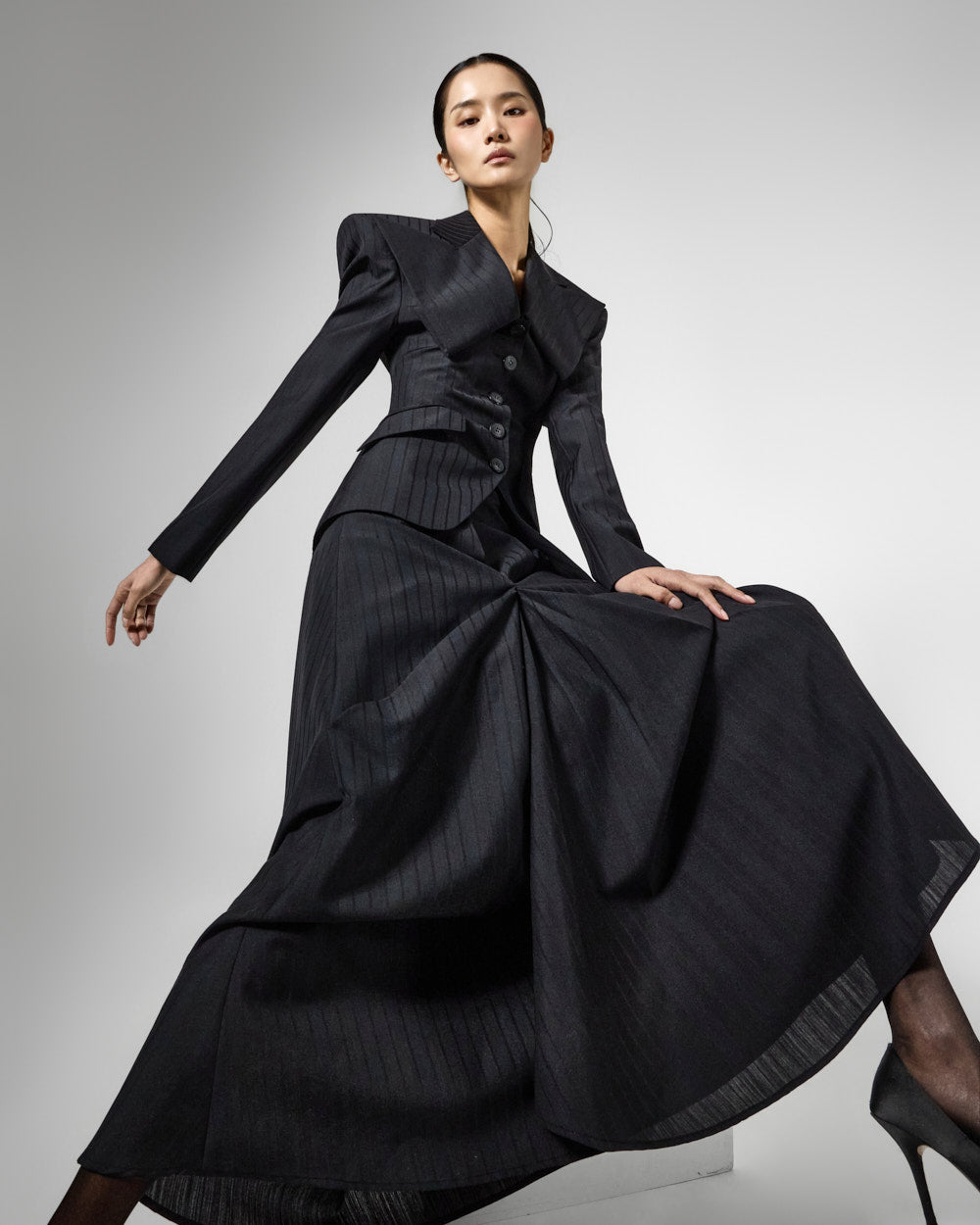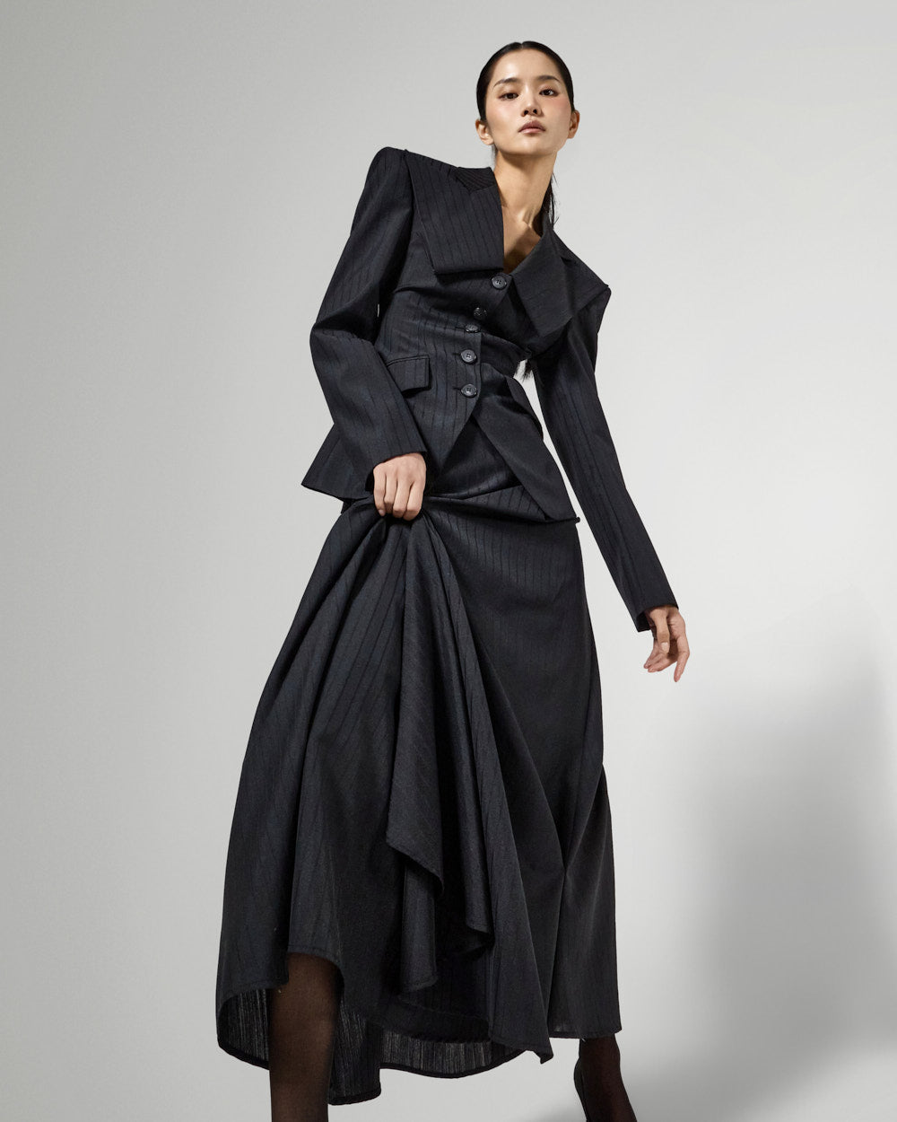 モデルは身長173cmで、ブラックのSサイズを着用しています。