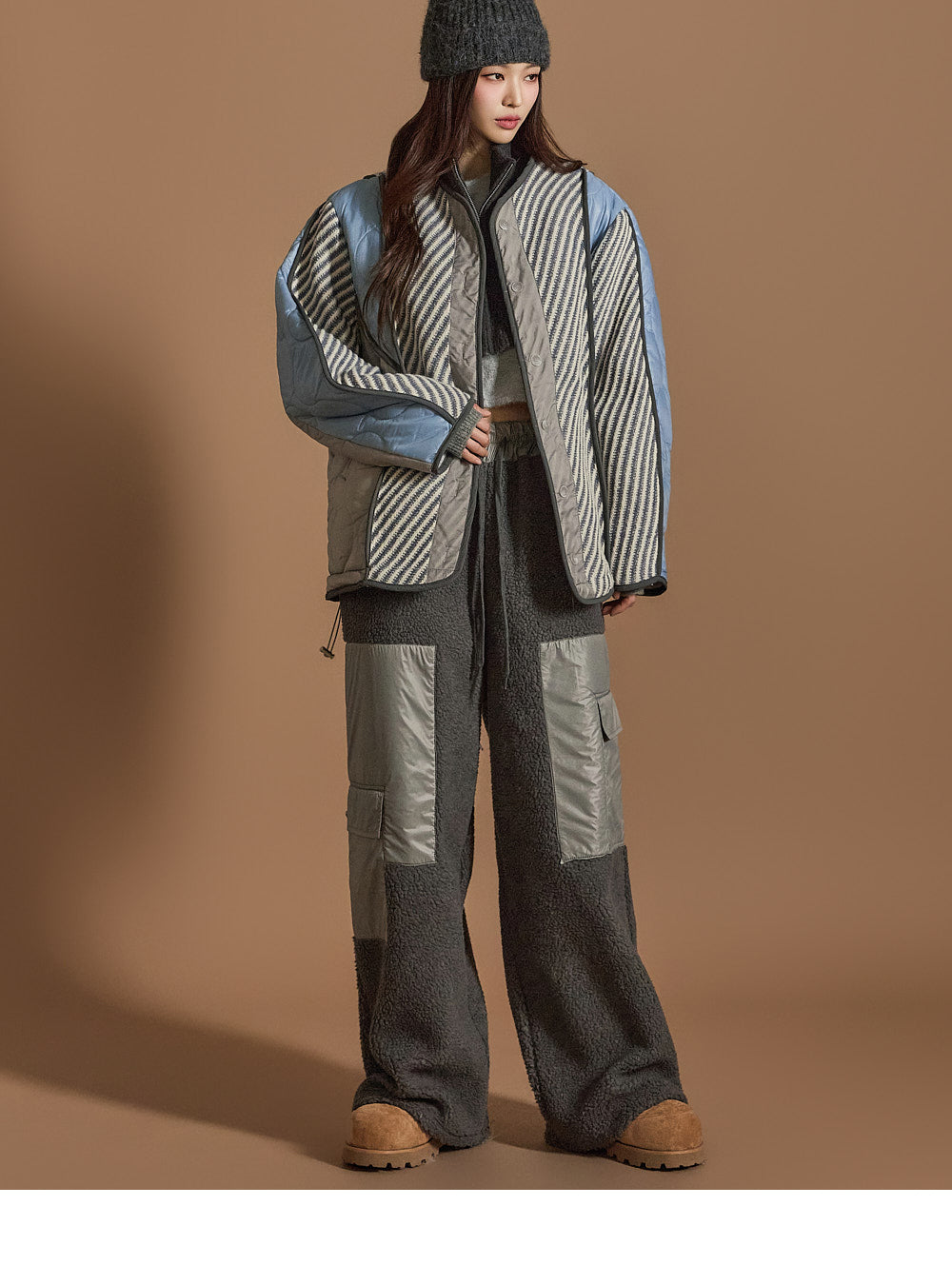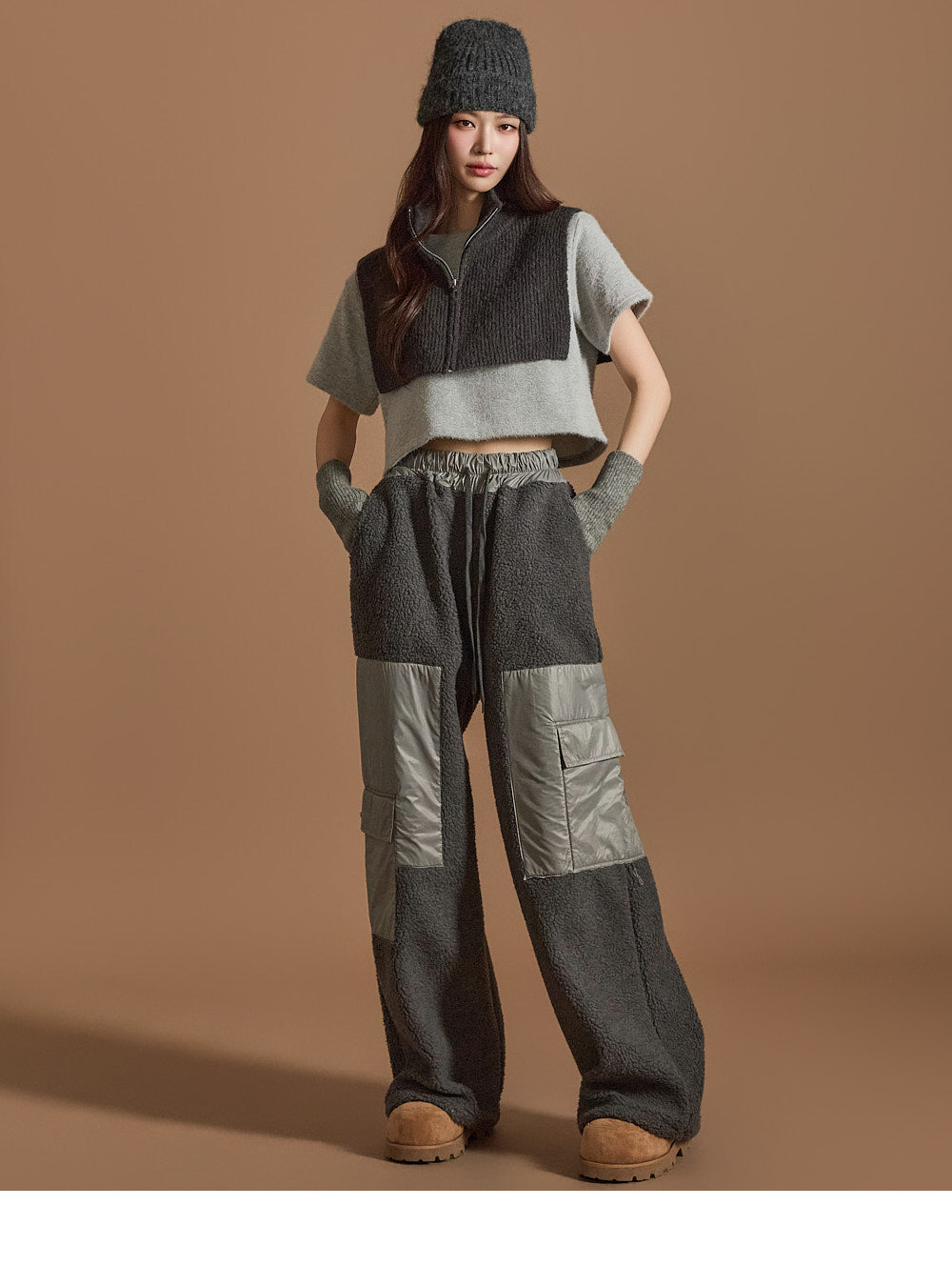 ナイロンのカラーブロックの大きなカーゴポケットがユニークなタッチを加えています。