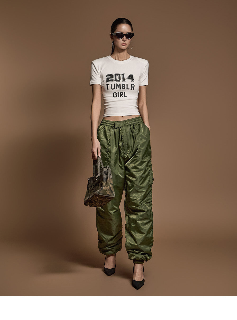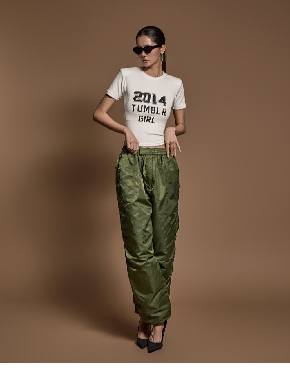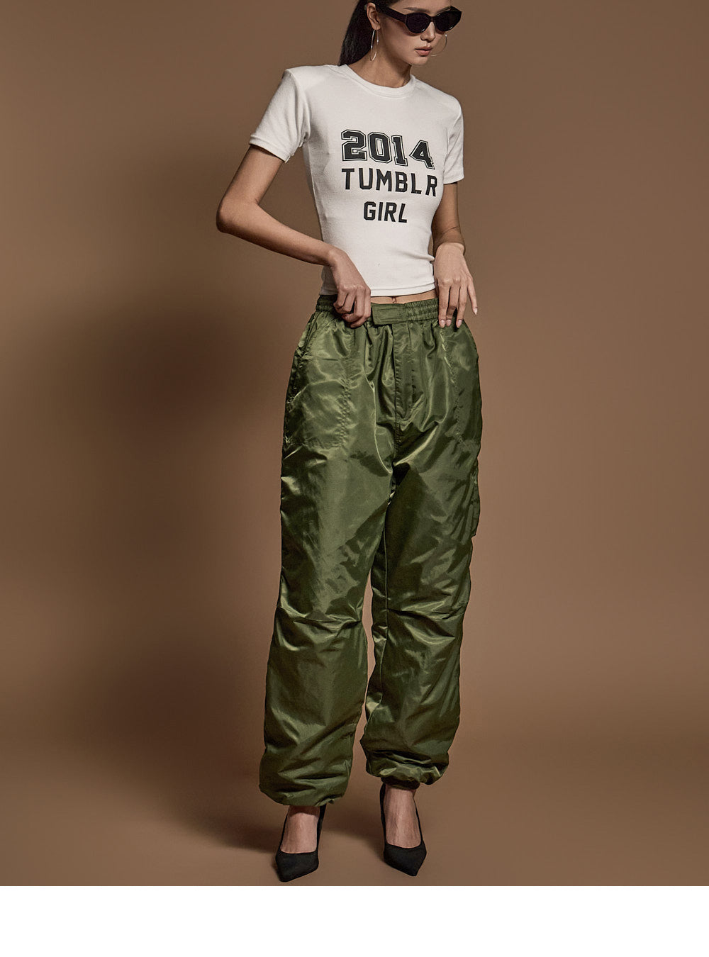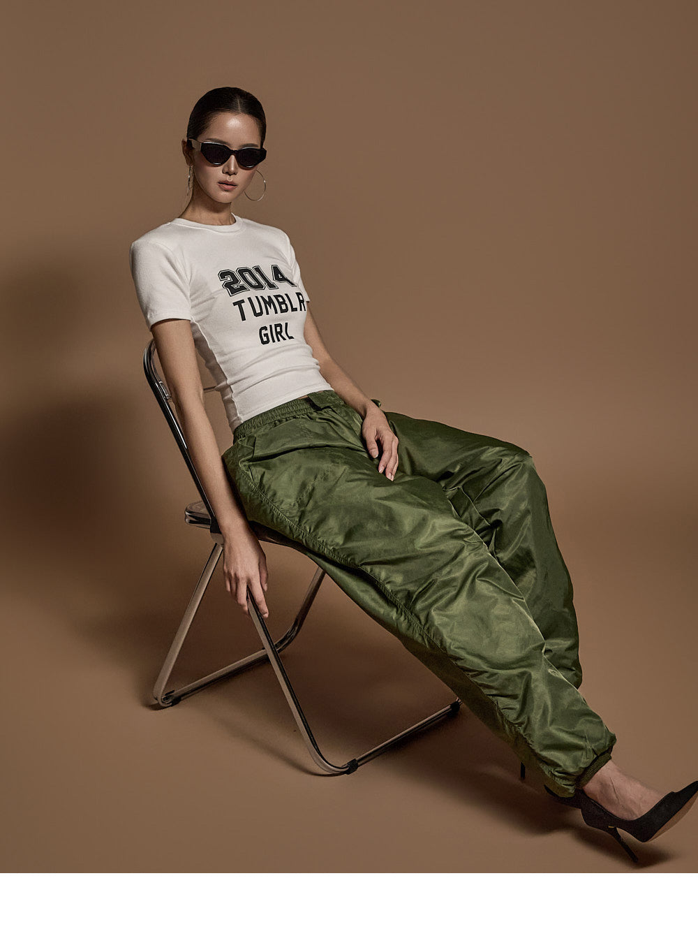 モデルは身長173cm、カーキのワンサイズを着用しています。