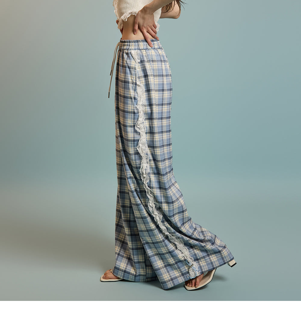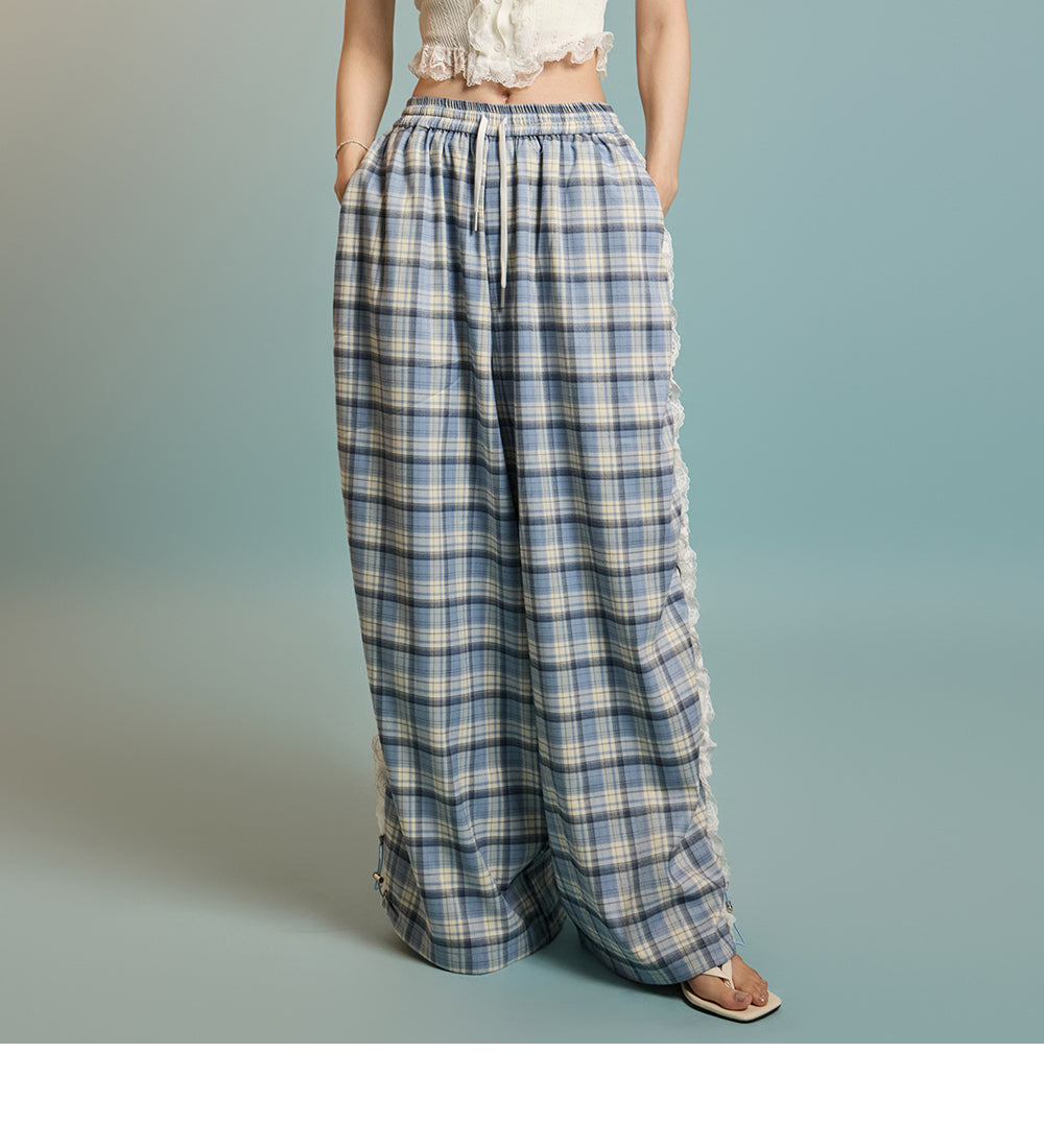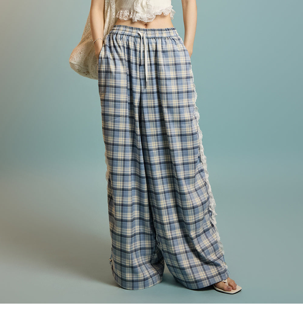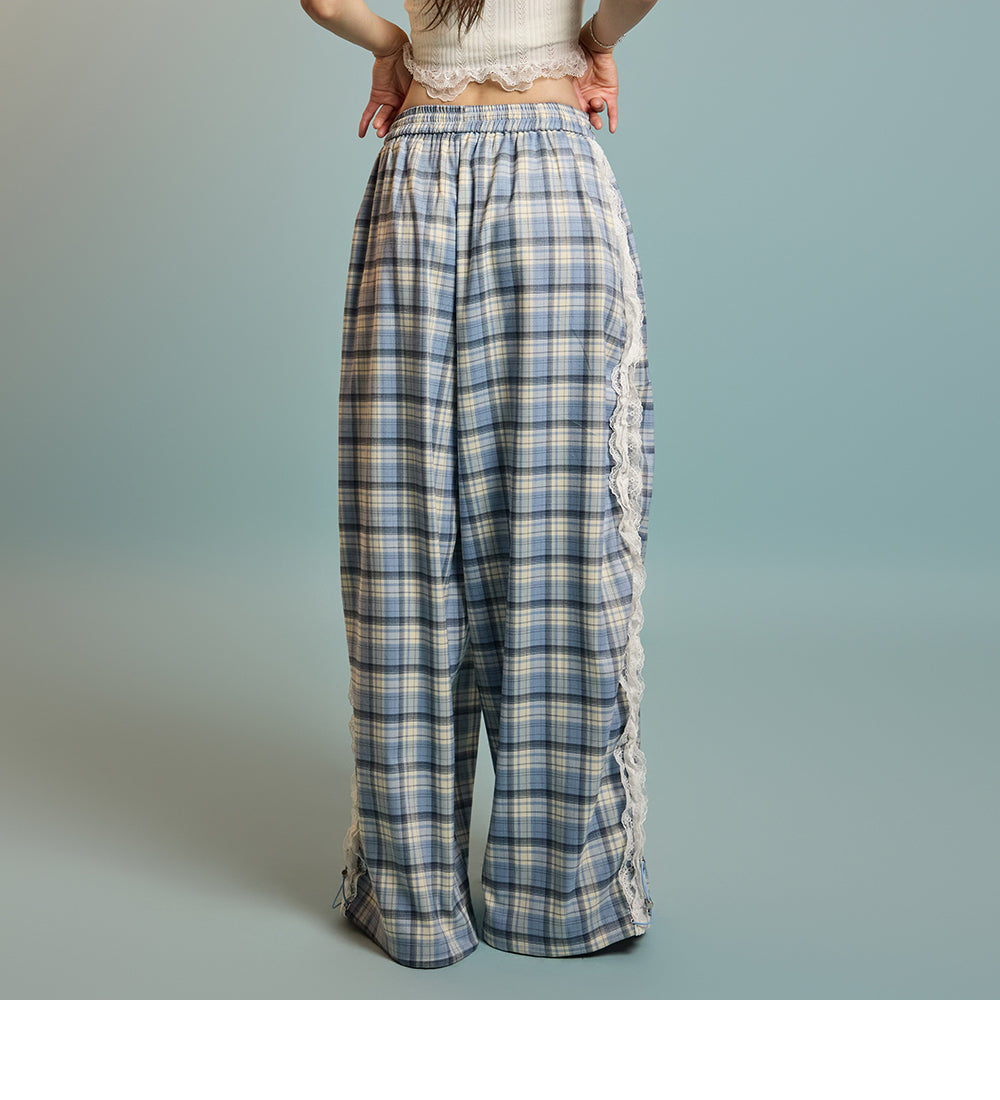 P3505 レースチェック柄パンツ