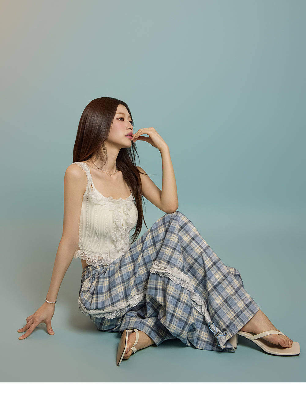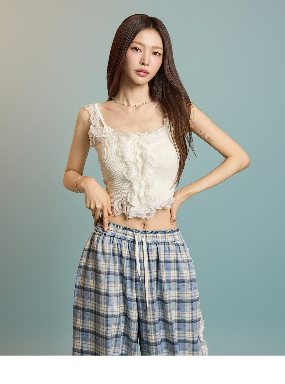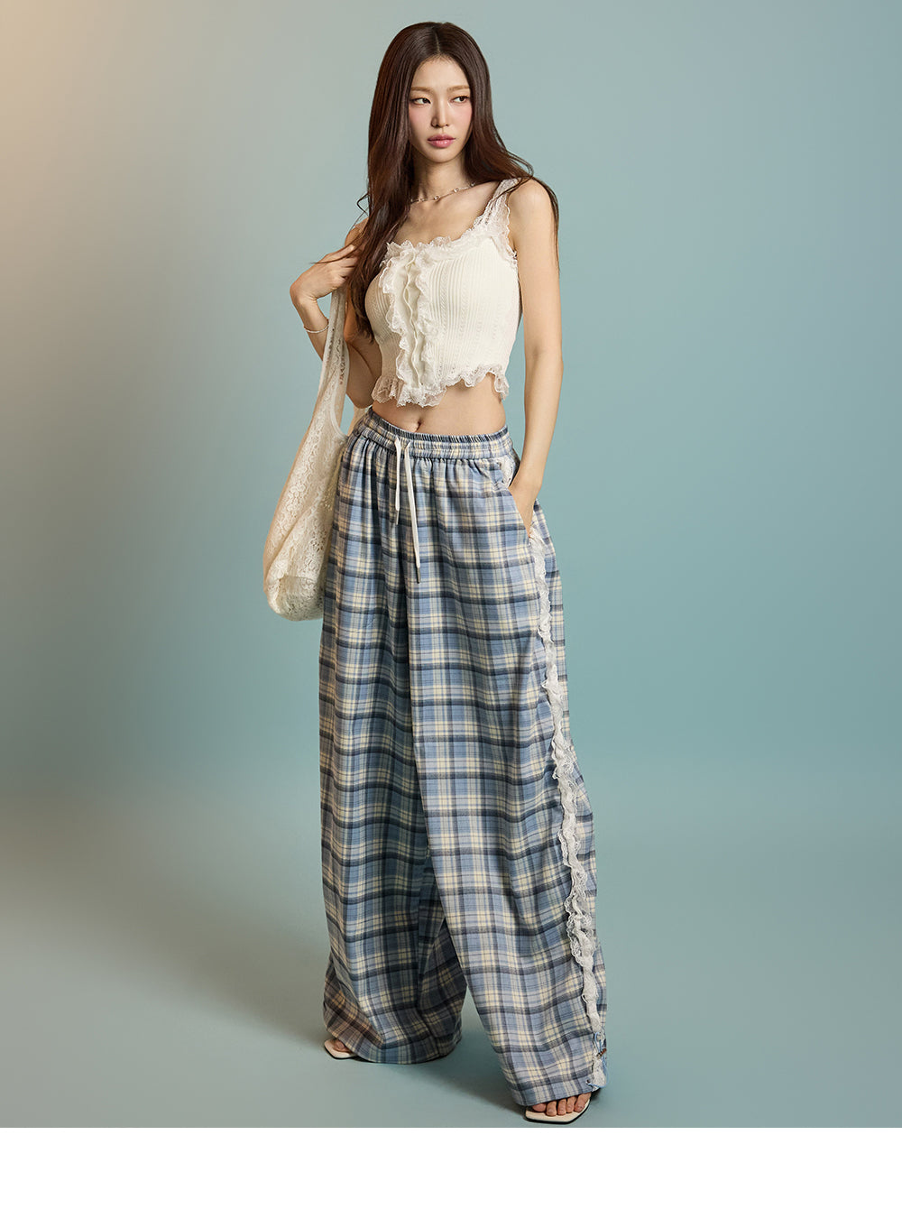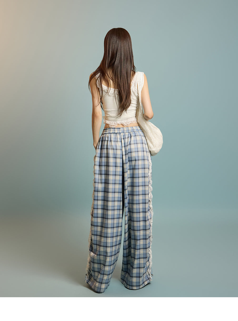 P3505 レースチェック柄パンツ