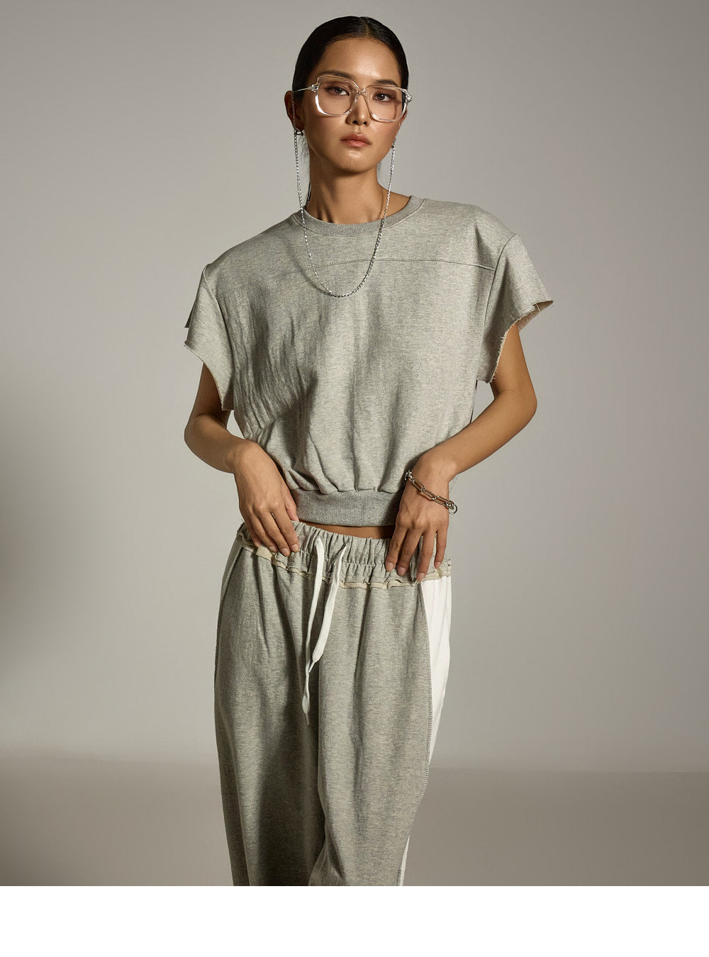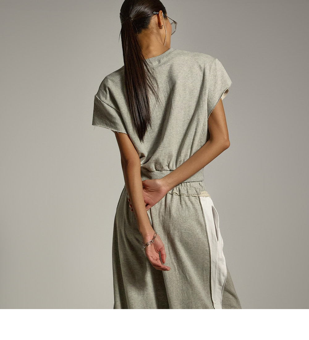 切りっぱなしの裾が、全体的な見た目に自然でリラックスした仕上がりを与えます。