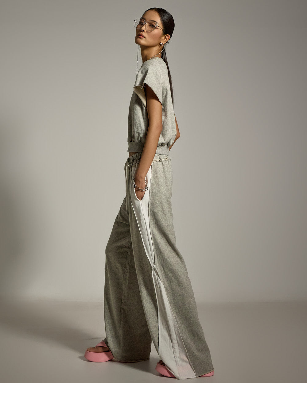 このカラーブロックのトレーニングパンツはカジュアルでスポーティな雰囲気が特徴で、