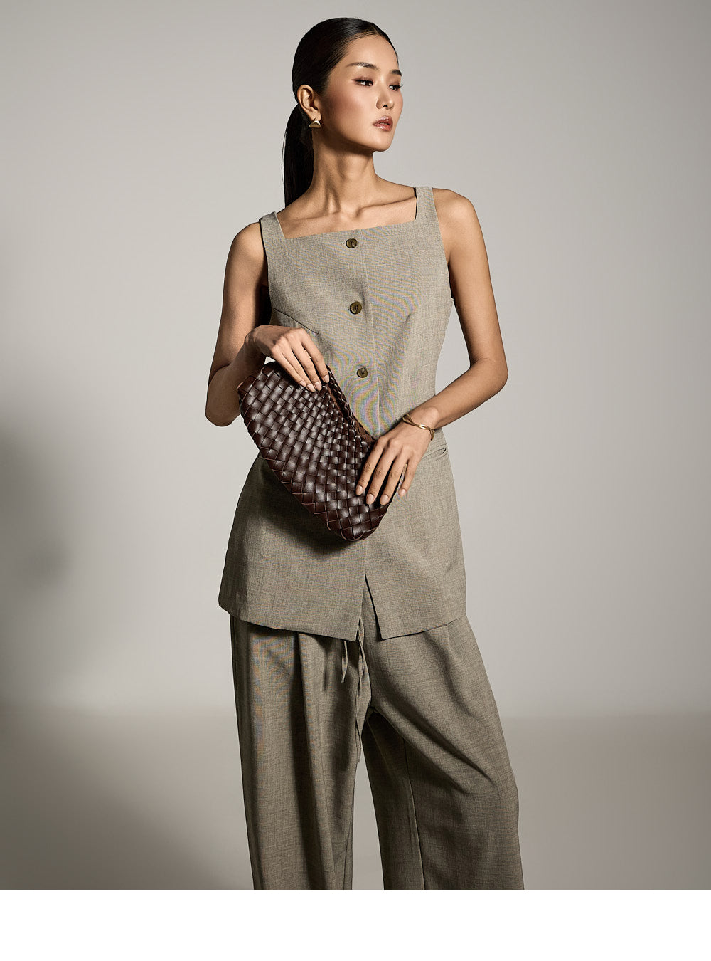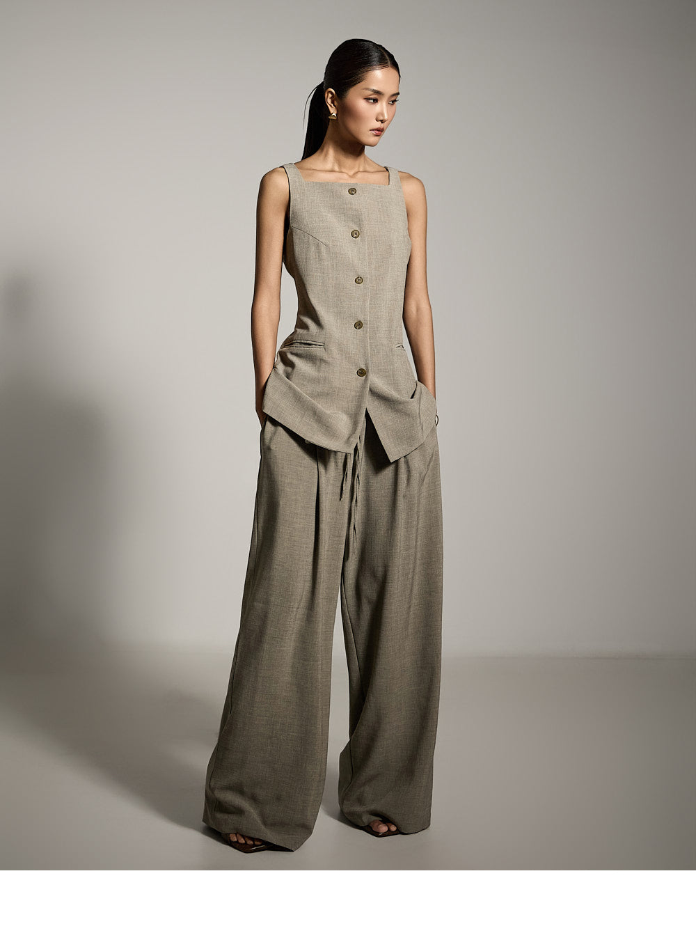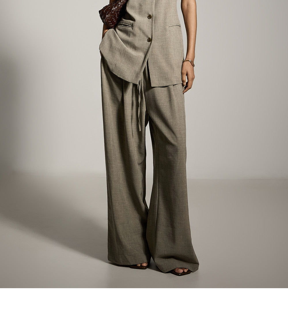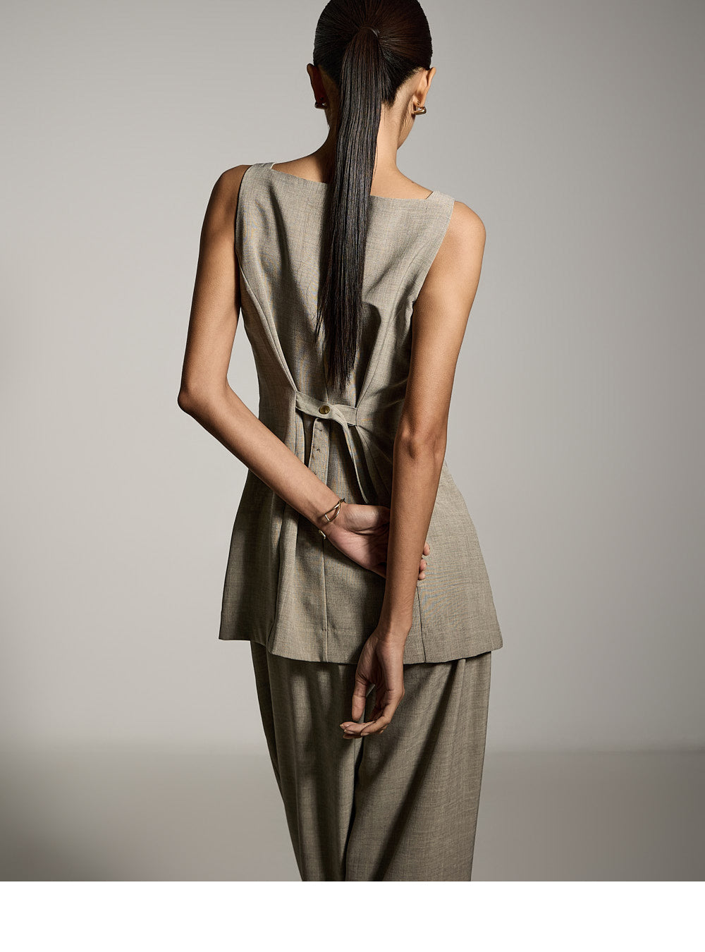 フロントのピンタックがシルエットに洗練された雰囲気を添えています。