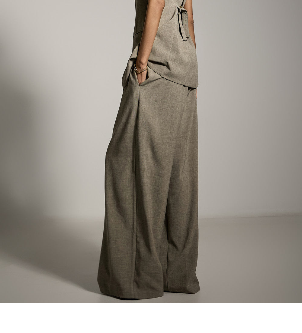 ゆったりとしたワイドレッグカットで、体型を美しく見せ、動きやすさも抜群です。