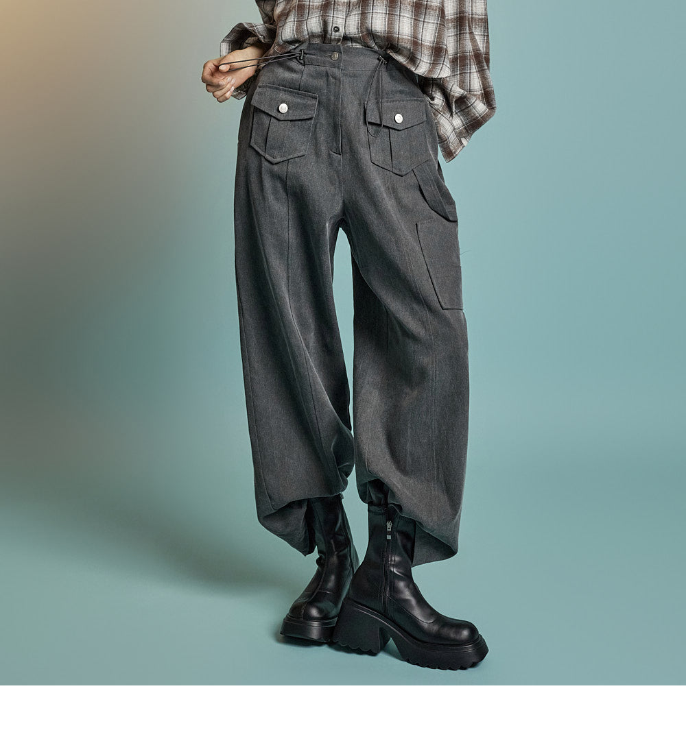 while a one-side strap detail paired with cargo pockets adds a fashionable touch.