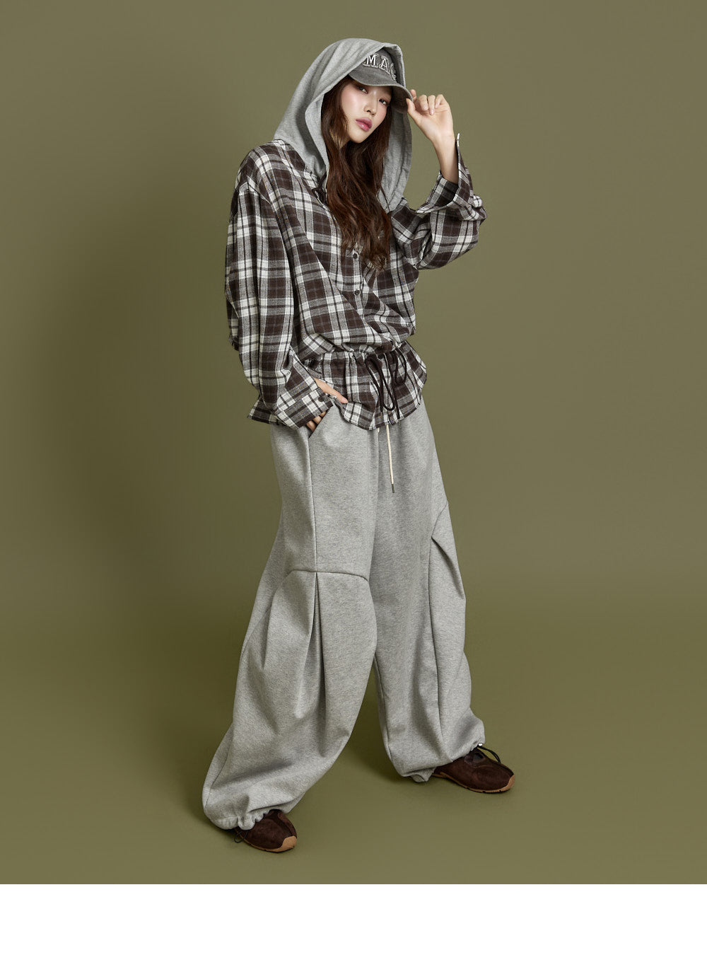 The wide, bowl-shaped fit creates a relaxed silhouette,