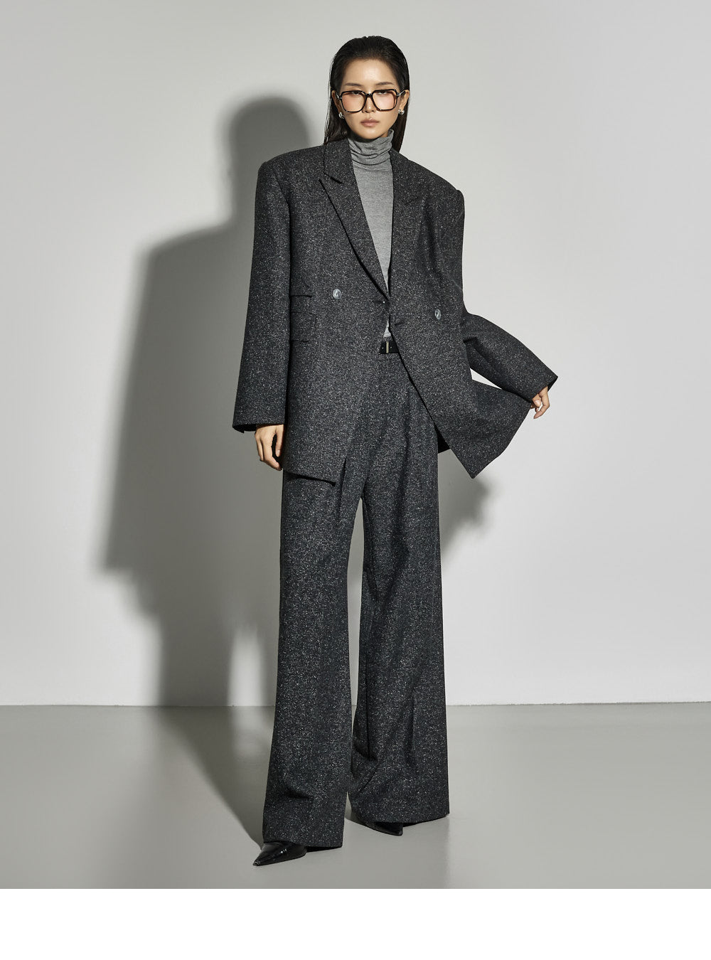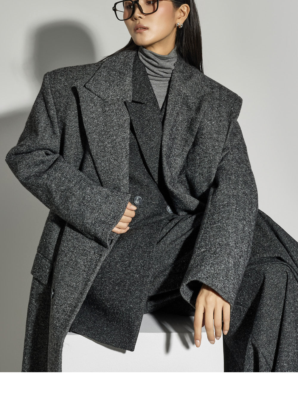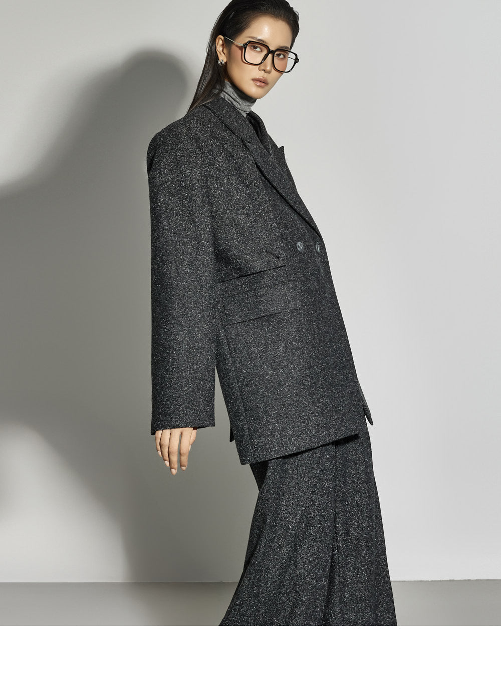 The overall design emphasizes a mannish sensibility, with a modern yet formal feel,