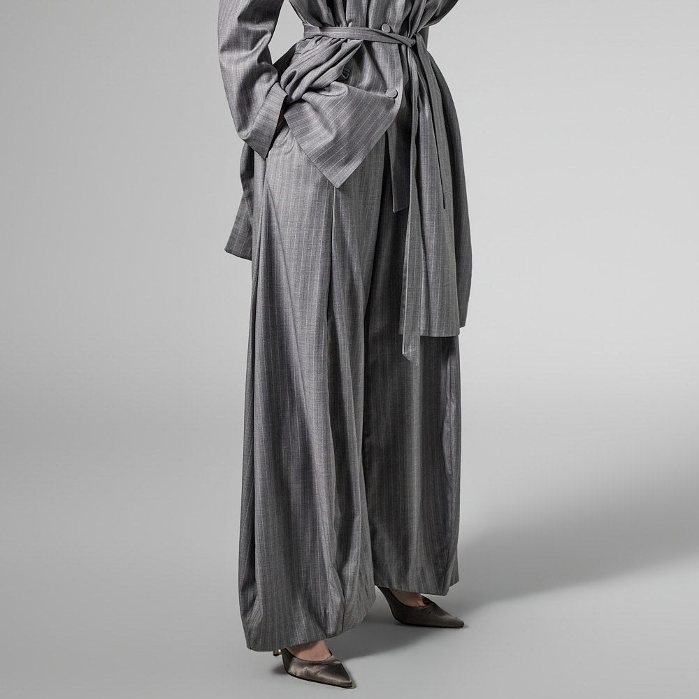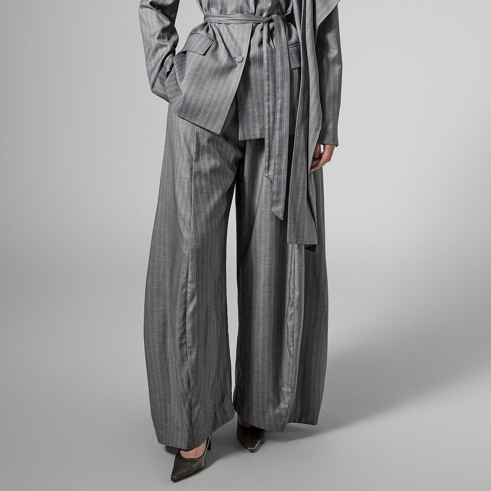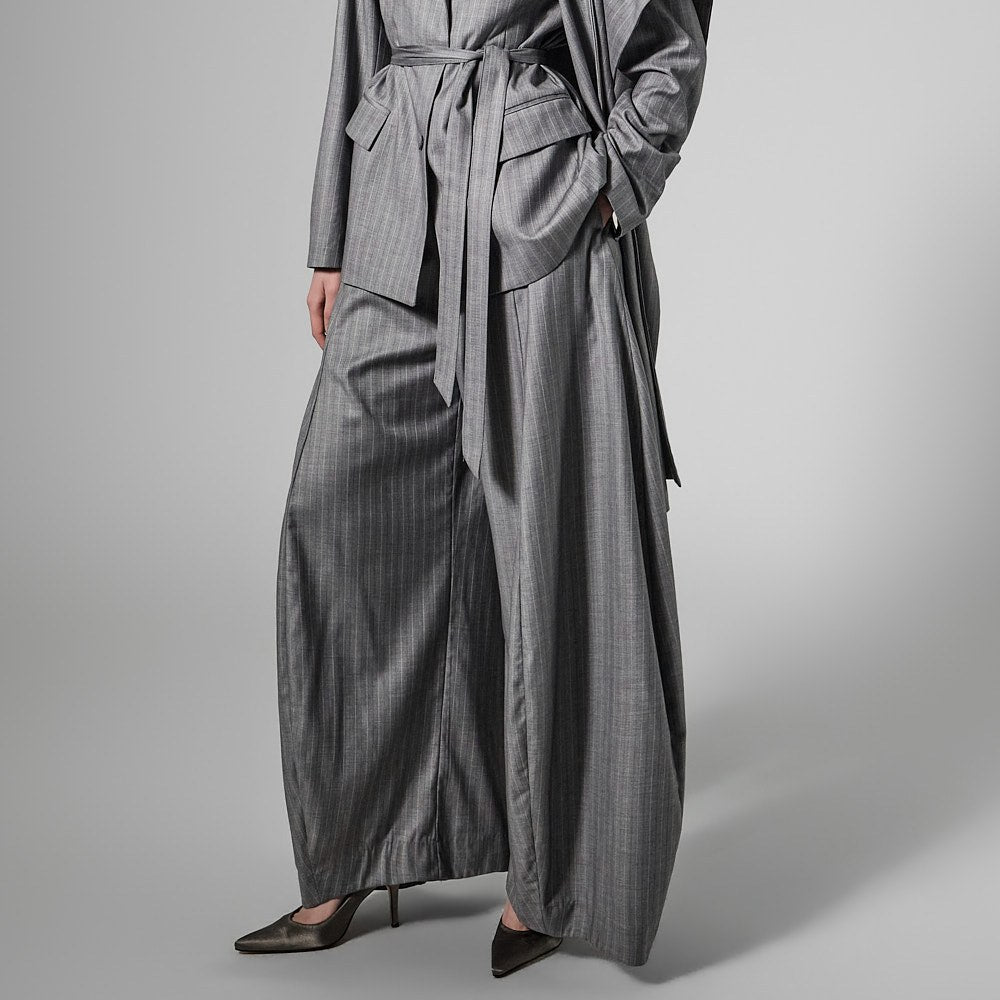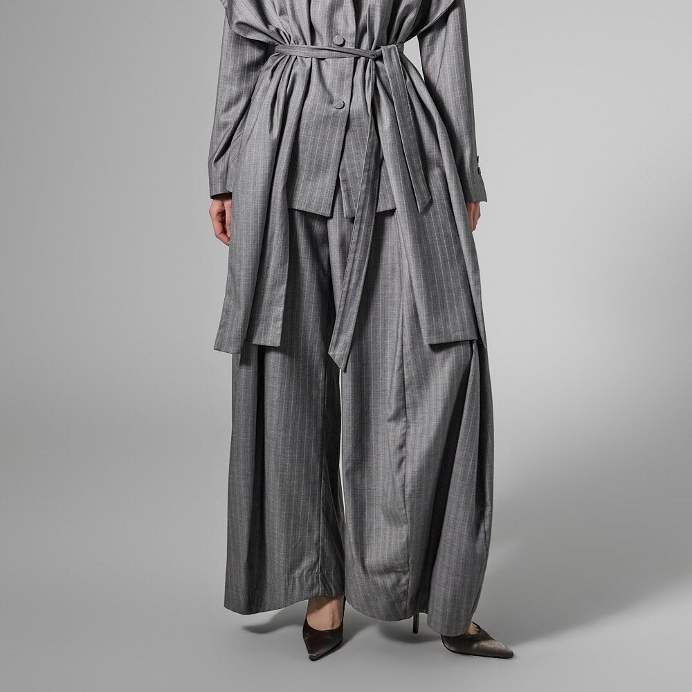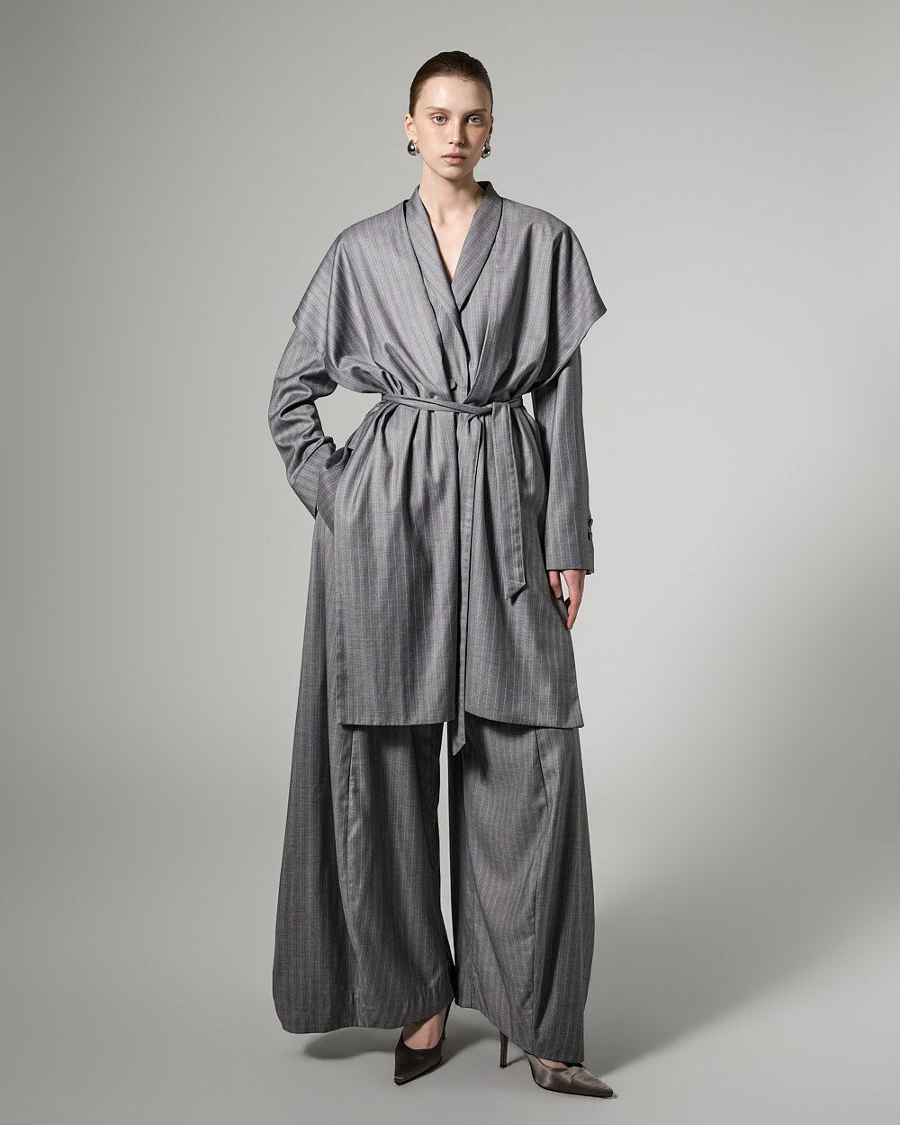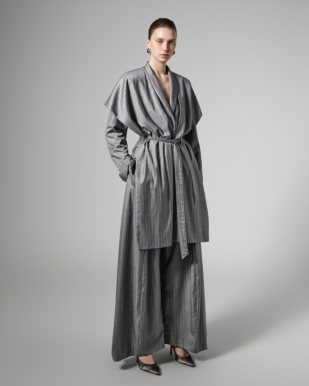 and the striped pattern adds a sophisticated touch to the overall silhouette.