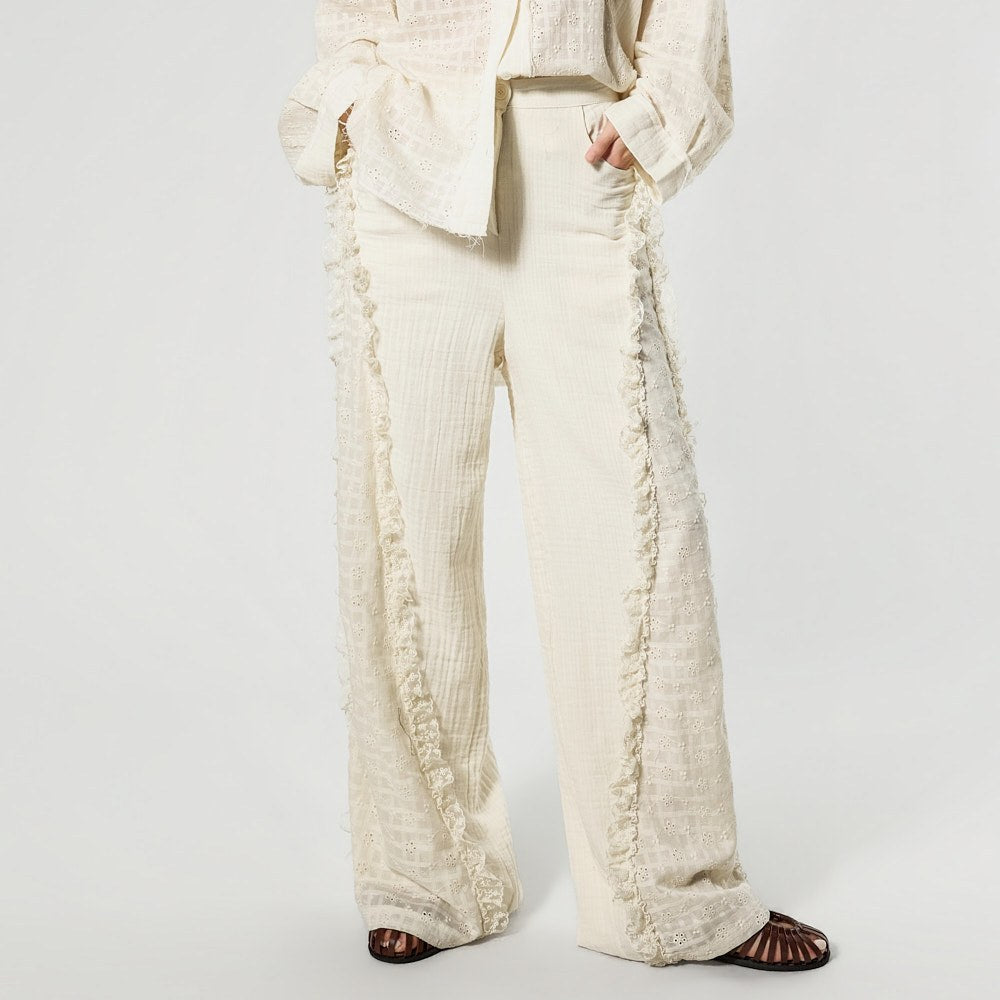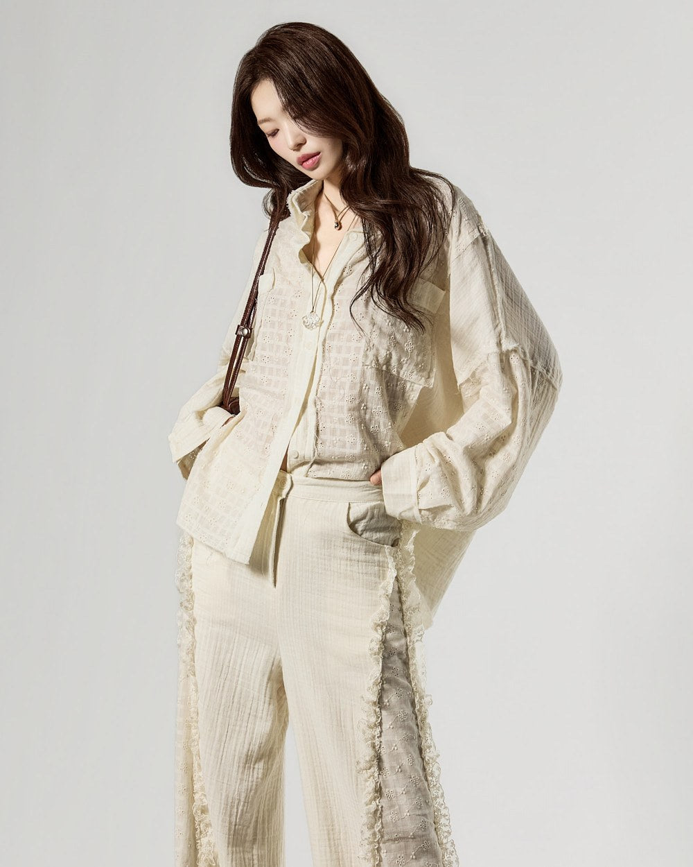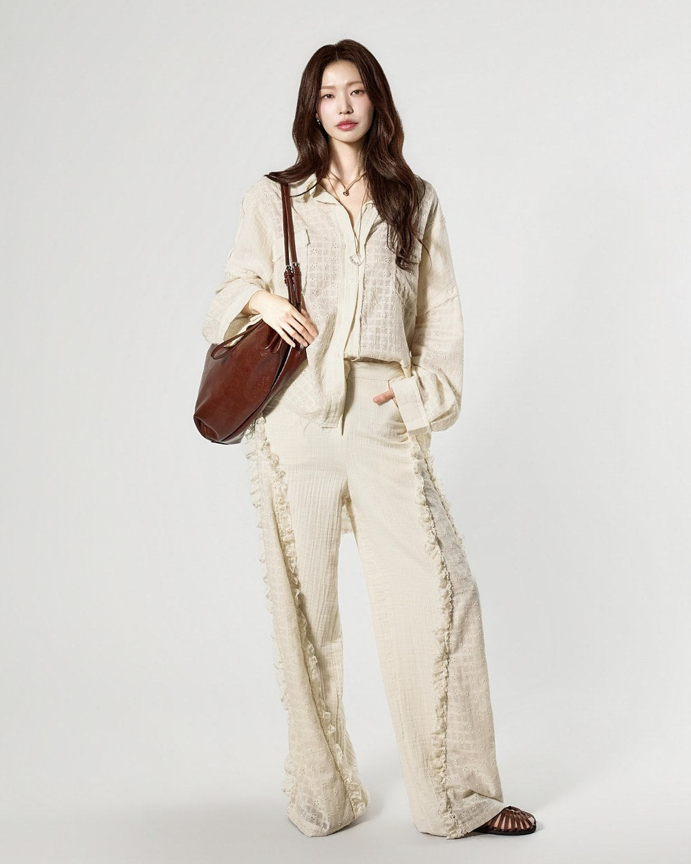 両サイドのフリルレースのディテールが可愛らしいアクセントになっています。