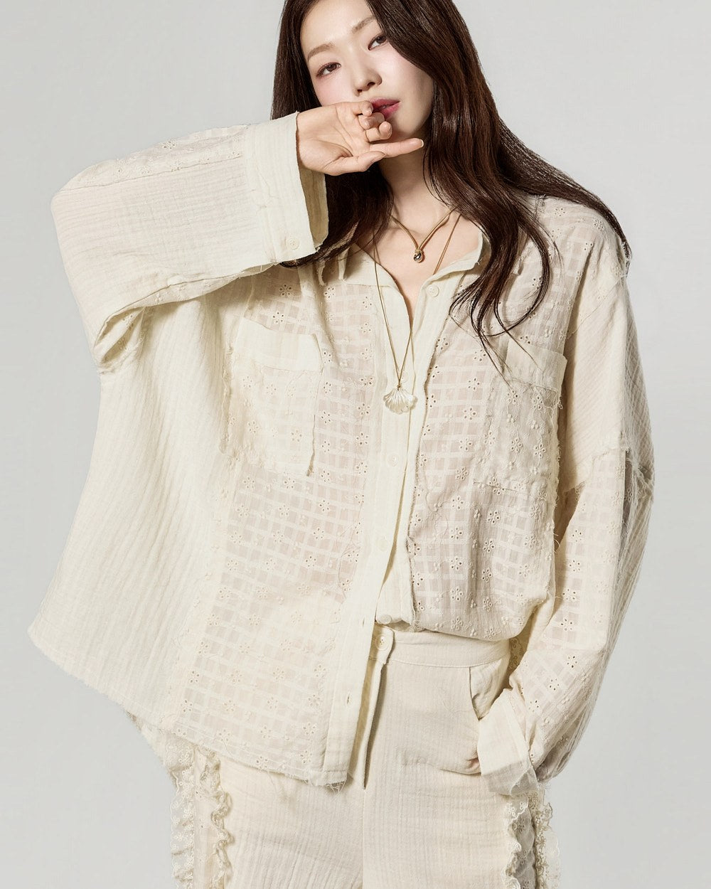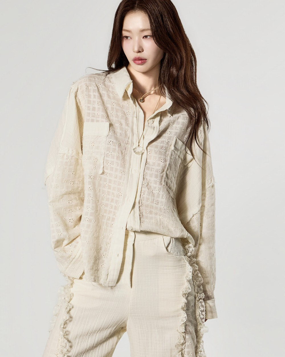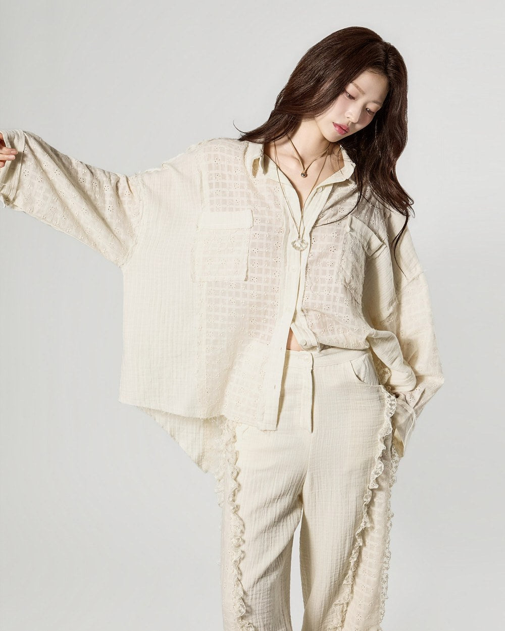 両サイドのフリルレースのディテールが可愛らしいアクセントになっています。