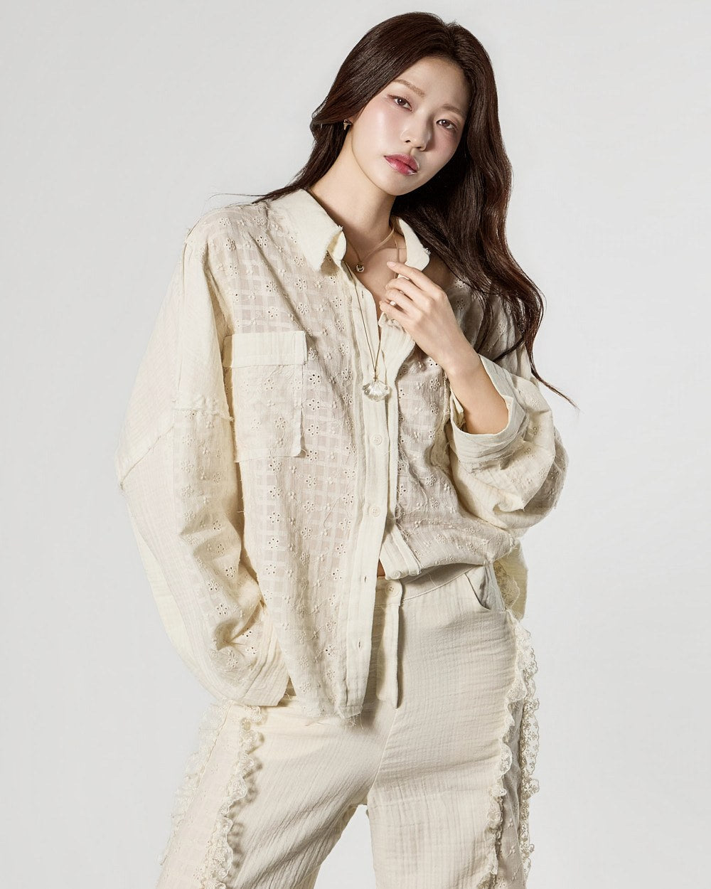 モデル身長171cm、CREAMカラーのSサイズを着用しています。