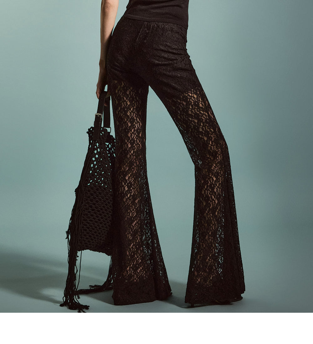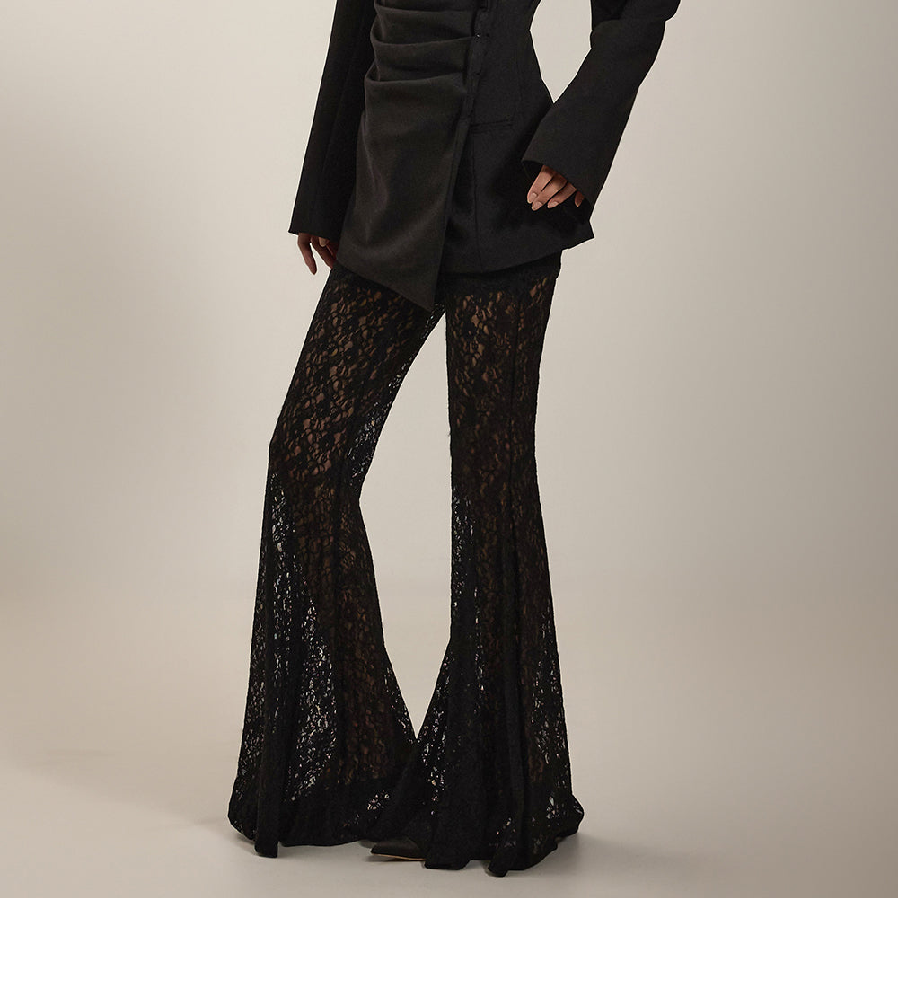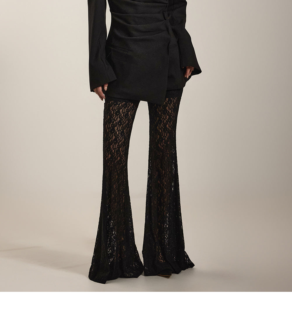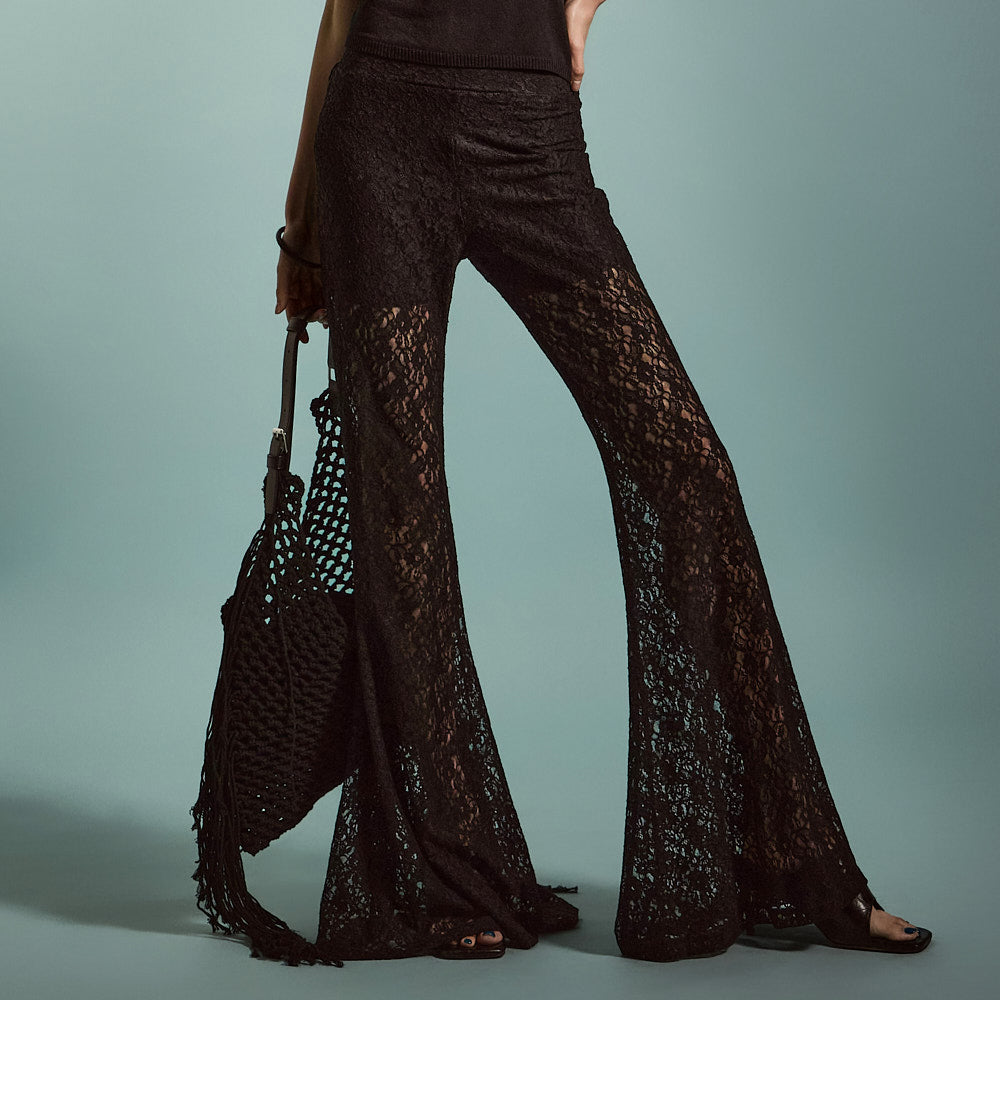 柔軟なブレンドから作られたユニークなレースフレアパンツです
