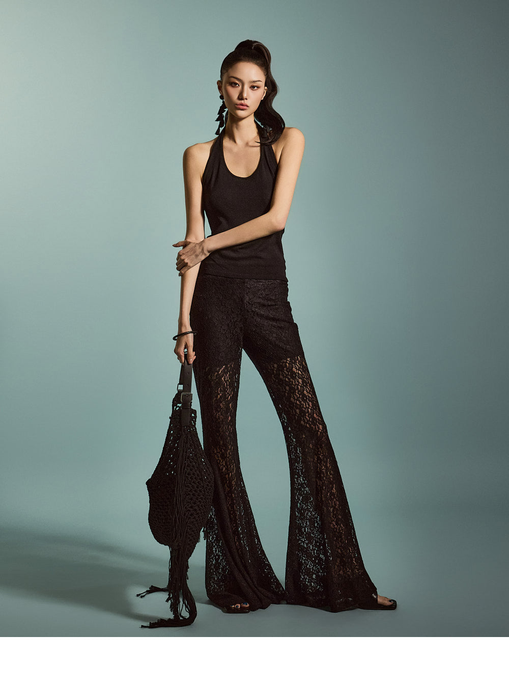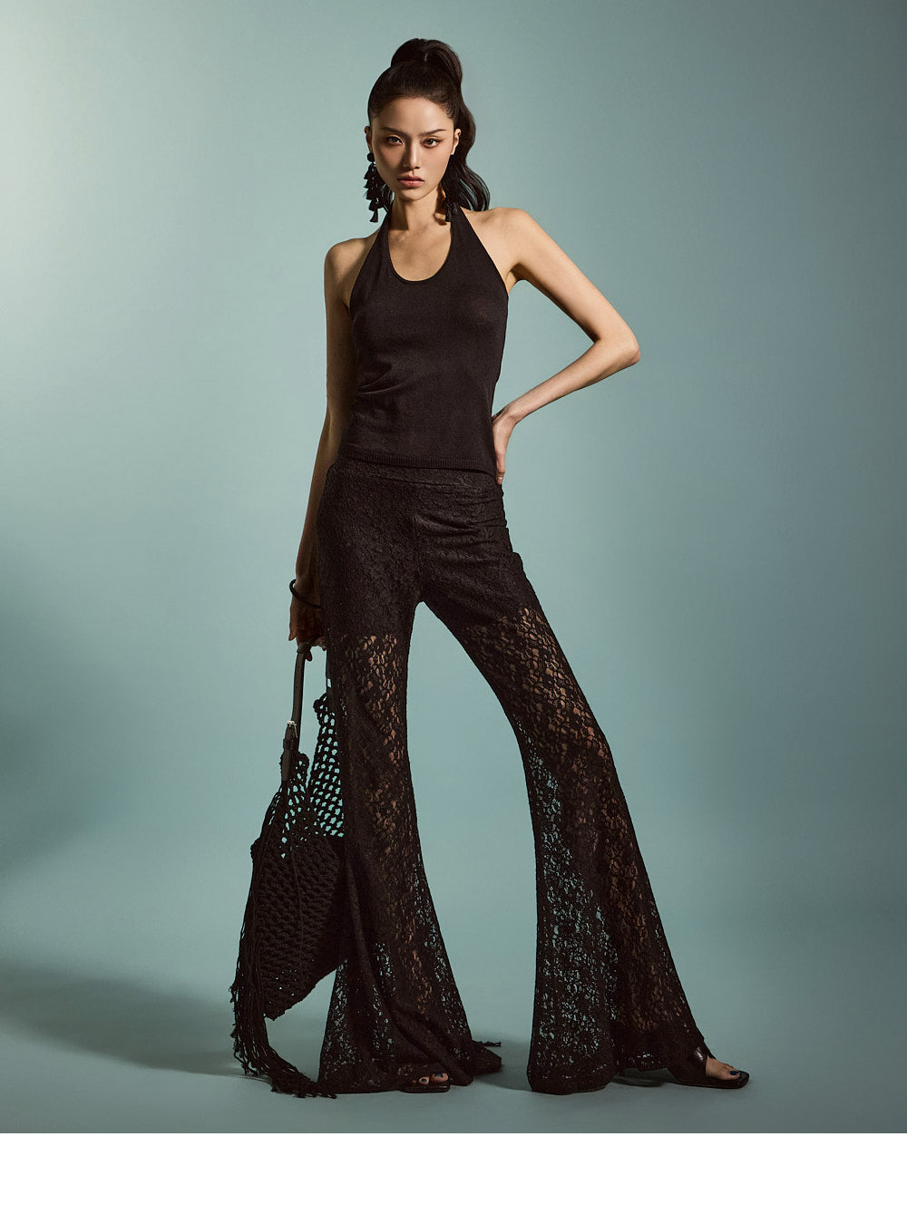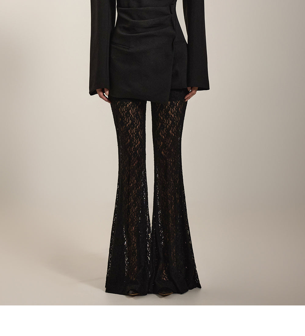 柔軟なブレンドから作られたユニークなレースフレアパンツです