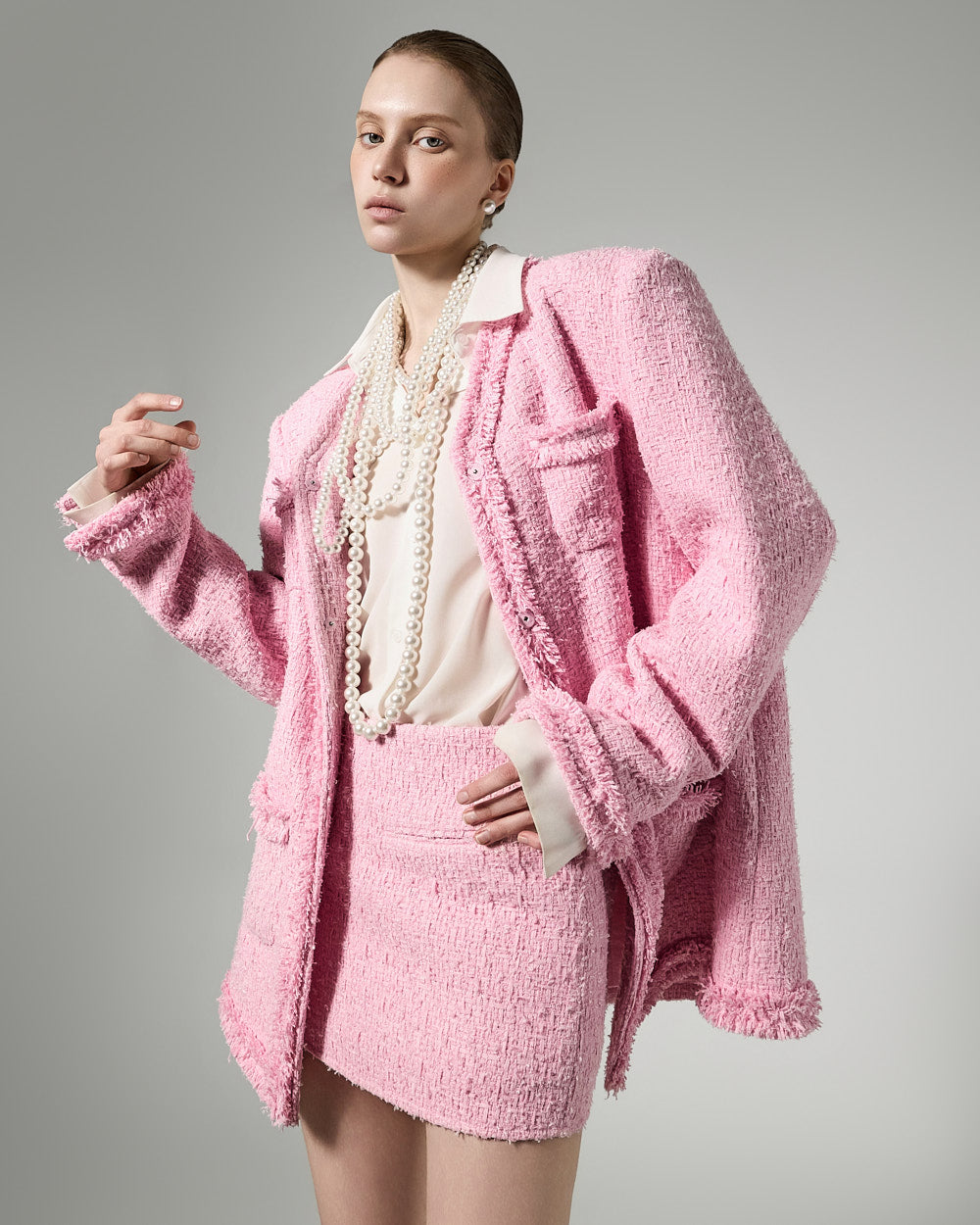 These tweed skirt pants harmoniously blend a modern mood with a classic sensibility.