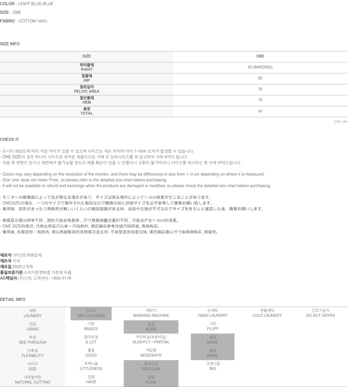 モデルの身長は171cm、ブルーのワンサイズを着用しています。