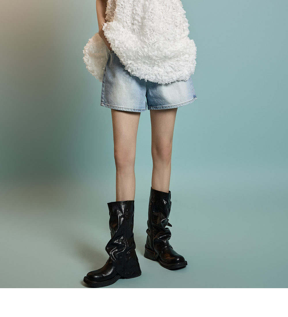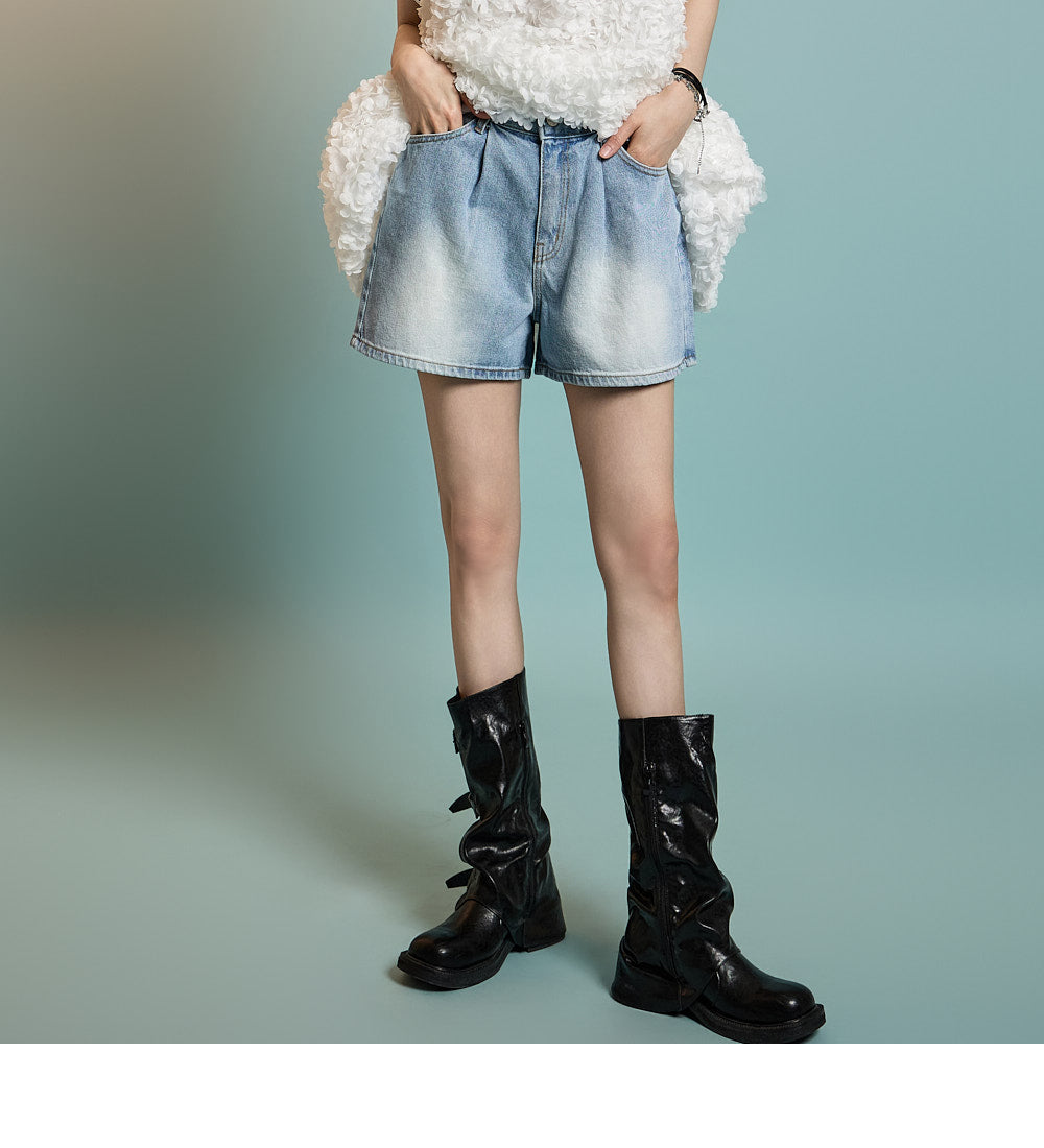 PJ584 ピンタックショートジーンズ