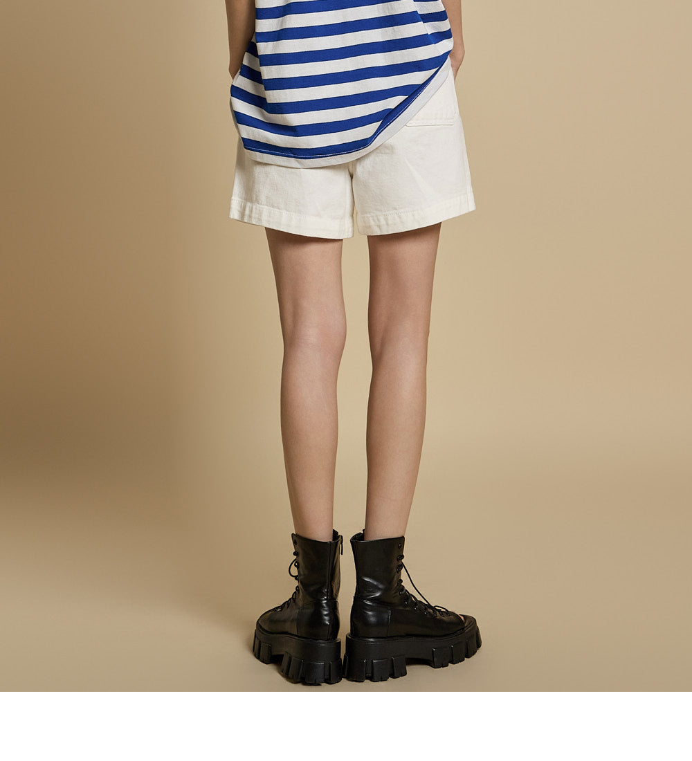 ややゆったりとしたフィット感と、自然に太ももが隠れる丈感で、