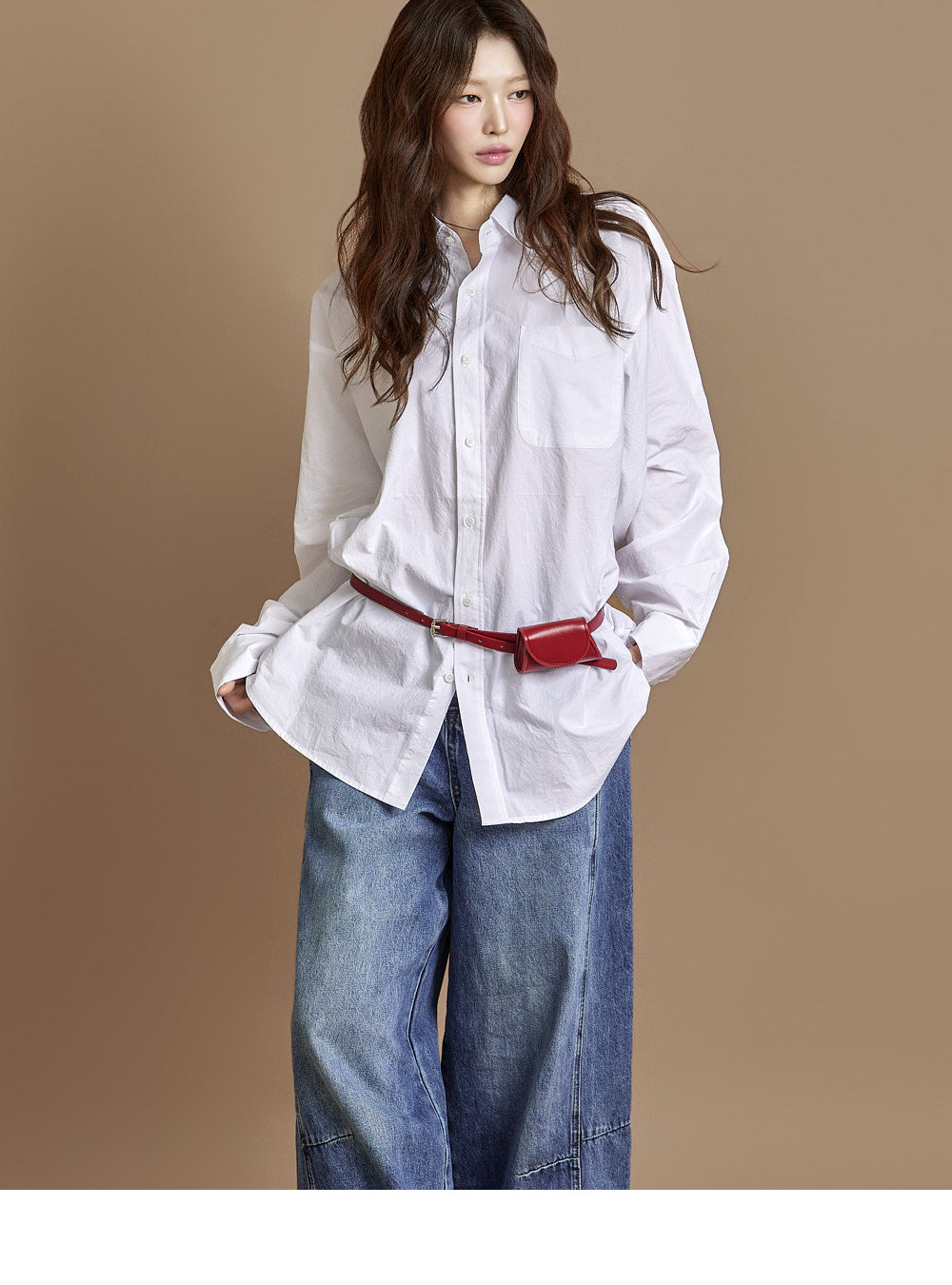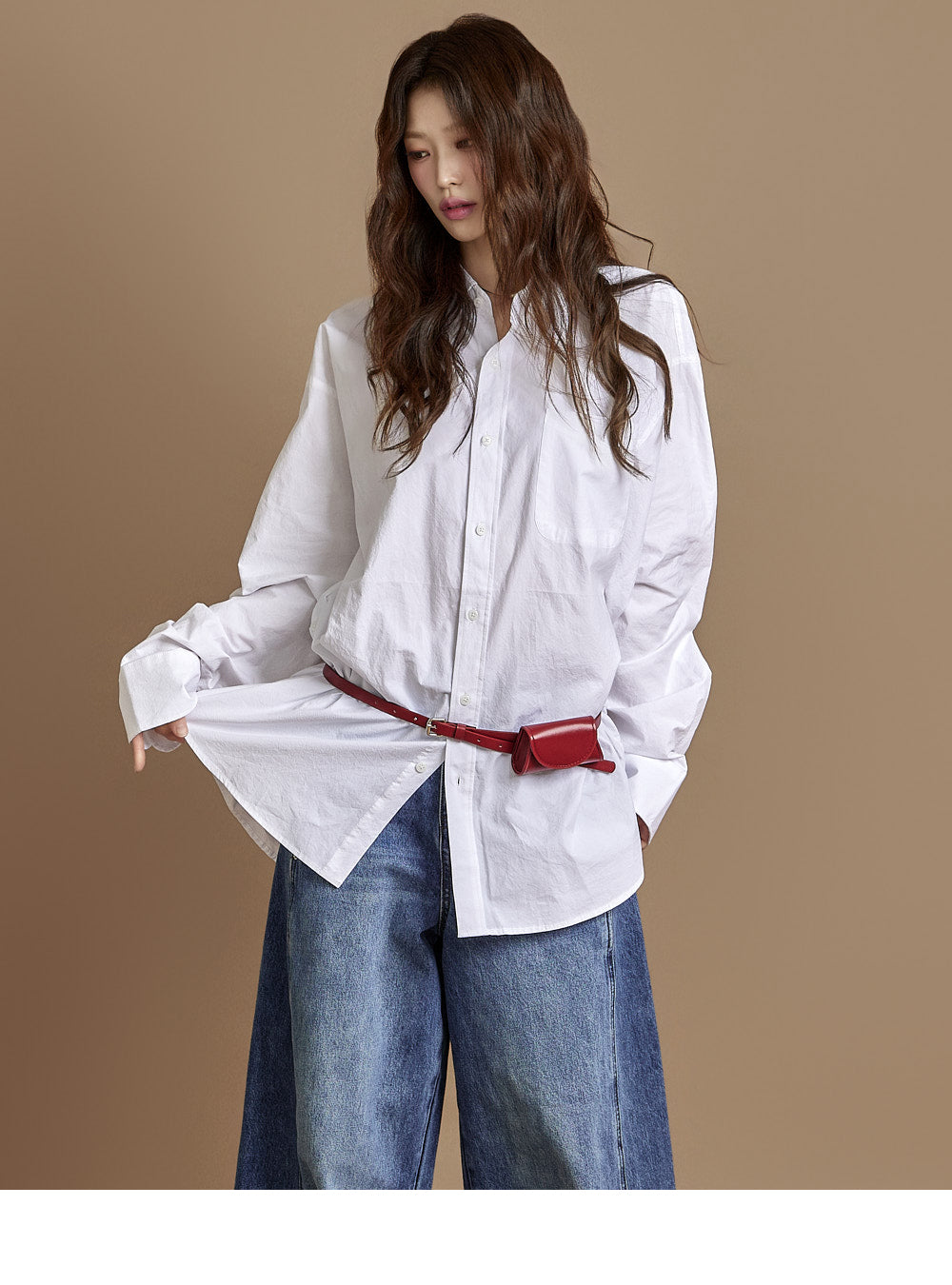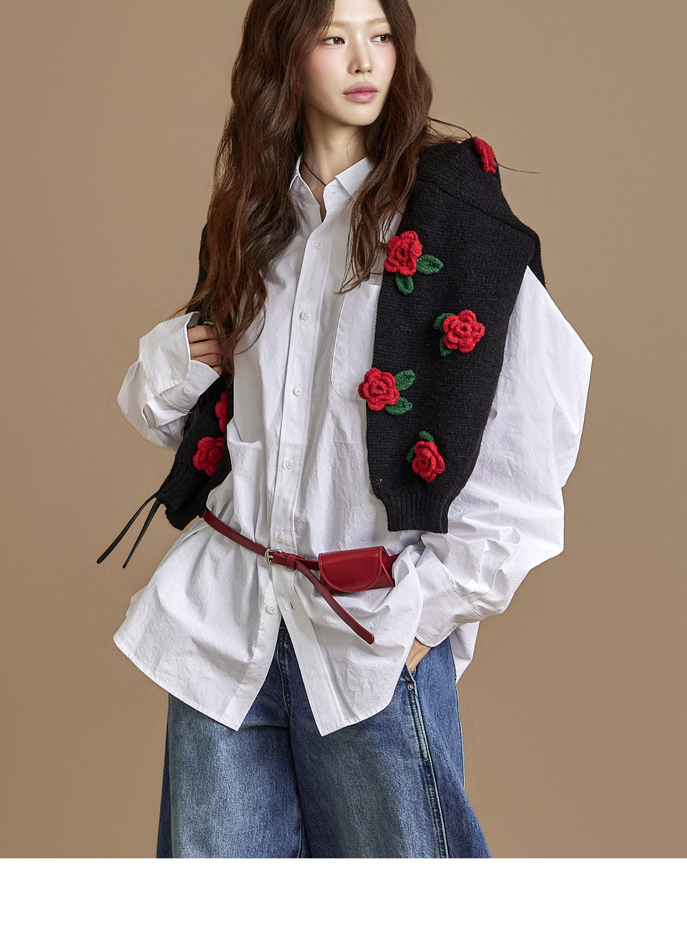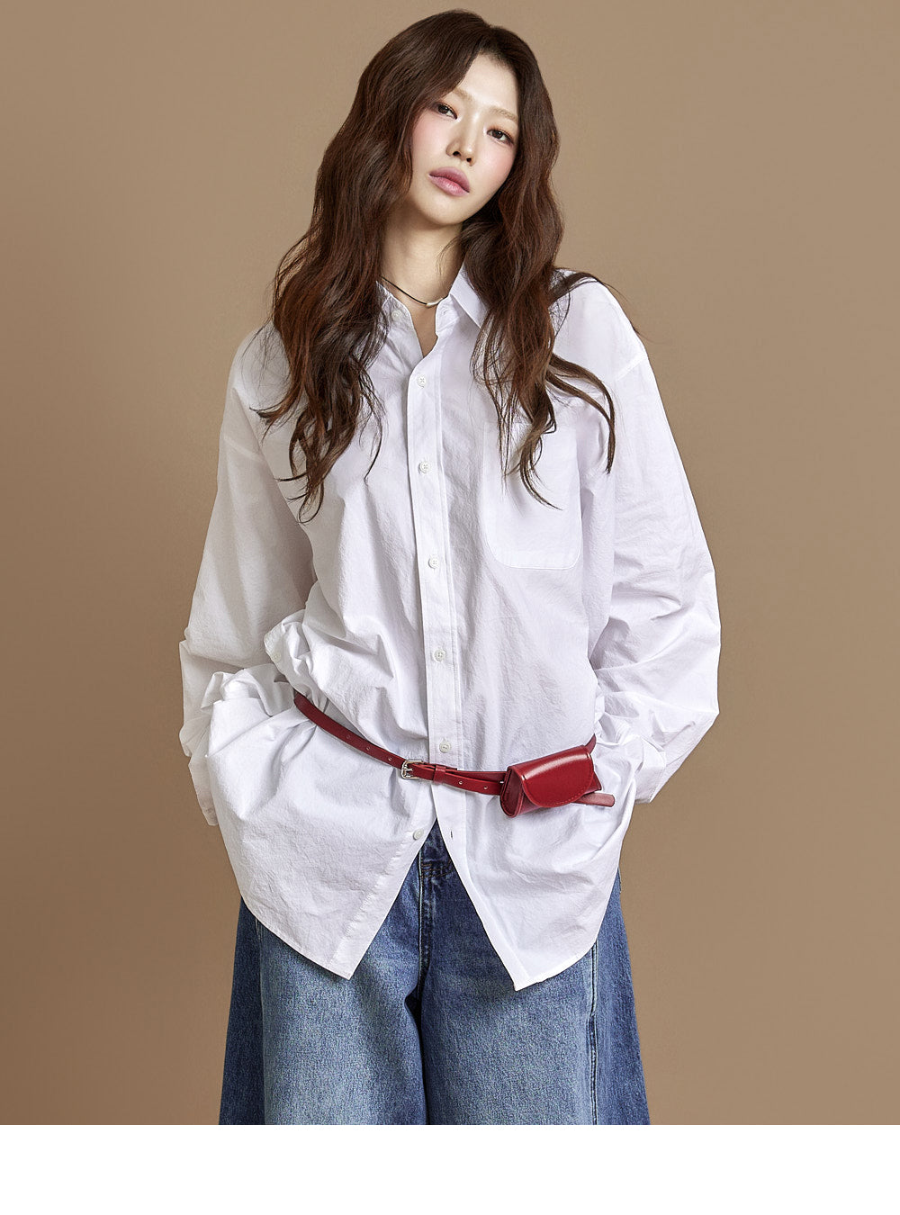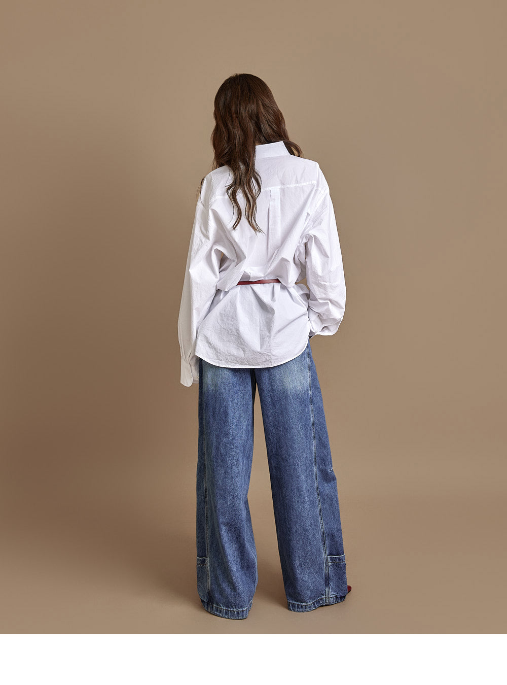 The loose, wide-fit silhouette naturally contours the body,