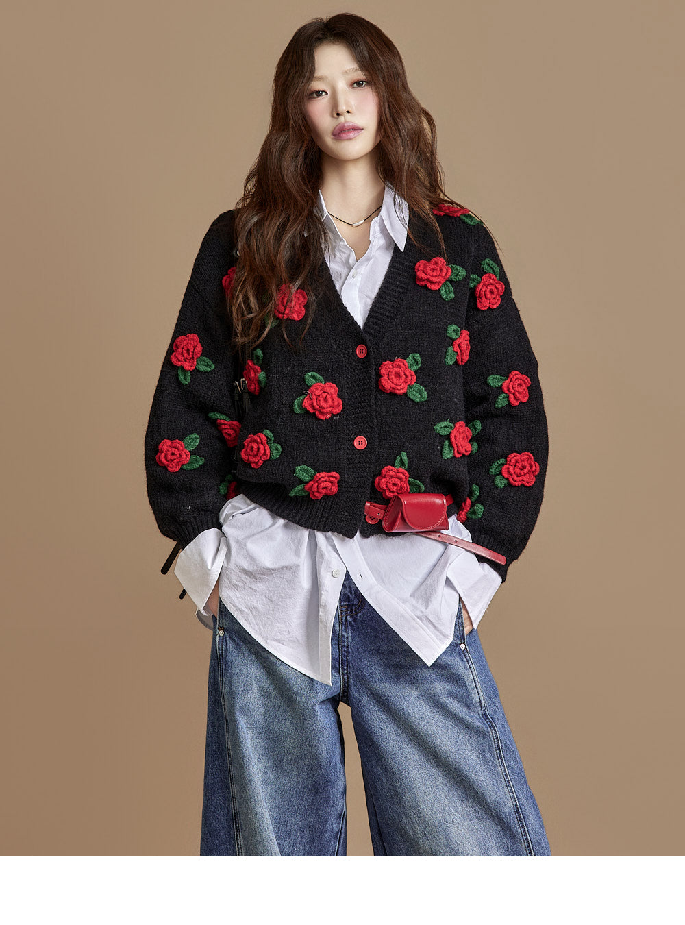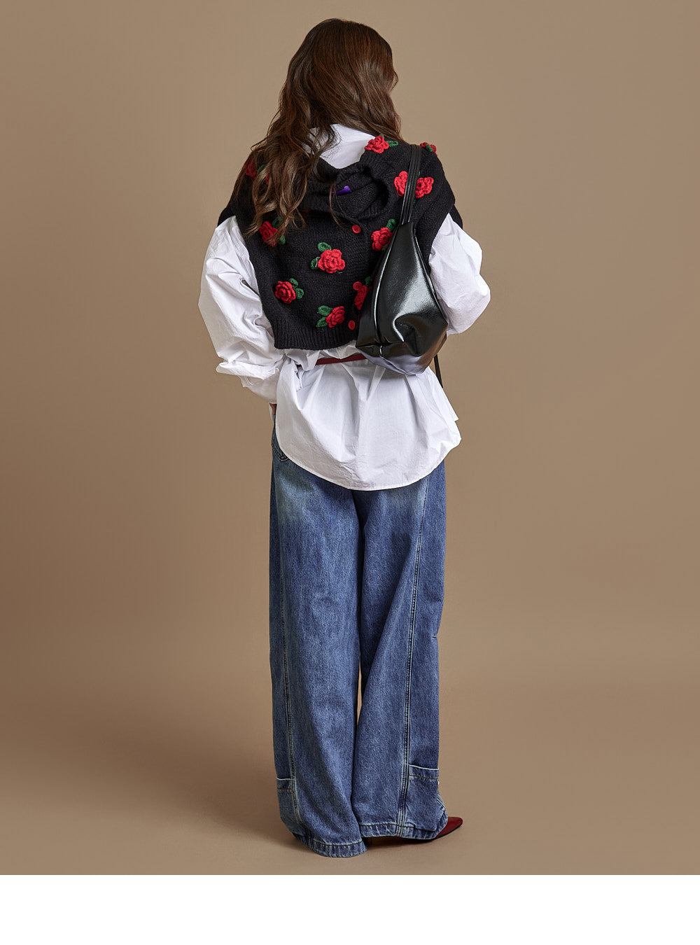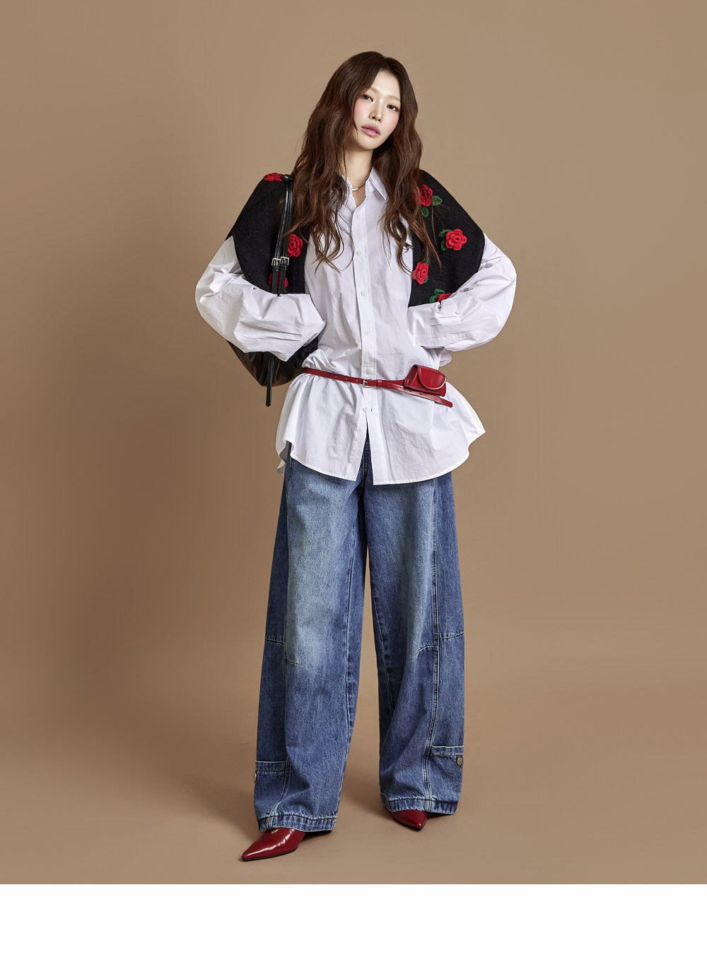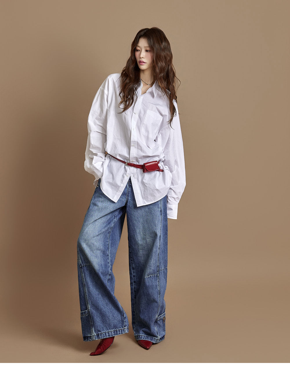 The loose, wide-fit silhouette naturally contours the body,