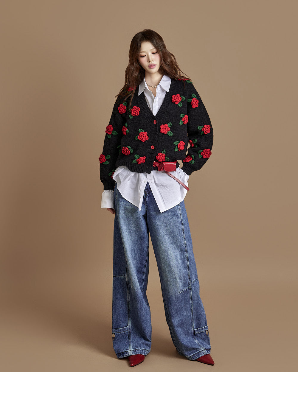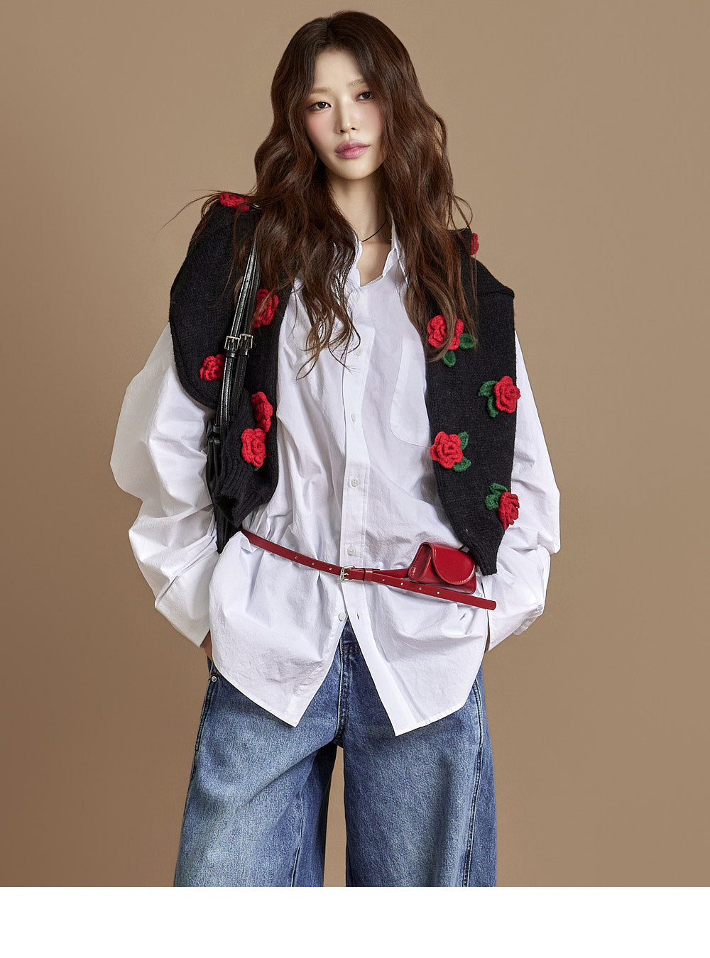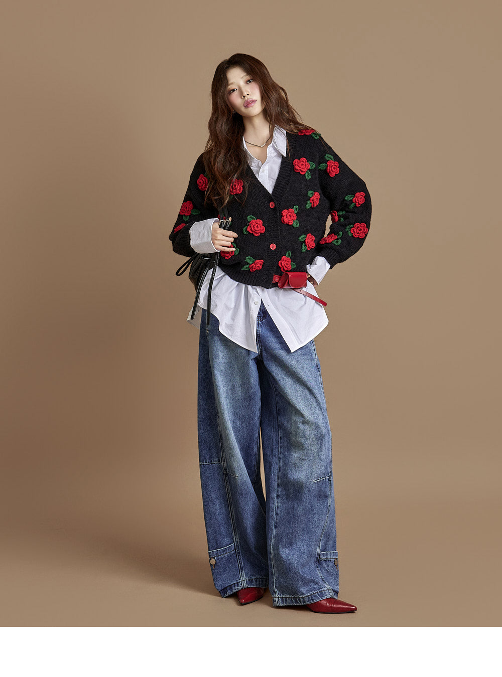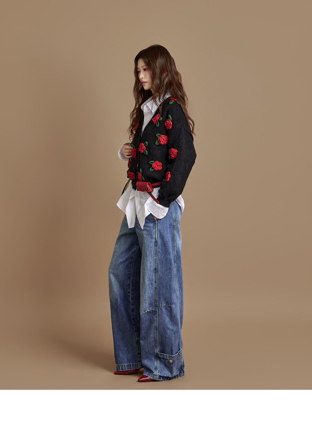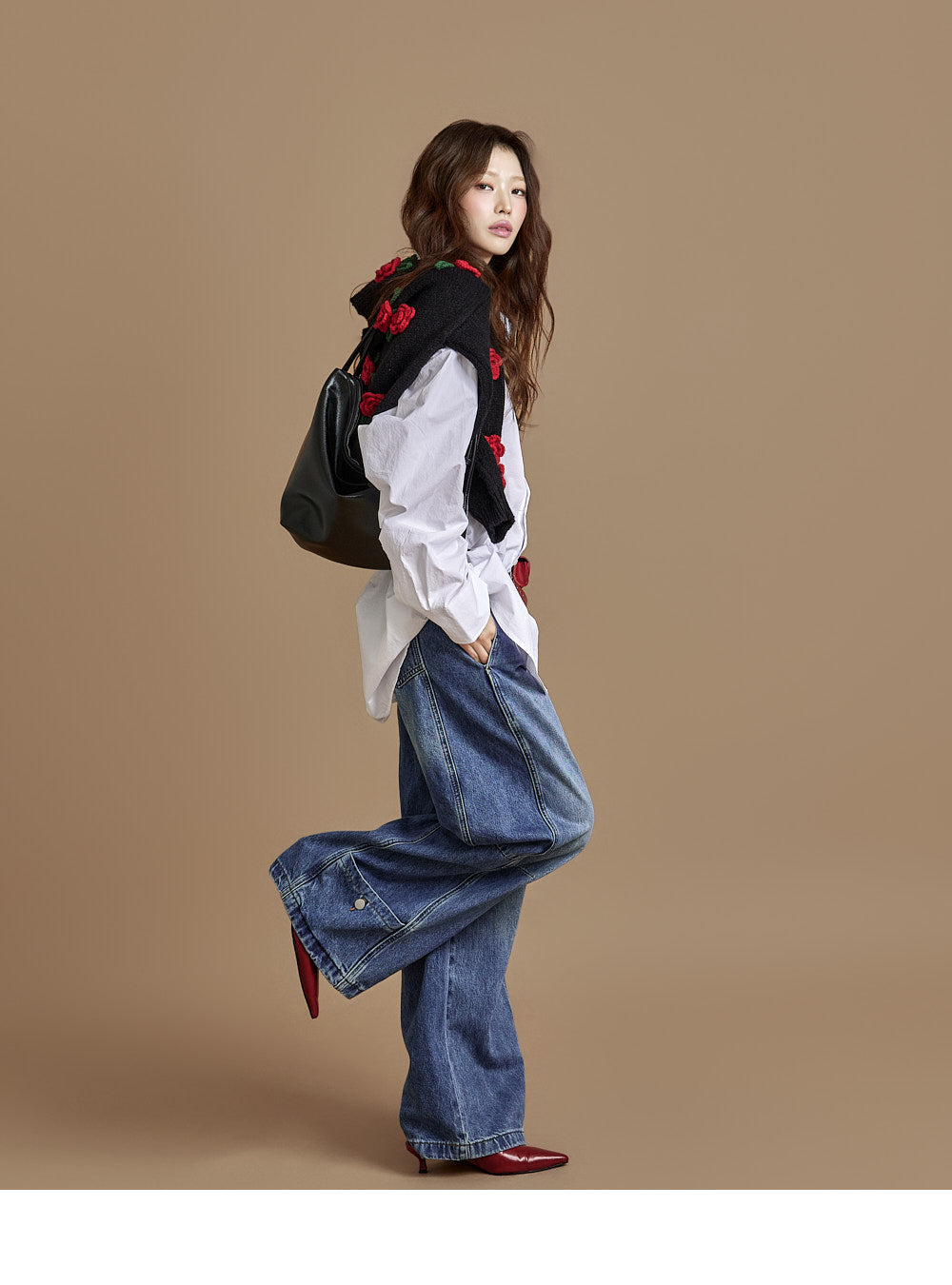 The loose, wide-fit silhouette naturally contours the body,
