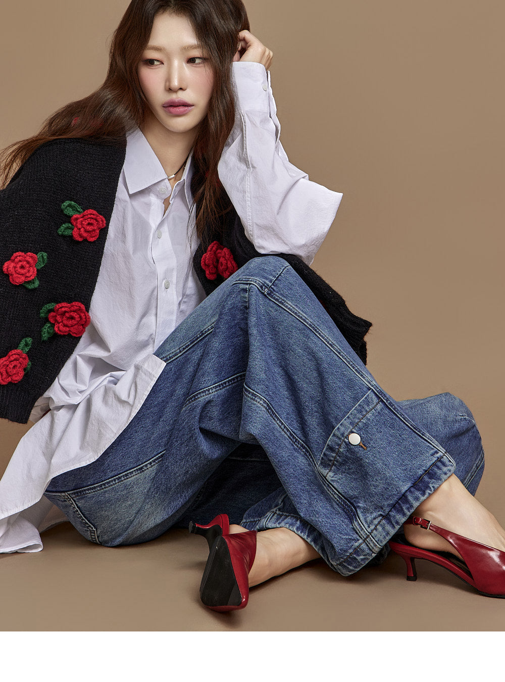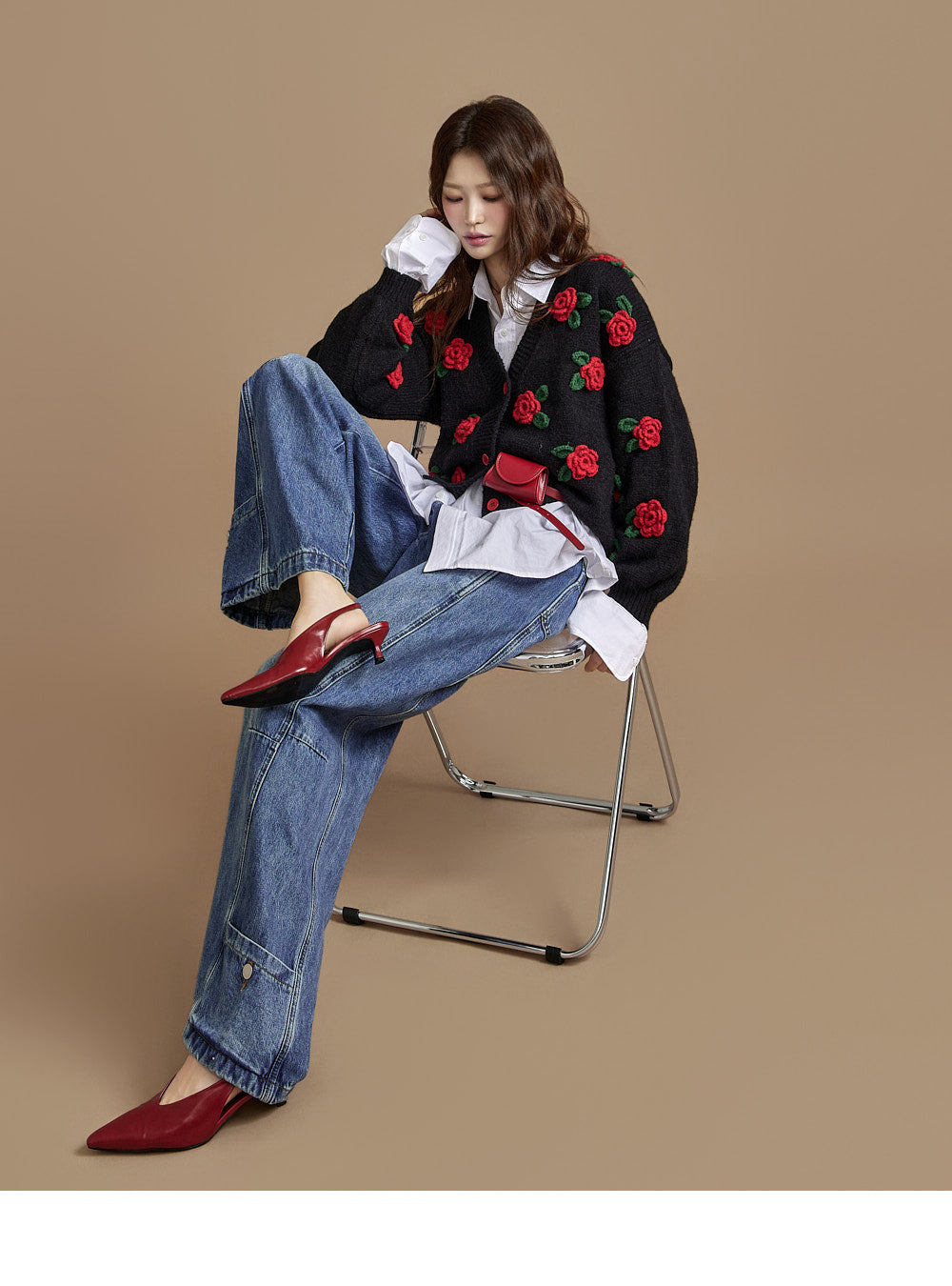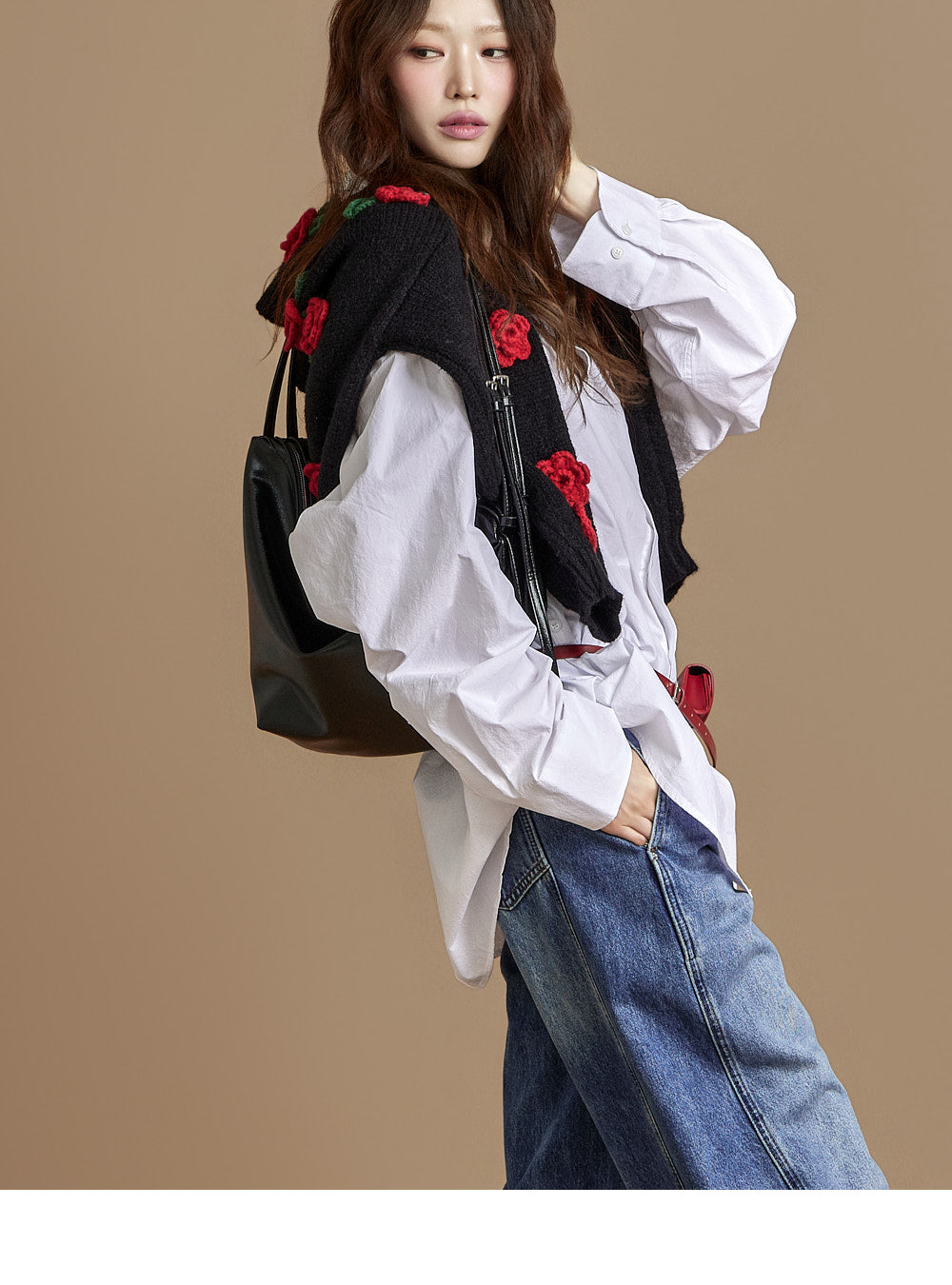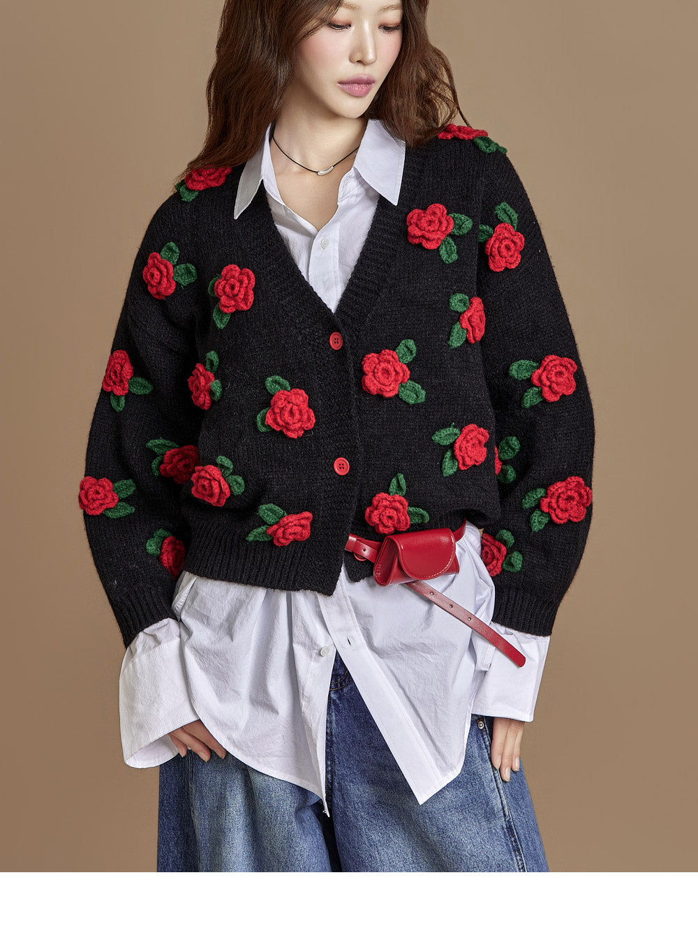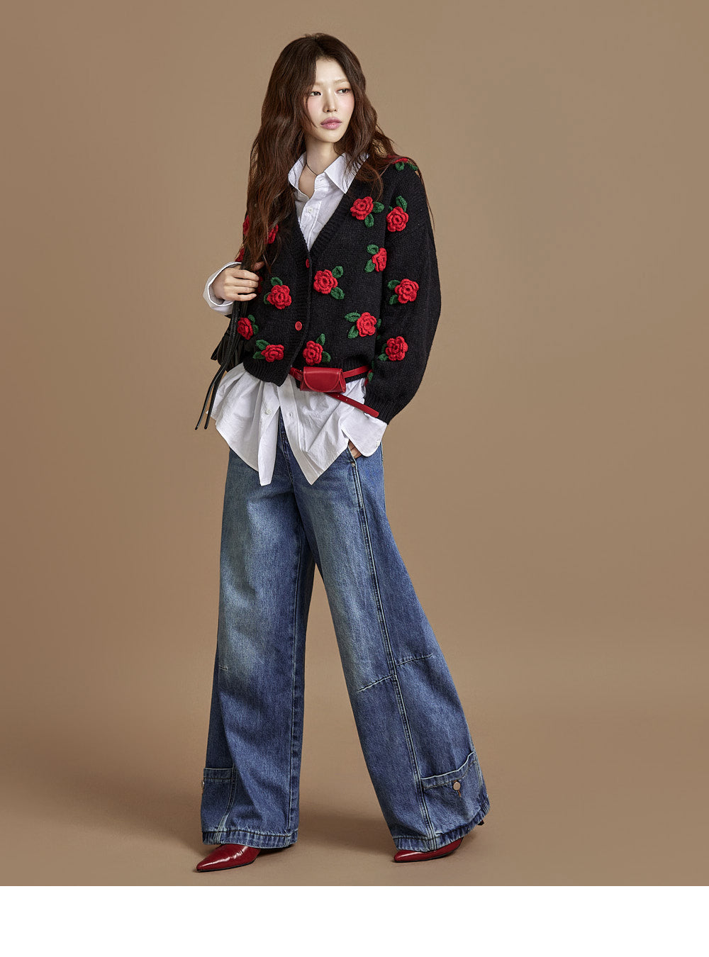 The loose, wide-fit silhouette naturally contours the body,