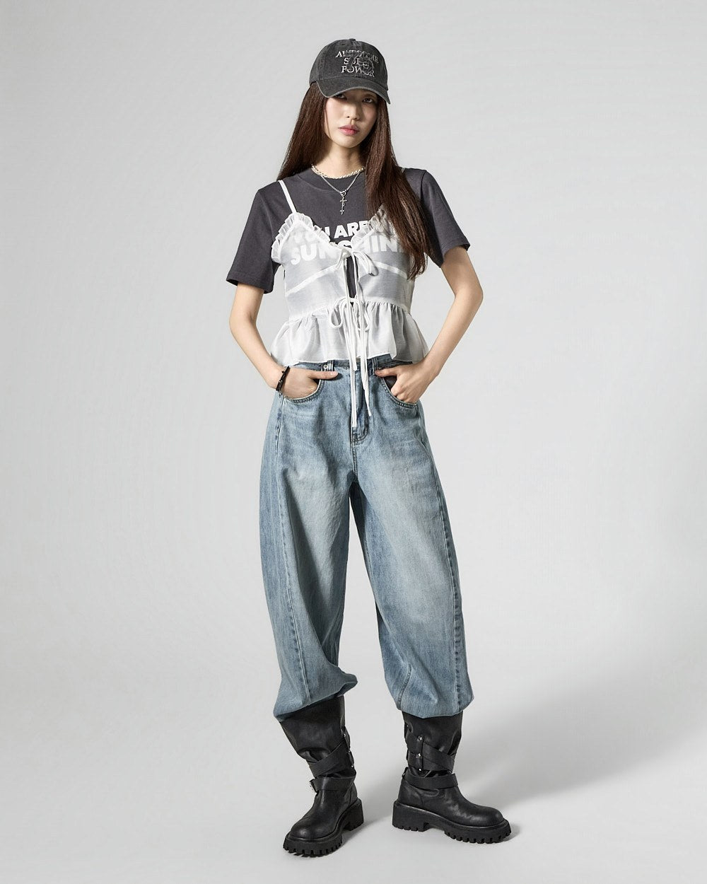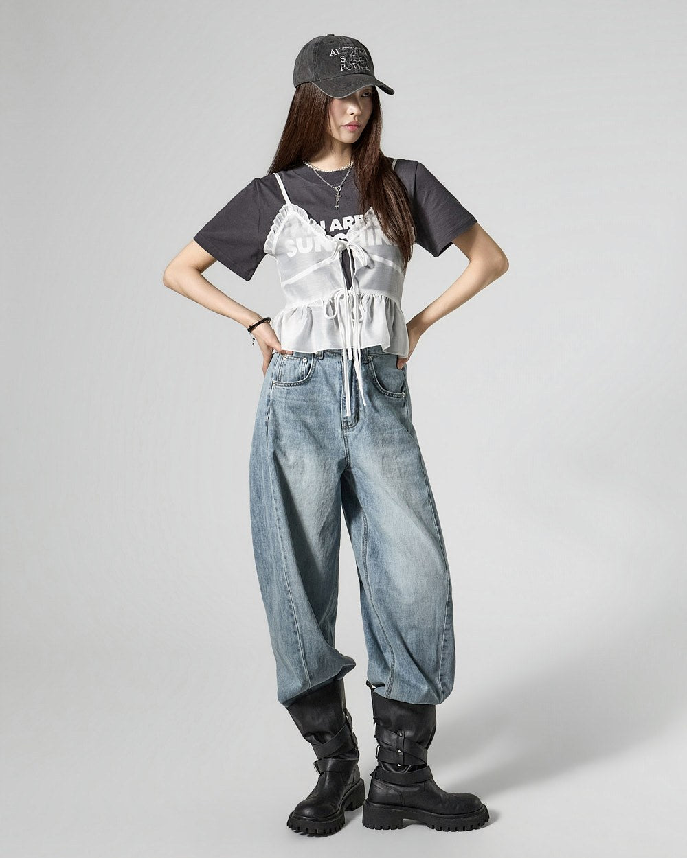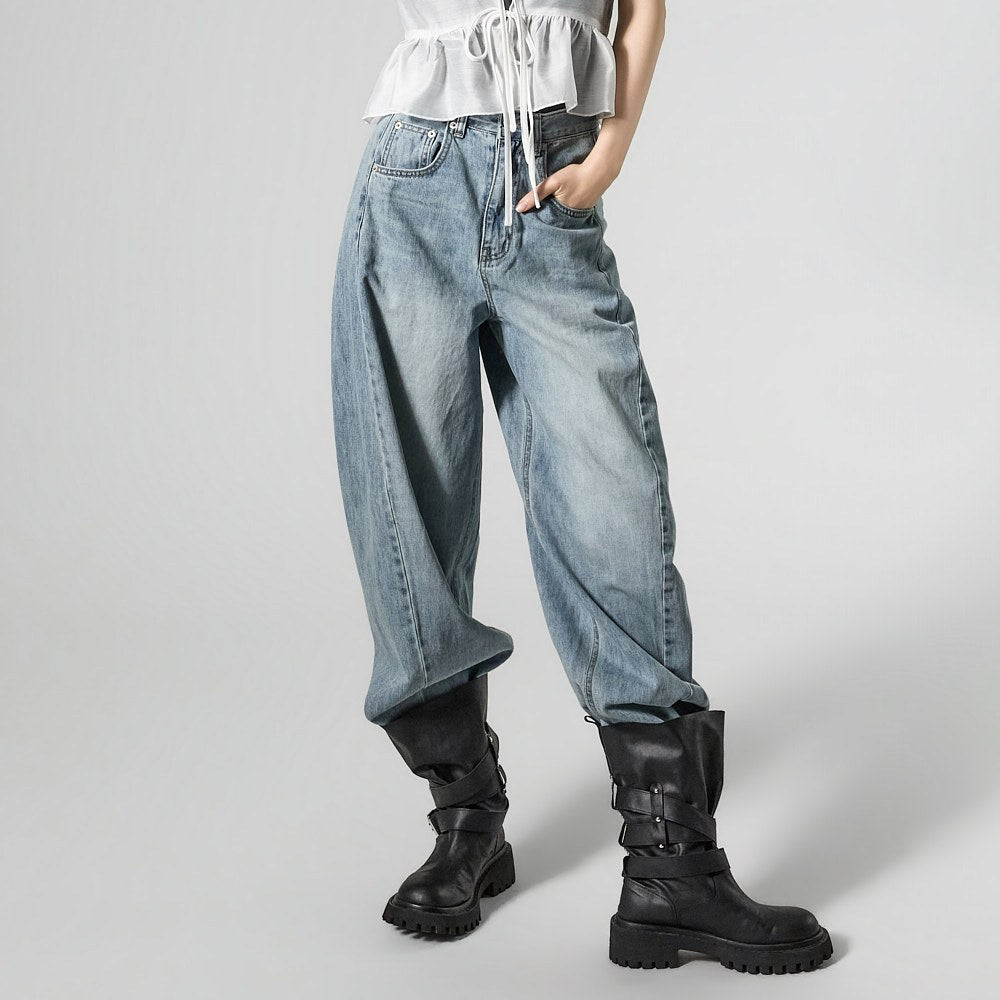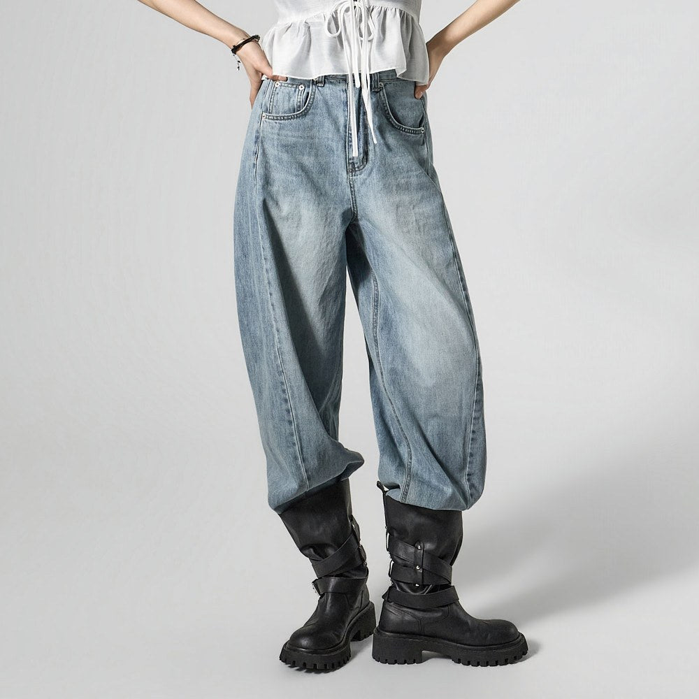 These semi-balloon jeans offer a stylish yet casual vibe.