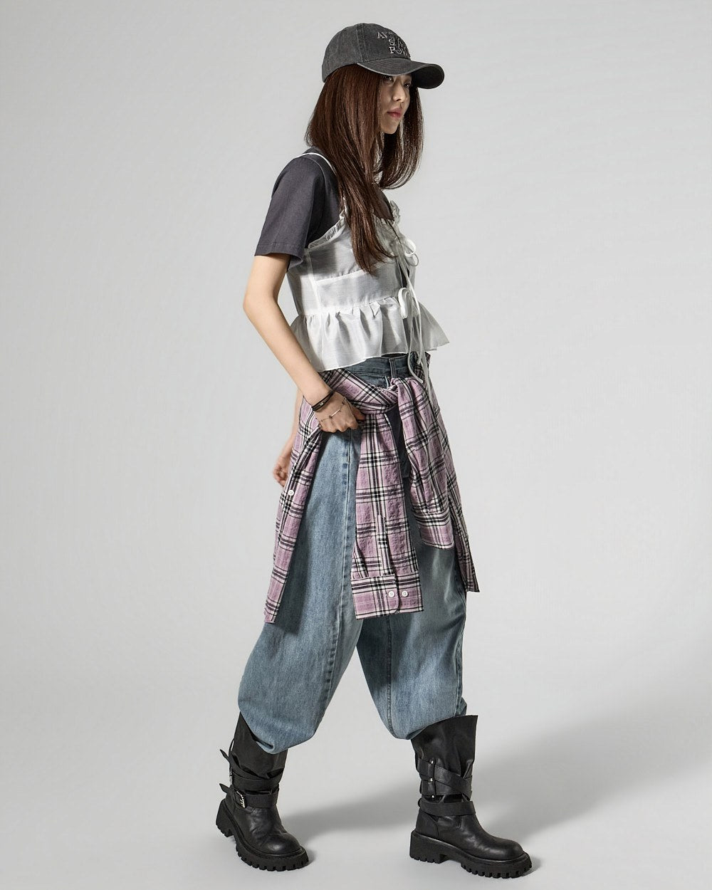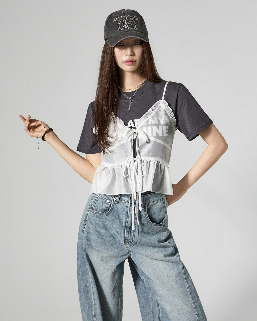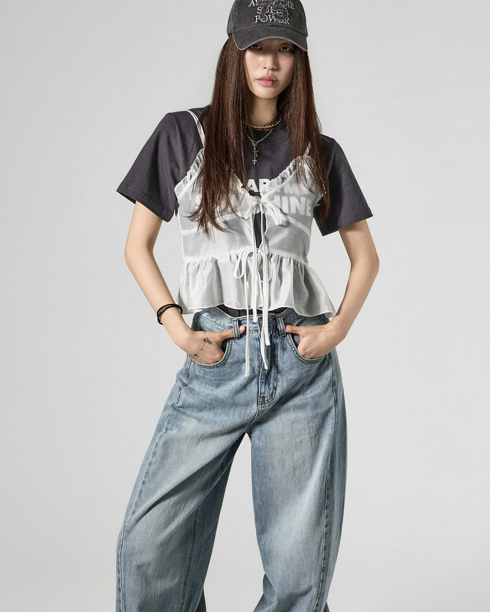 These semi-balloon jeans offer a stylish yet casual vibe.