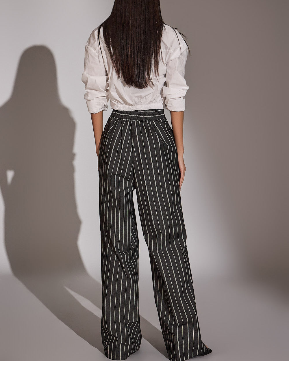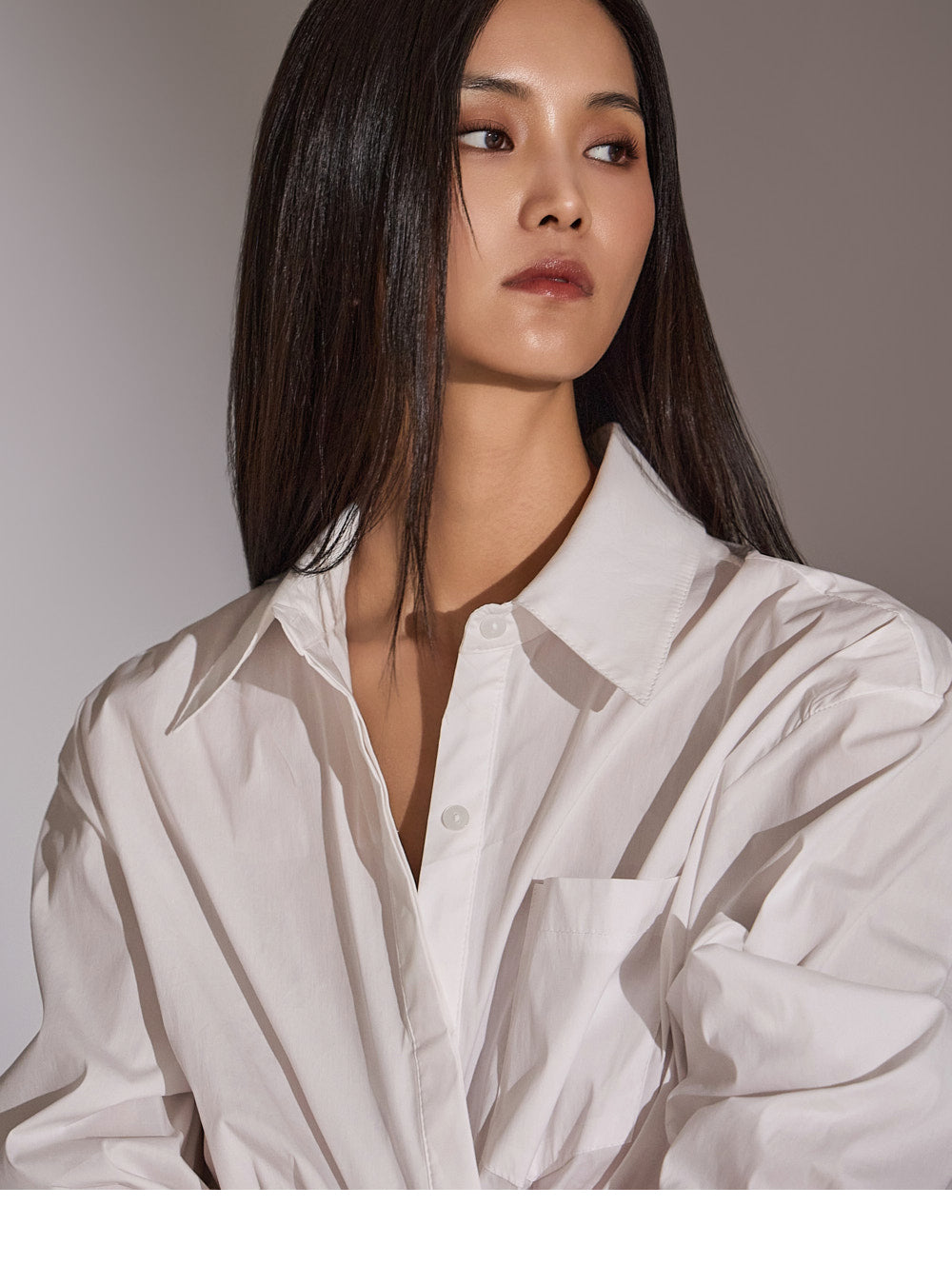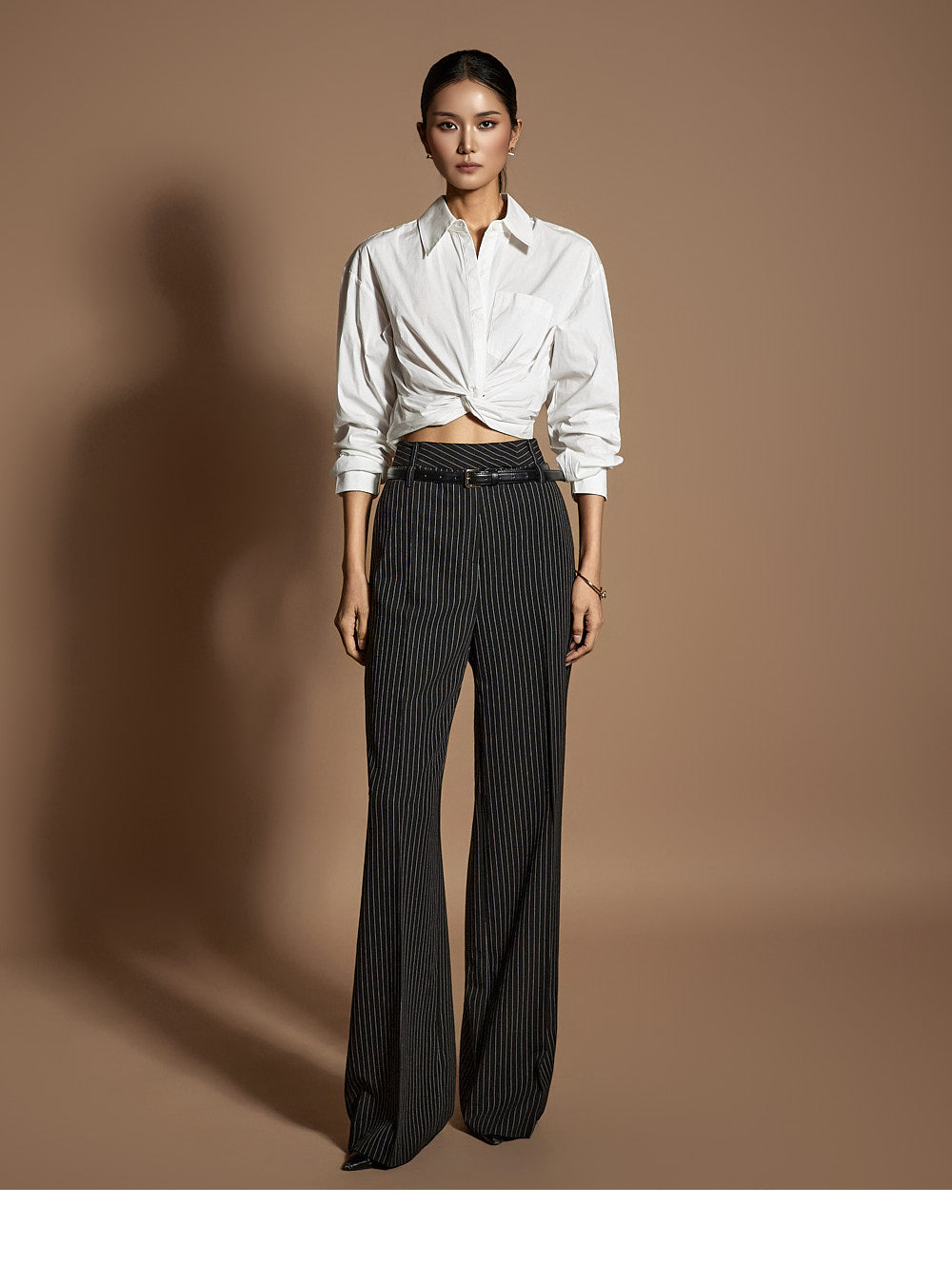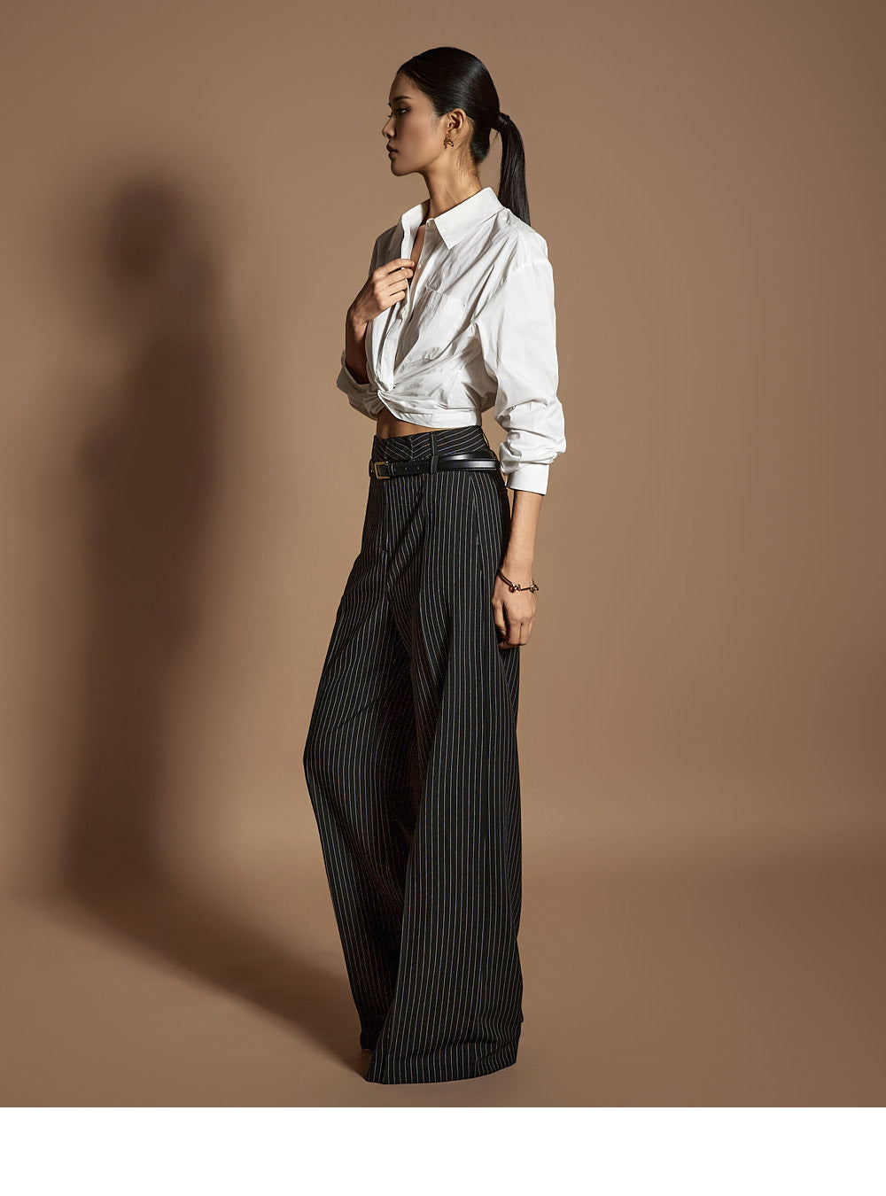 このシャツは、トレンド感のあるクロップド丈にスタイリングされています。
