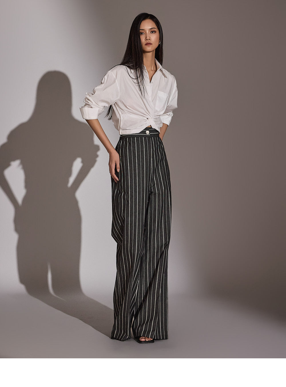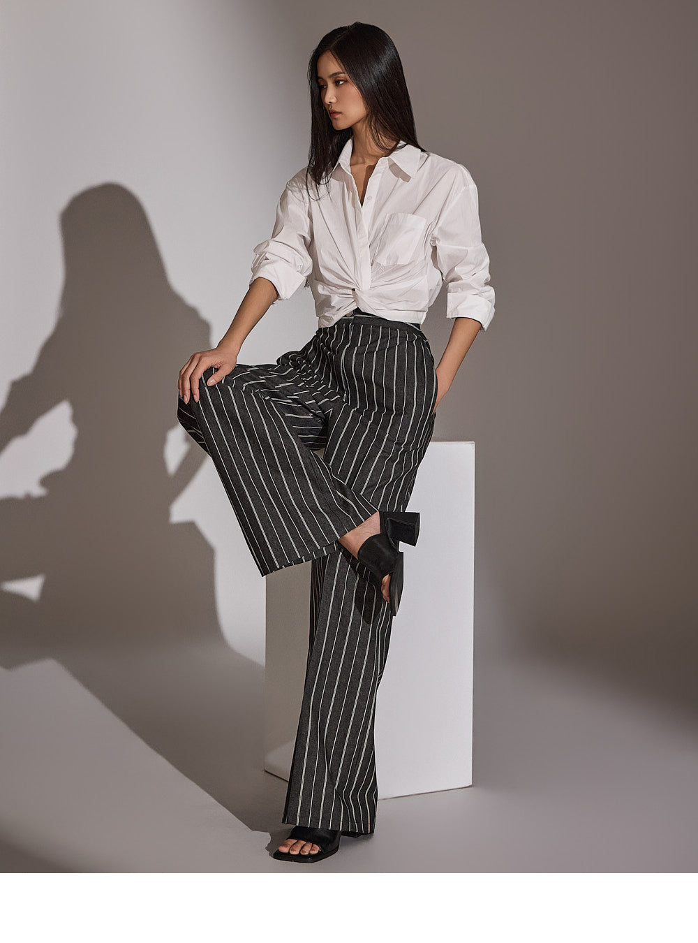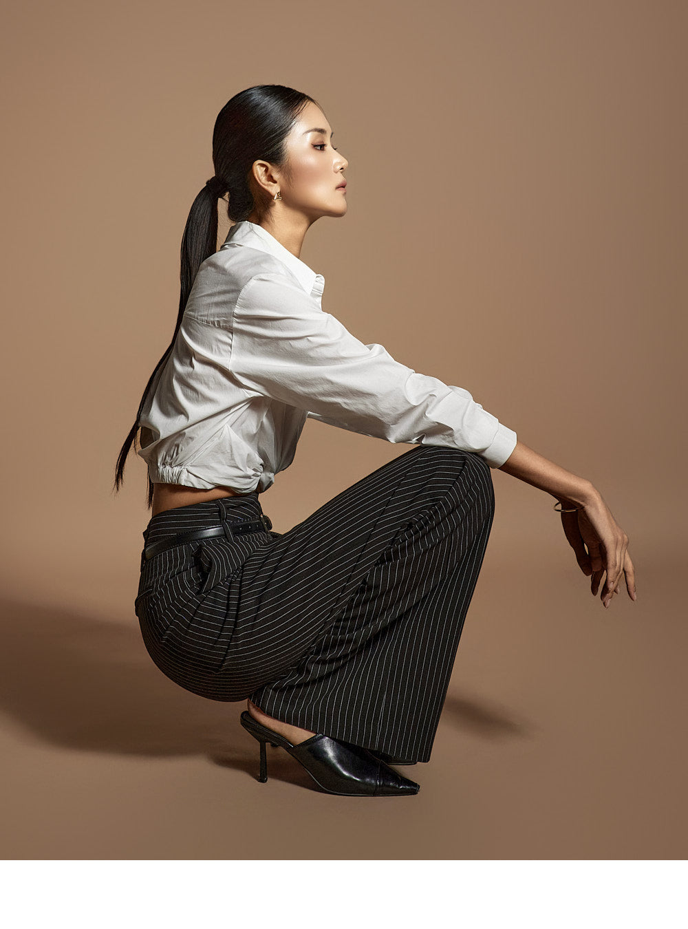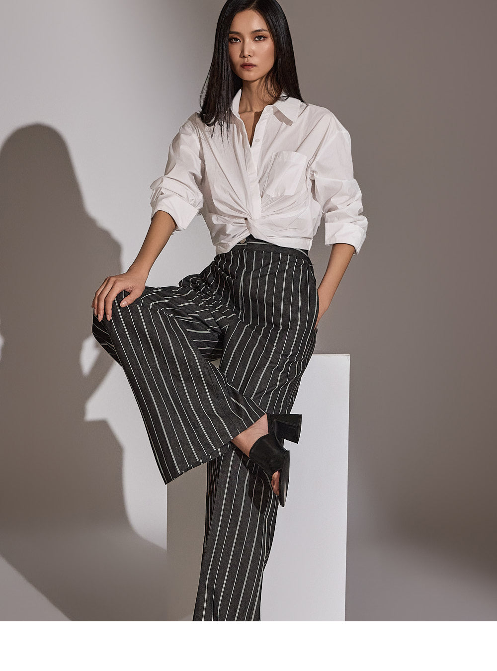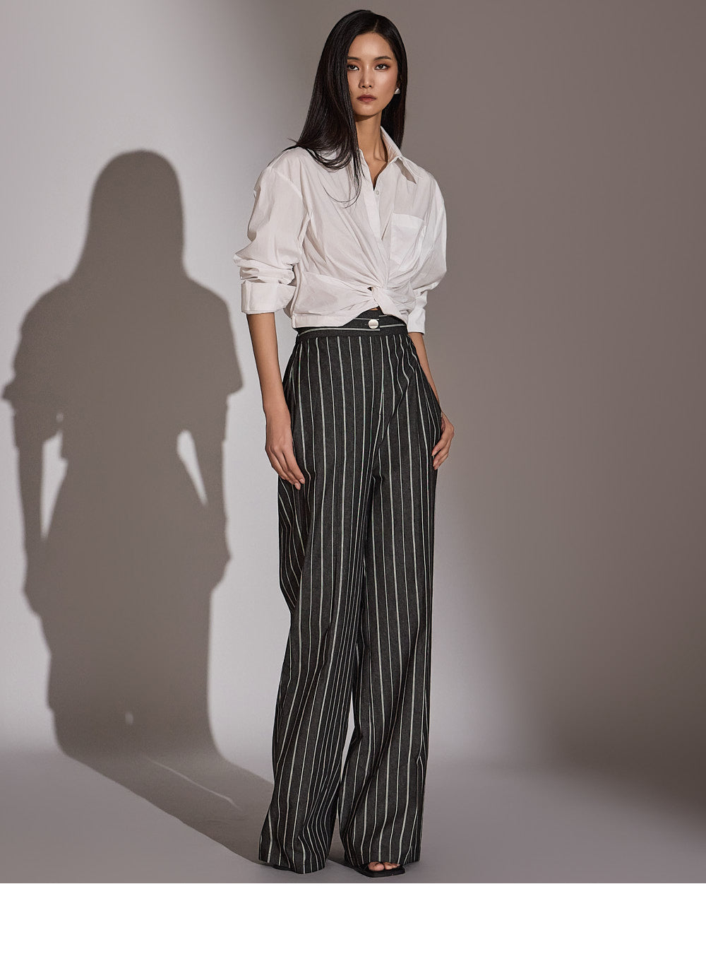 このシャツは、トレンド感のあるクロップド丈にスタイリングされています。