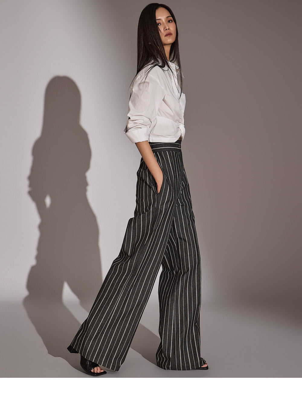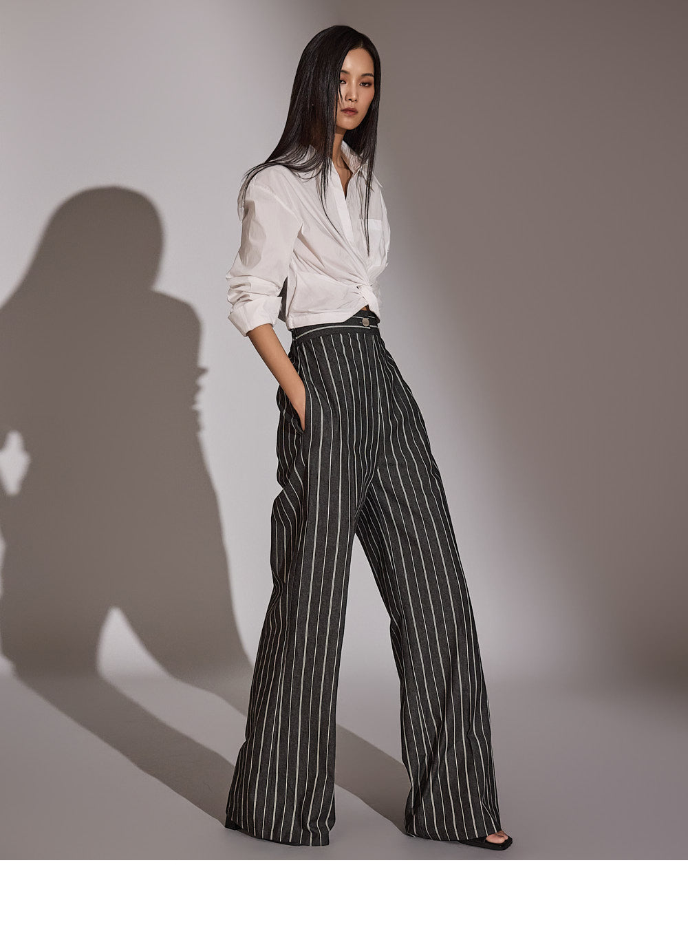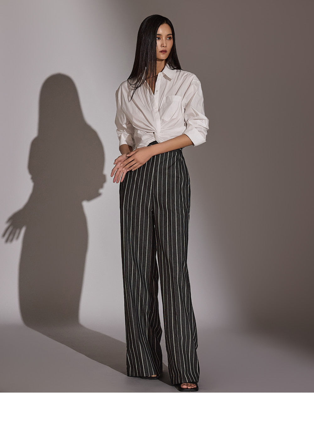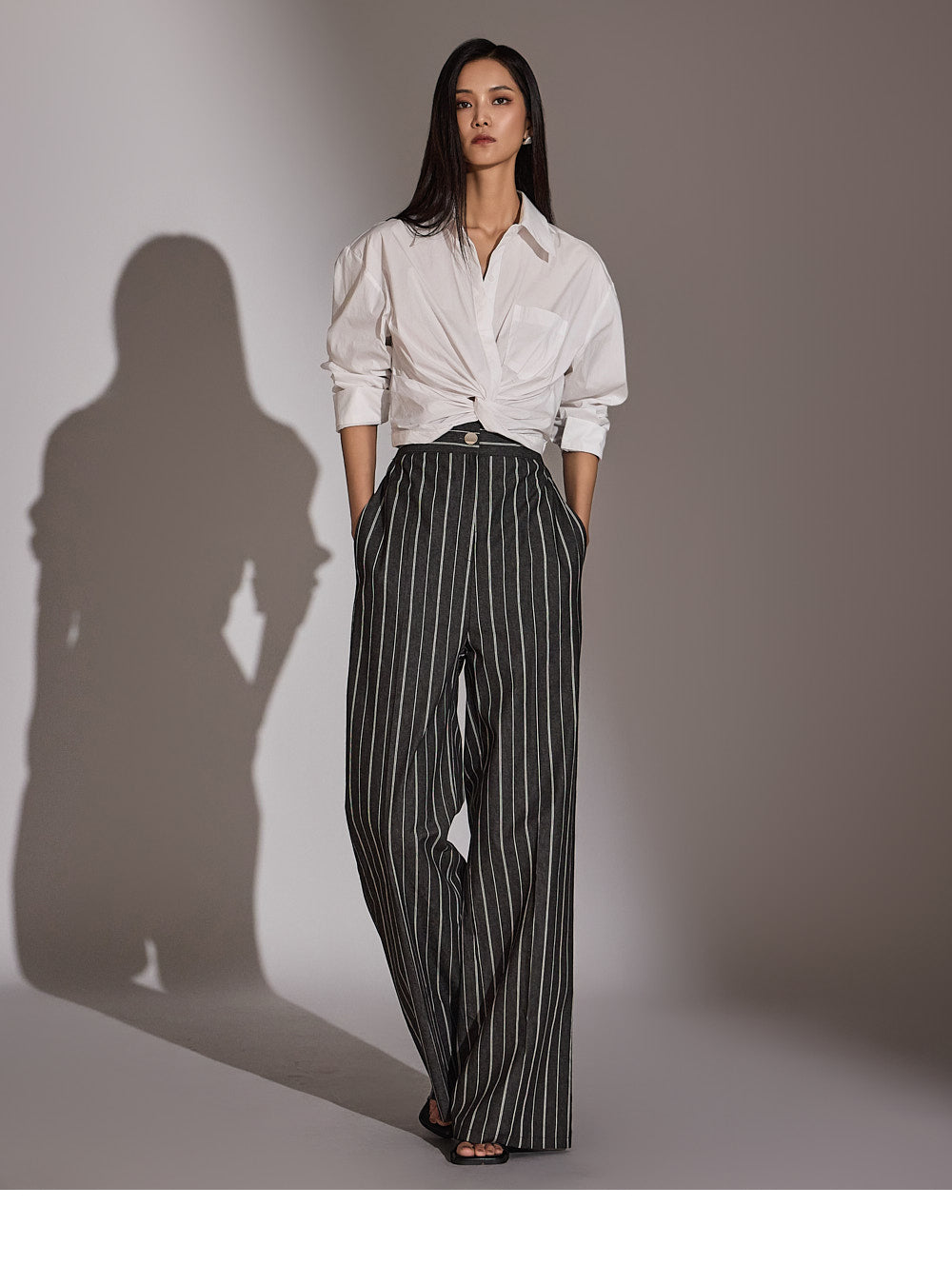 このシャツは、トレンド感のあるクロップド丈にスタイリングされています。
