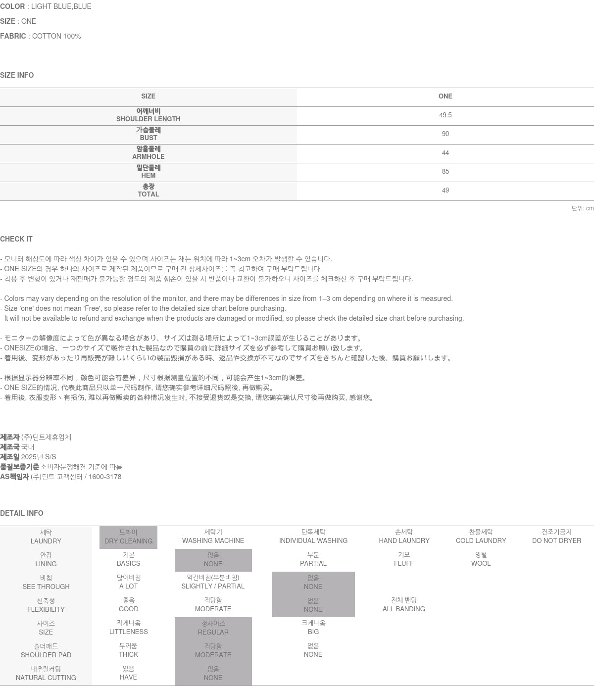 モデルの身長は171cm、ブルーのワンサイズを着用しています。