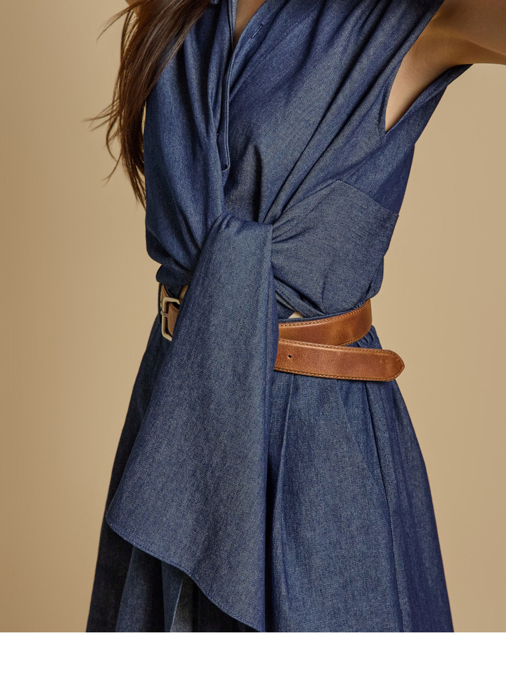 フロントのシャーリングタイディテールと襟のネックラインがスタイリッシュなタッチをプラスします。