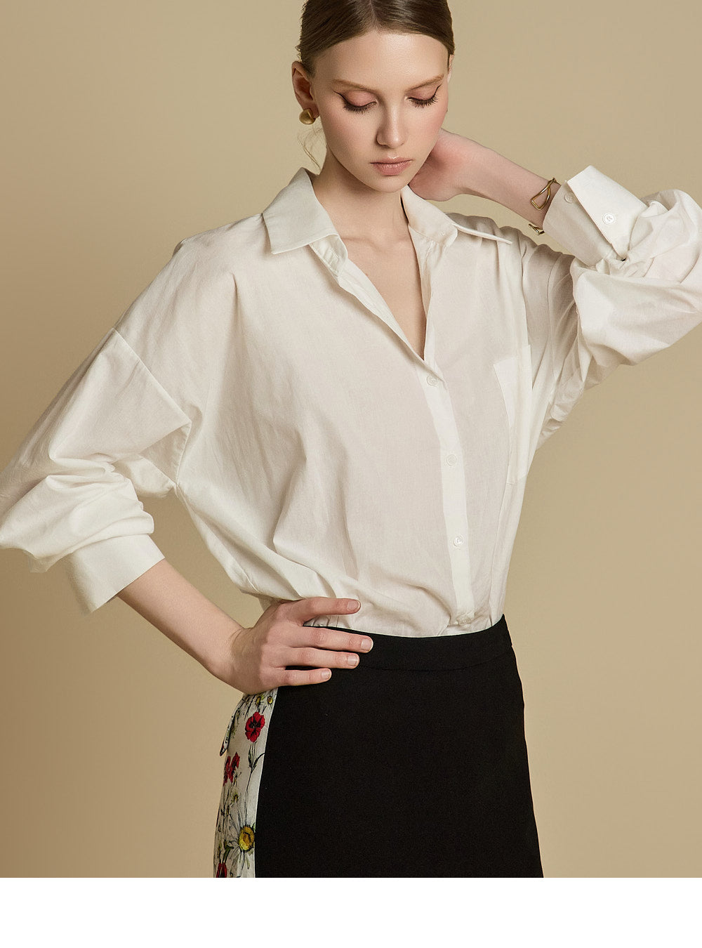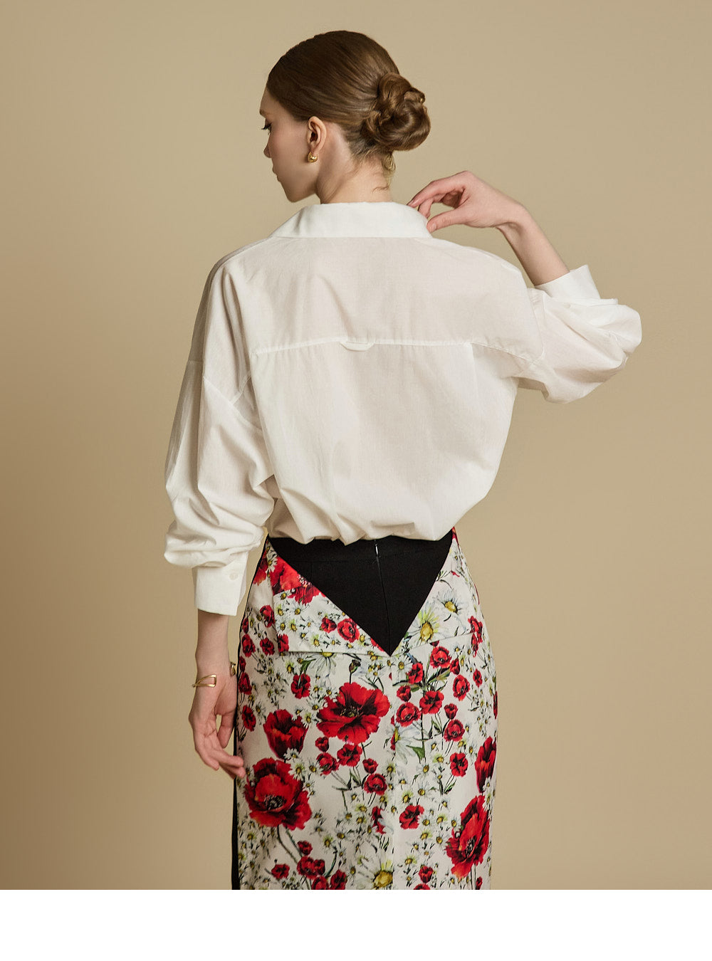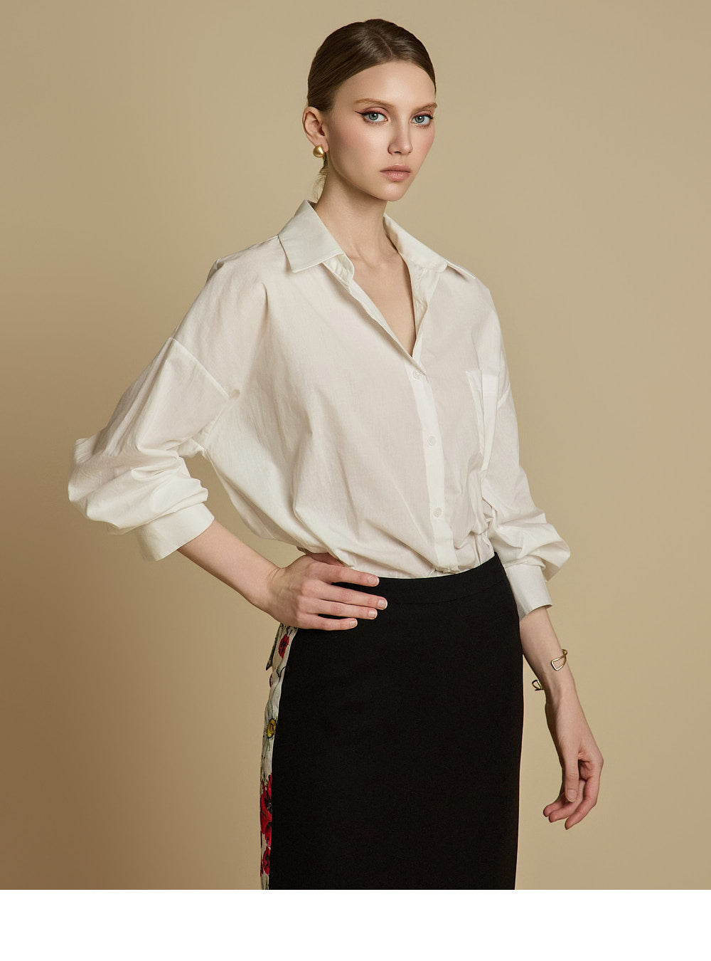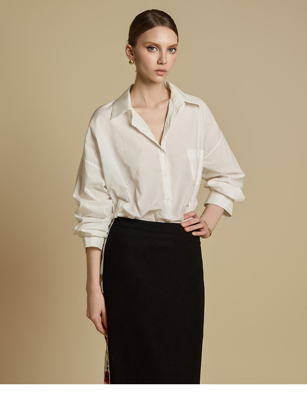 自然にドレープするゆったりとしたオーバーサイズのシルエットが特徴で、