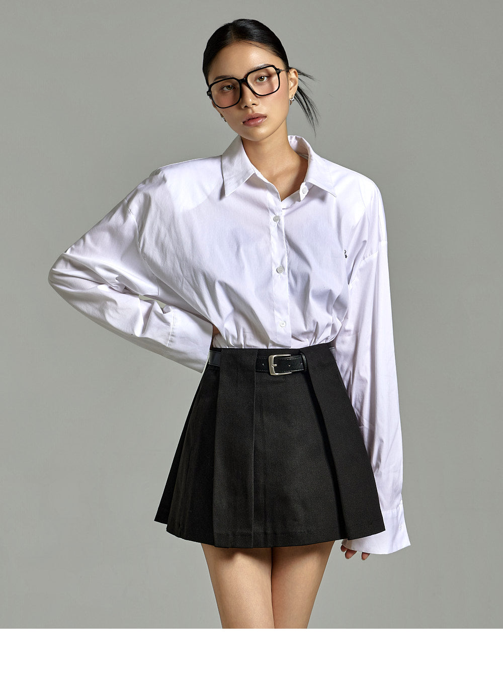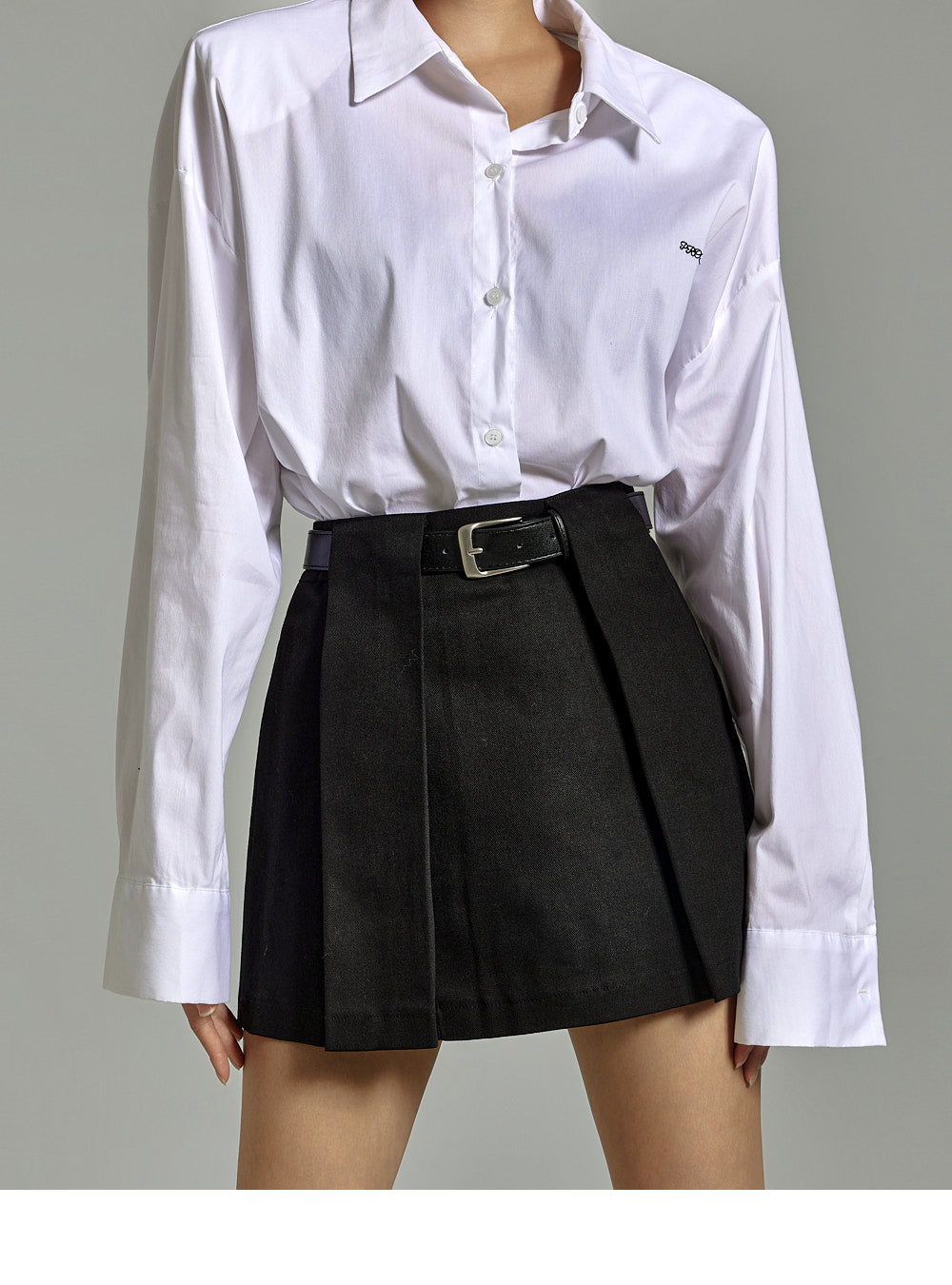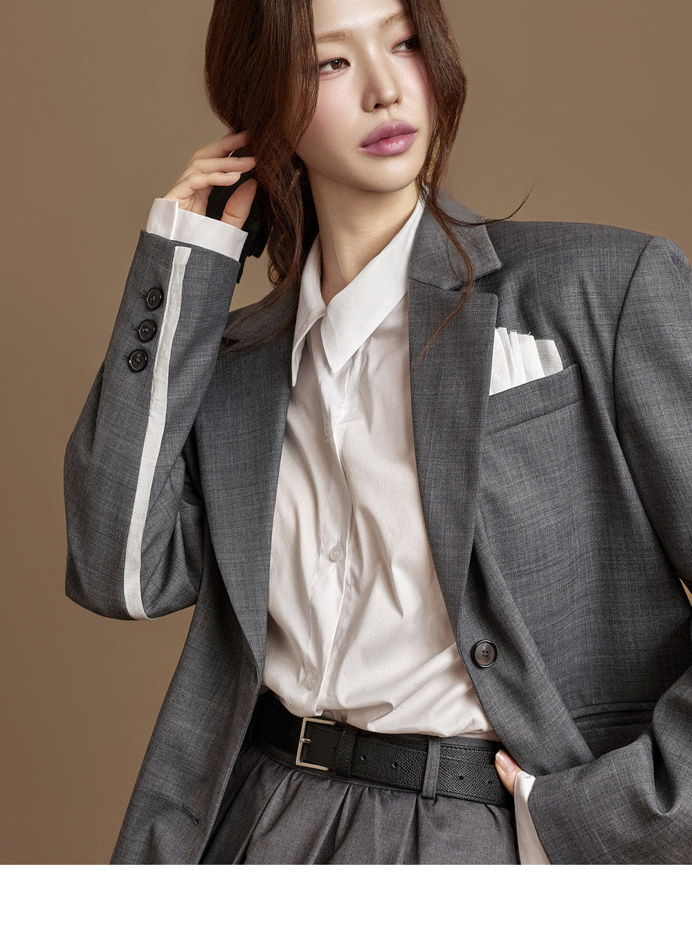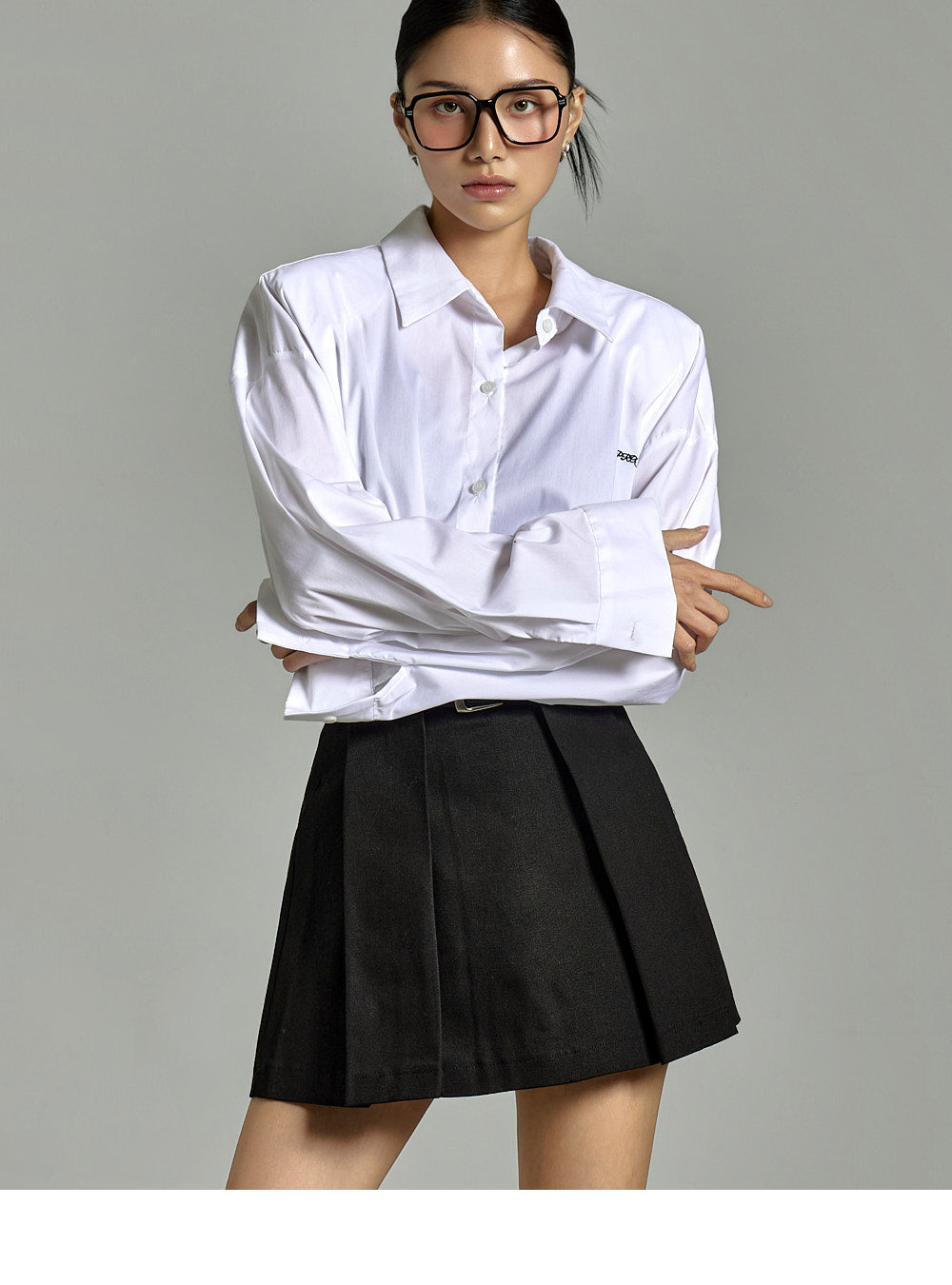 The buttoned sleeves and front button fastening