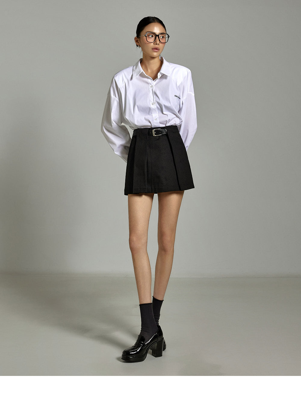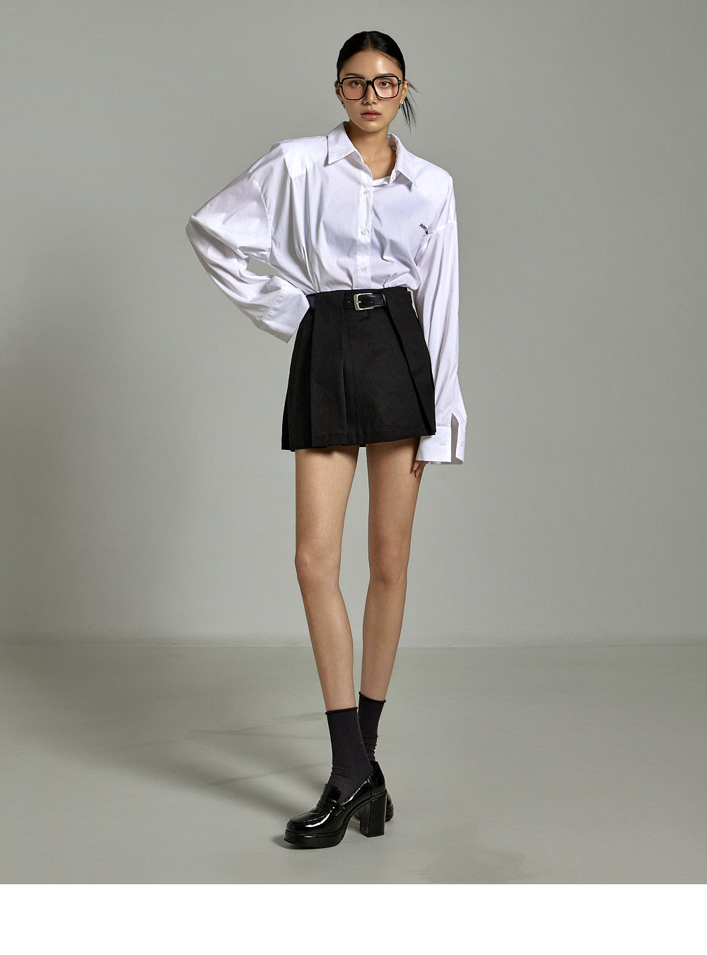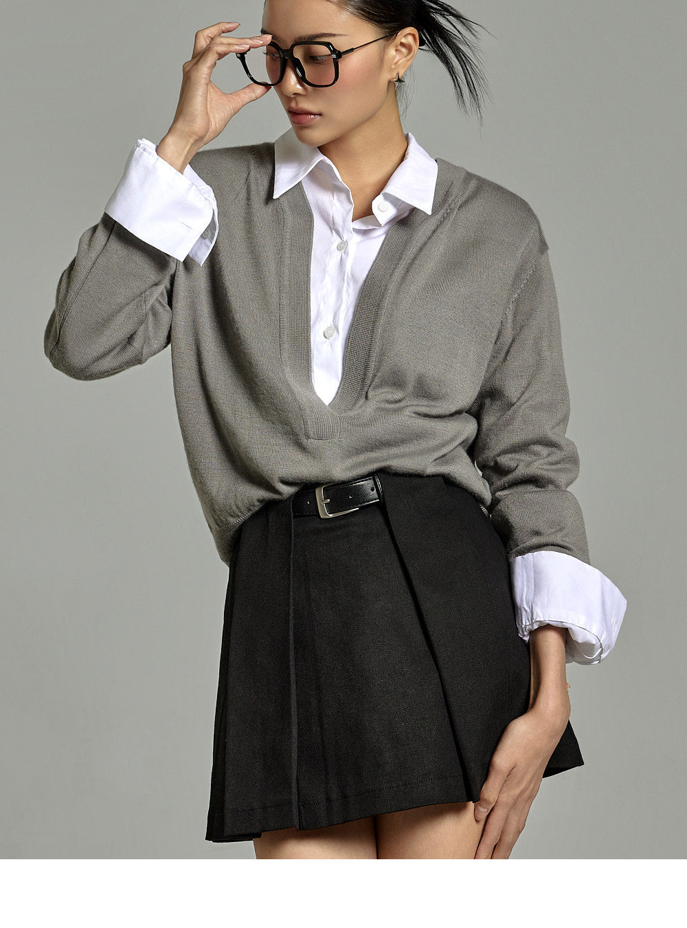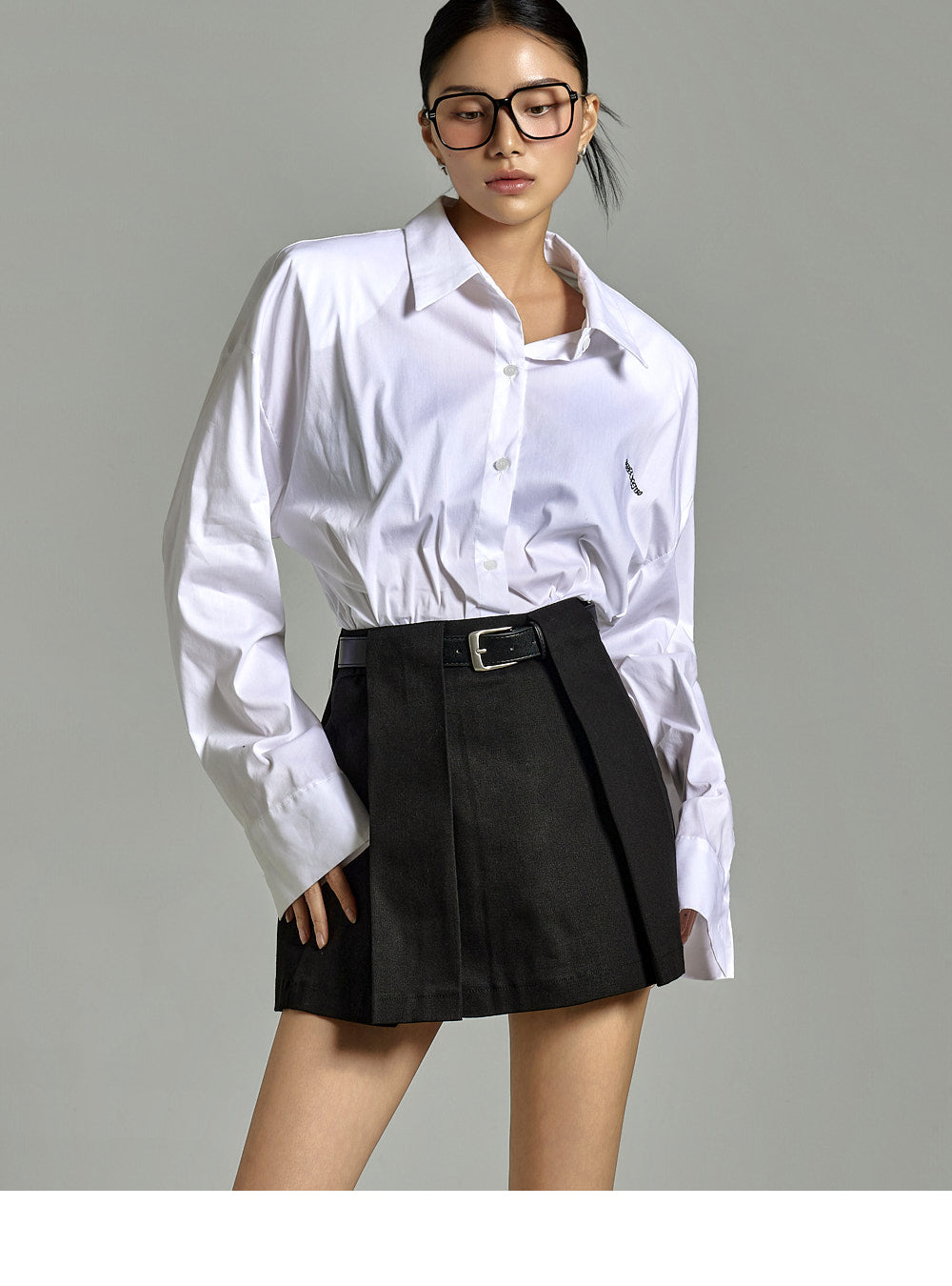 The buttoned sleeves and front button fastening