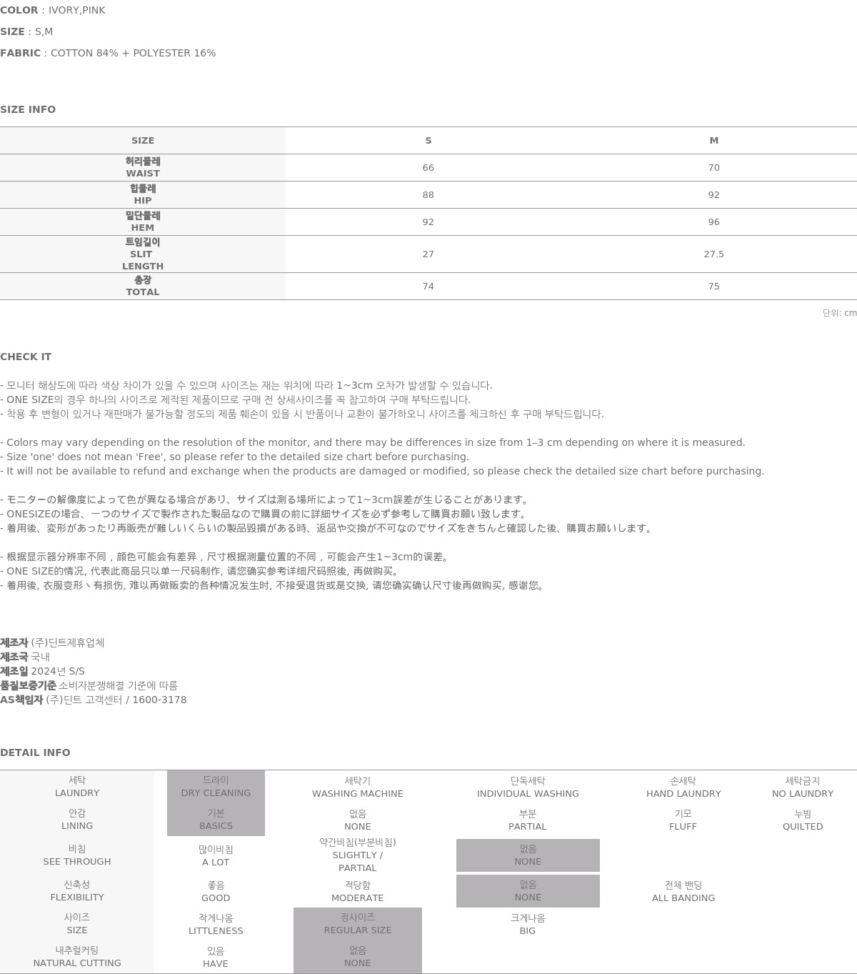 モデルは身長174CMで、ピンク色のサイズSを着用しています。