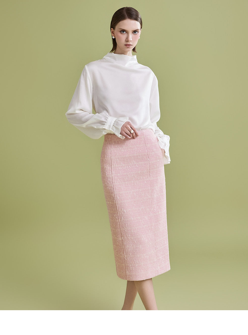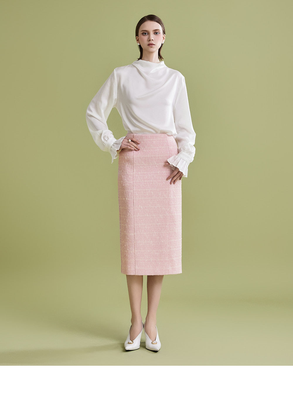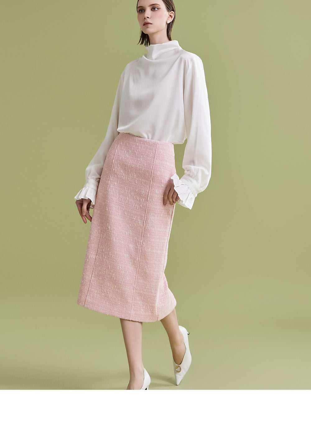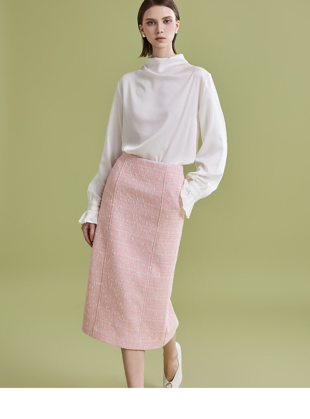 様々なトップスとの相性が良く、ツイード生地でフェミニンなムードを漂わせます。