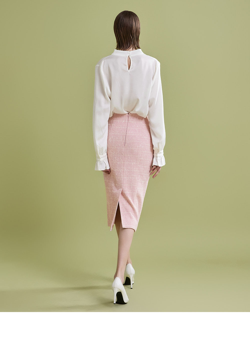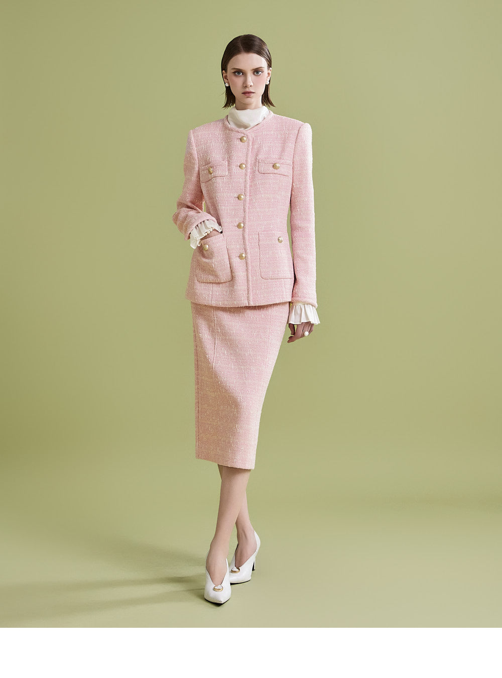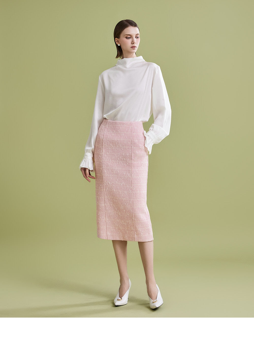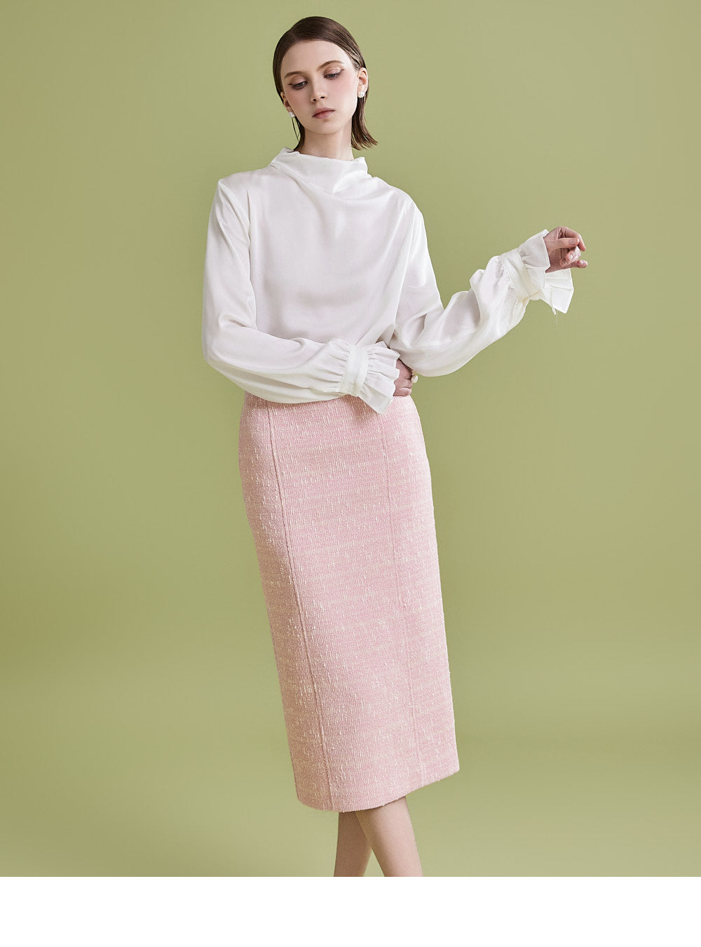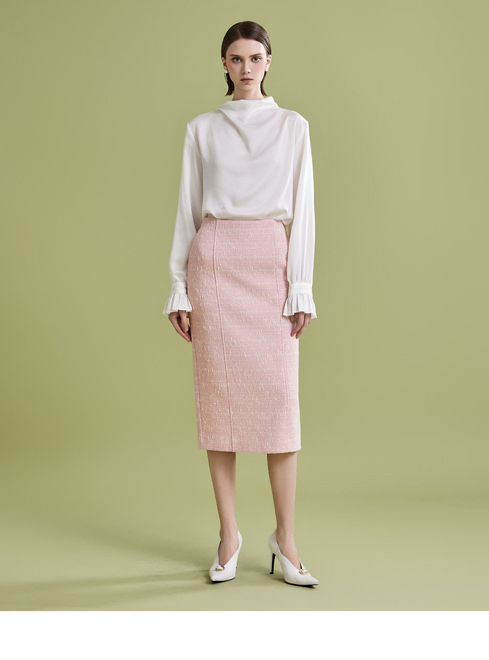 様々なトップスとの相性が良く、ツイード生地でフェミニンなムードを漂わせます。